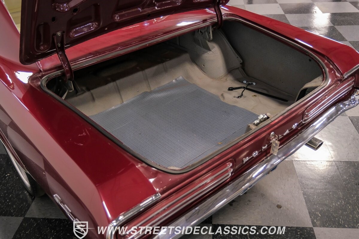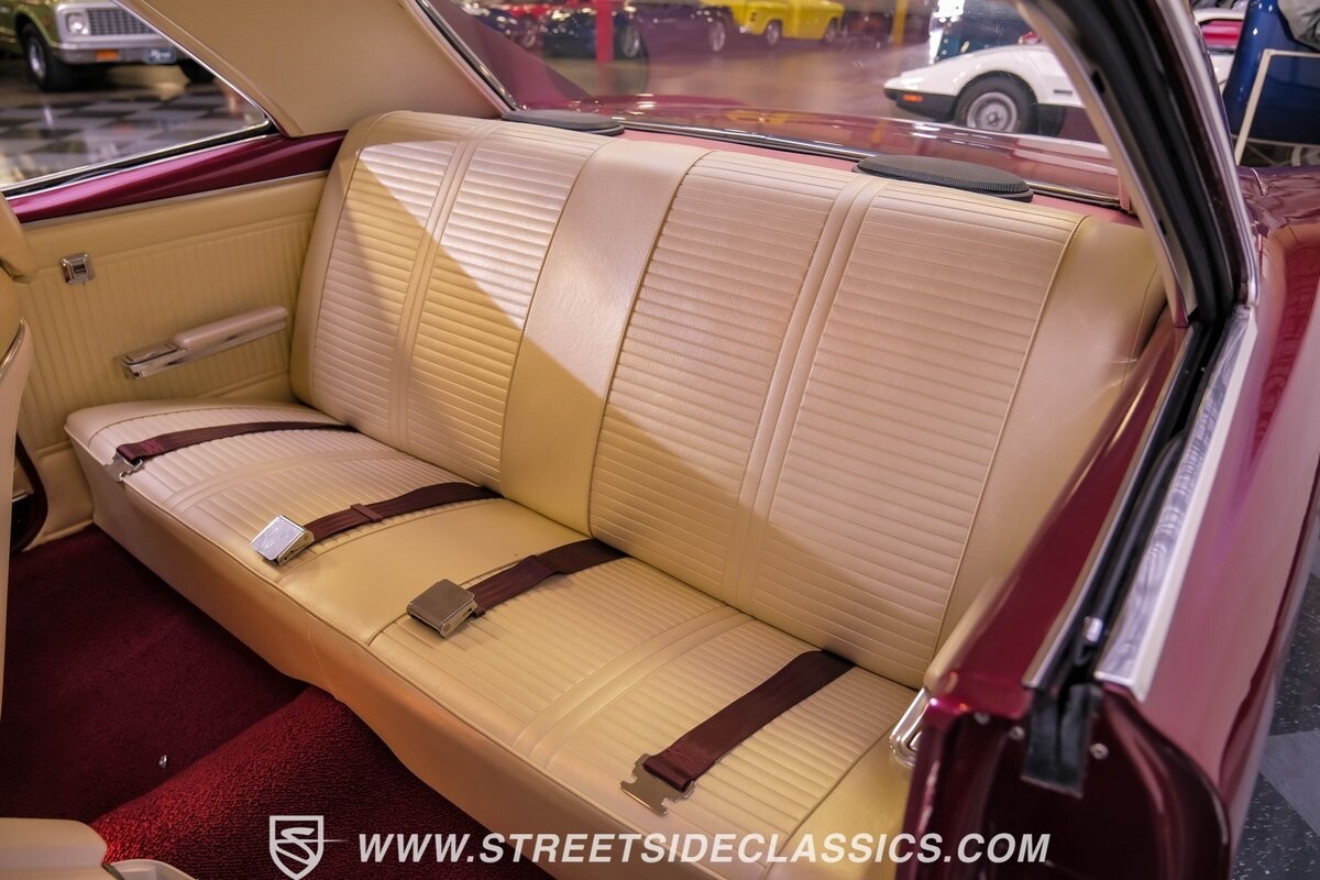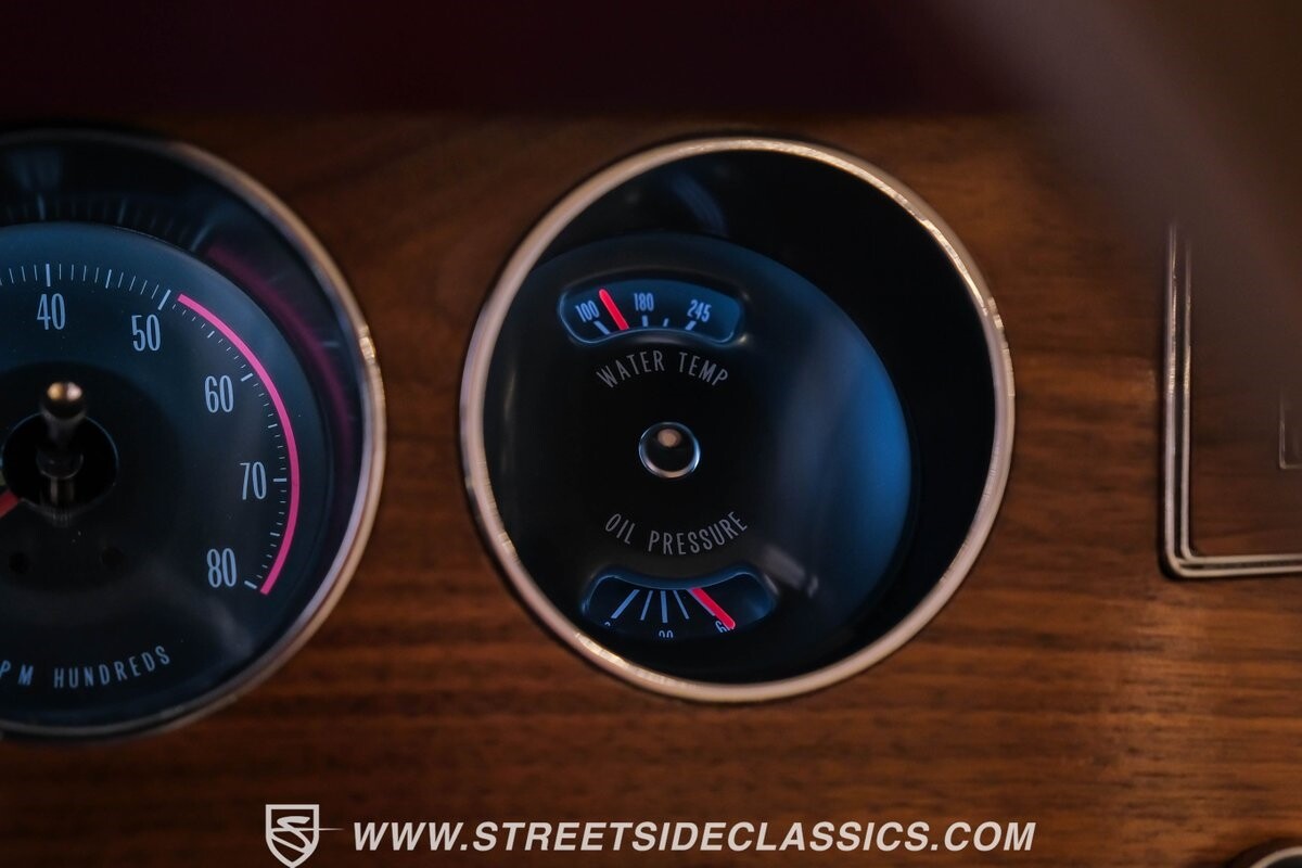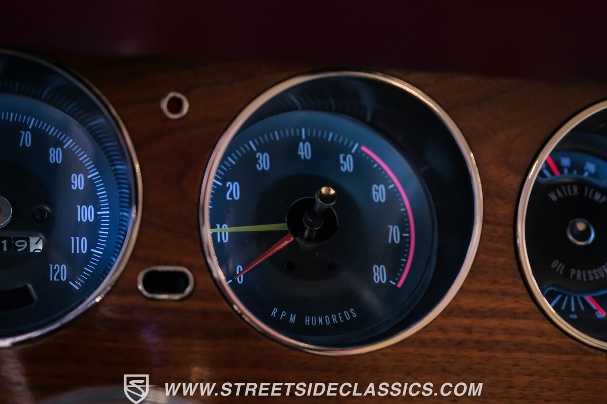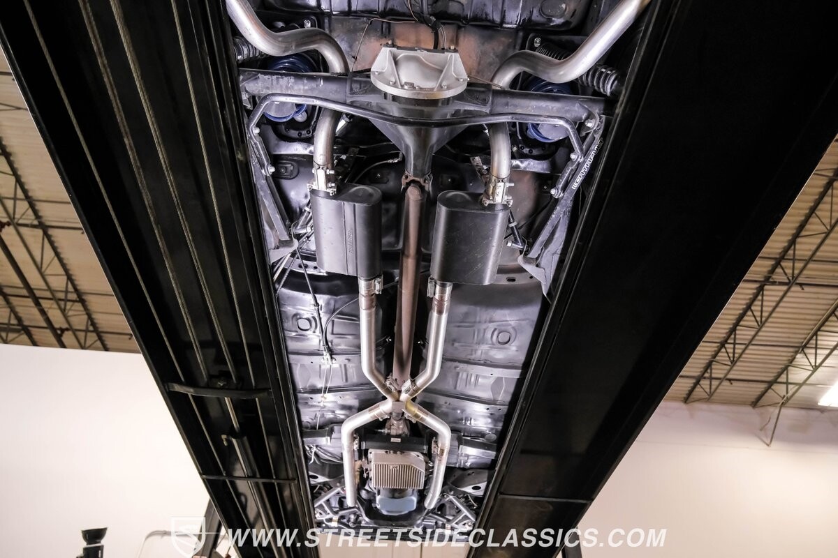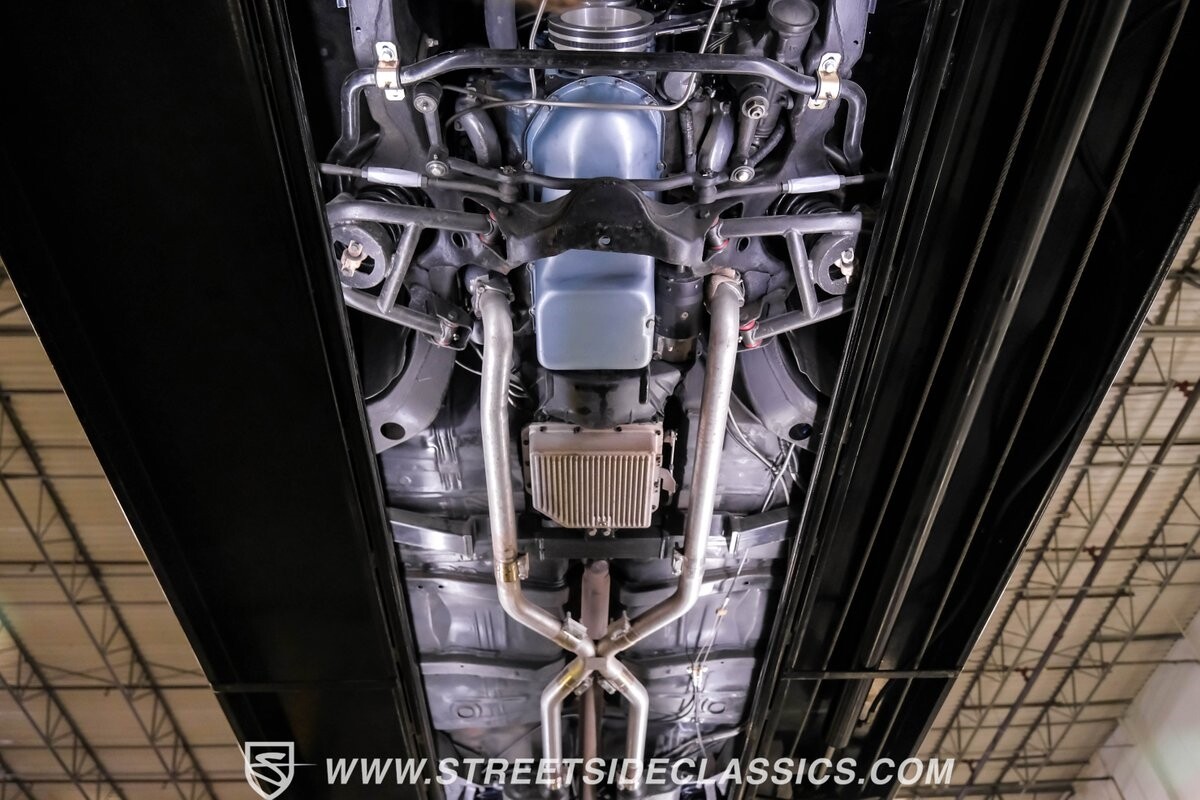 Power and performance are provided by a 428 cubic inch Pontiac engine mated to a TH400 automatic transmission. The clean engine bay features factory-style chrome valve covers, Edelbrock chrome open element air cleaner, a new battery, upgraded aluminum pully system, chrome alternator with custom brackets, power steering and a large Cold Case aluminum radiator with dual electric fans. Exhaust flows through factory-style cast-iron exhaust manifolds, X-pipe and dual Flowmaster mufflers.
