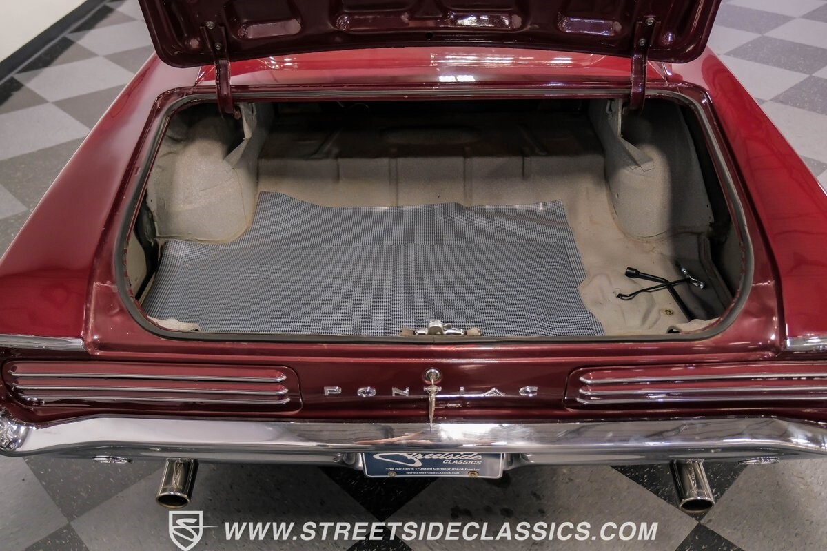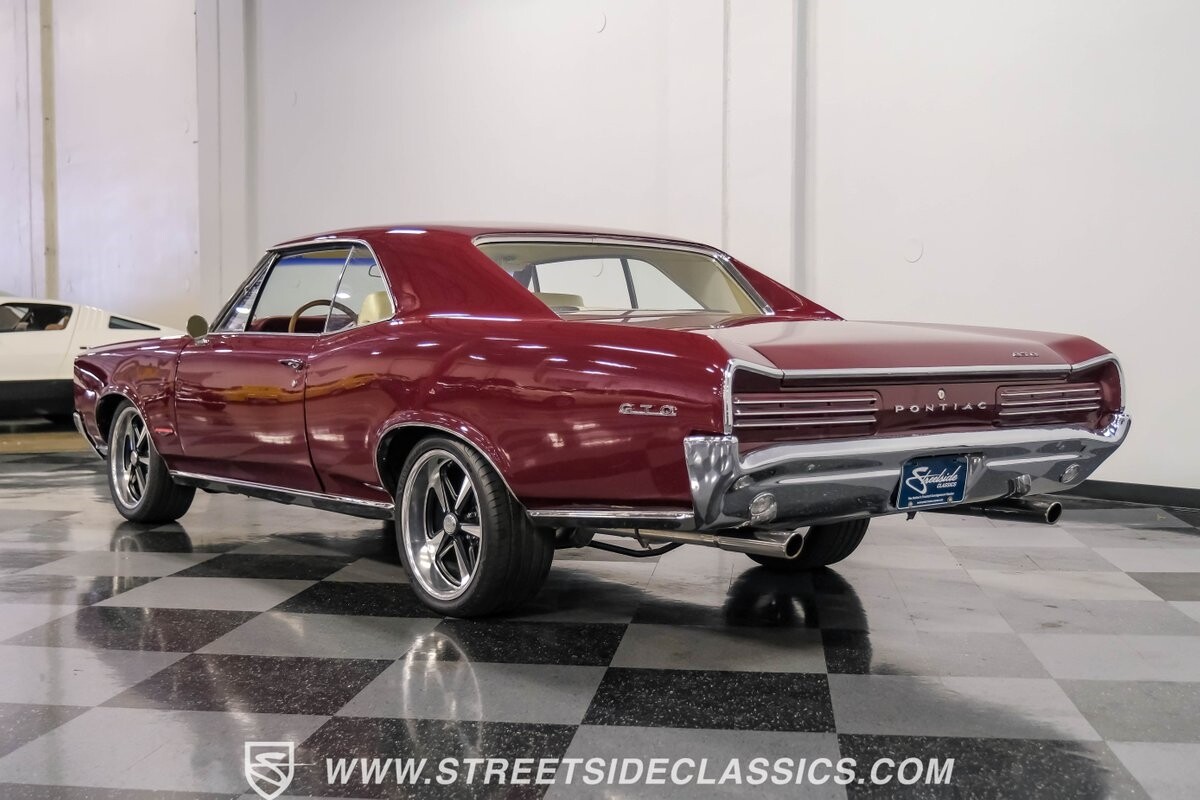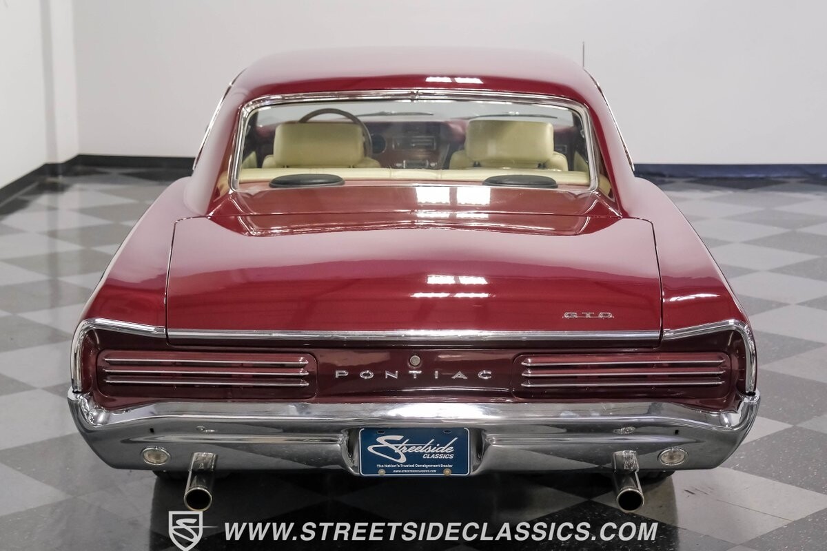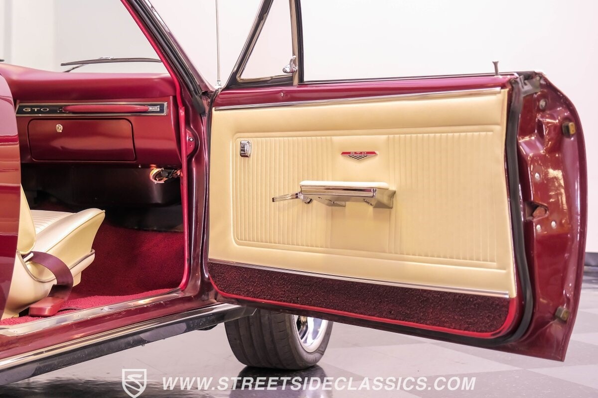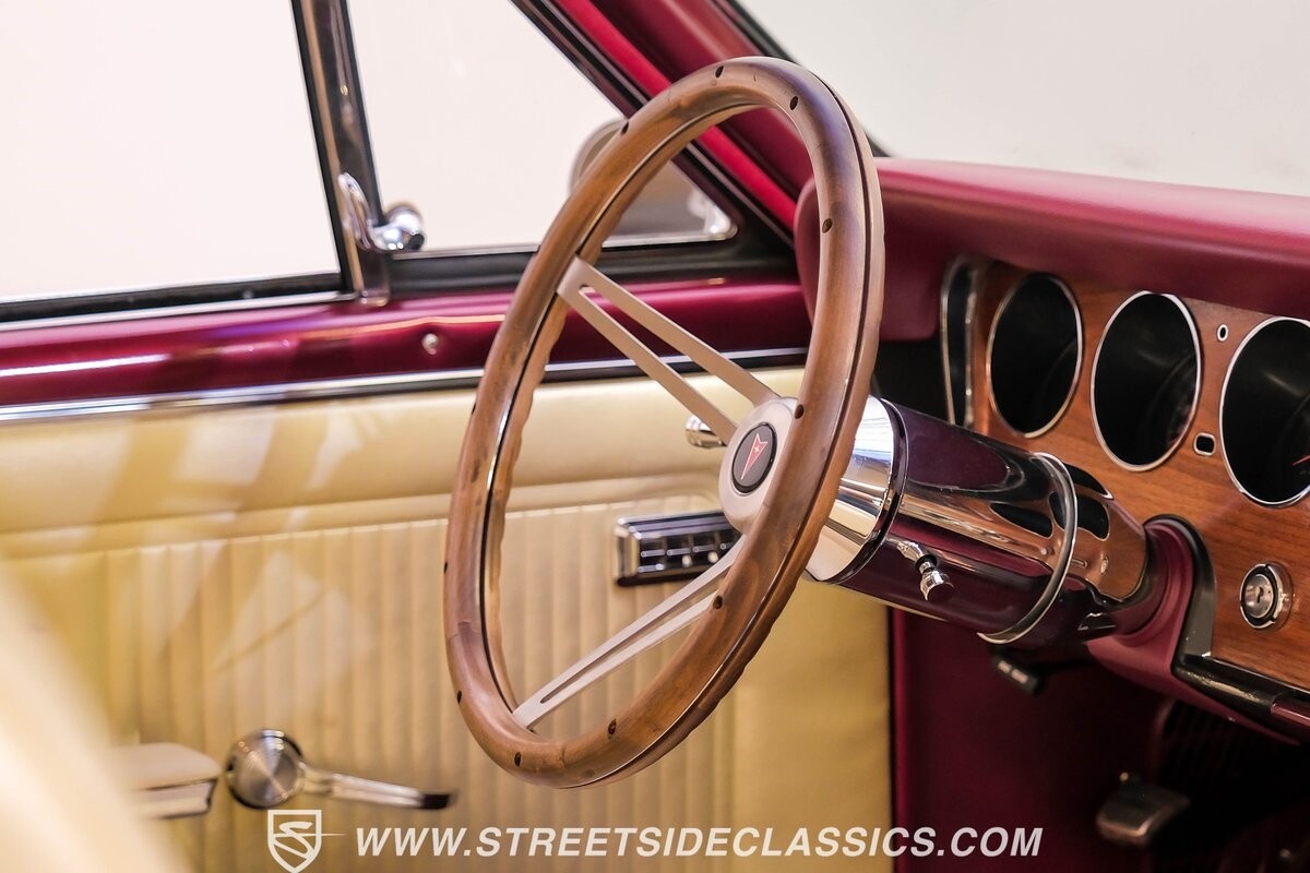 The Pontiac GTO was the original muscle car. Introduced in 1964, the GTO was restyled for 1966, which featured a sleek and aggressive body that showcased Pontiac's "Coke Bottle" styling that looks as exciting now as when it was new. This exceptional 1966 Pontiac GTO is finished strikingly in is original color, Burgundy (code N - as indicated on its trim tag). The rich Burgundy color highlights this GTO's dramatic styling that features louvered taillights, Pontiac's famous split grill and iconic hood scoop. The muscle car look is enhanced by a set of 18-inch US Mags that cleverly resemble the original Pontiac Rally ll wheels wrapped with Goodyear Eagle FI performance tires staggered 245/45R18 front and 265/35R18 rear that fill in the fender wells and create just the right stance for this classic GTO.