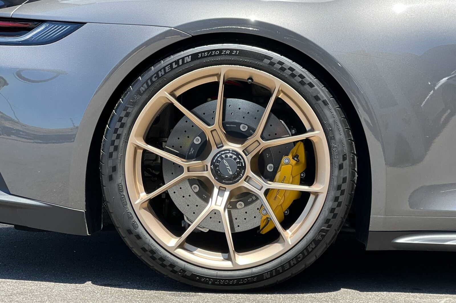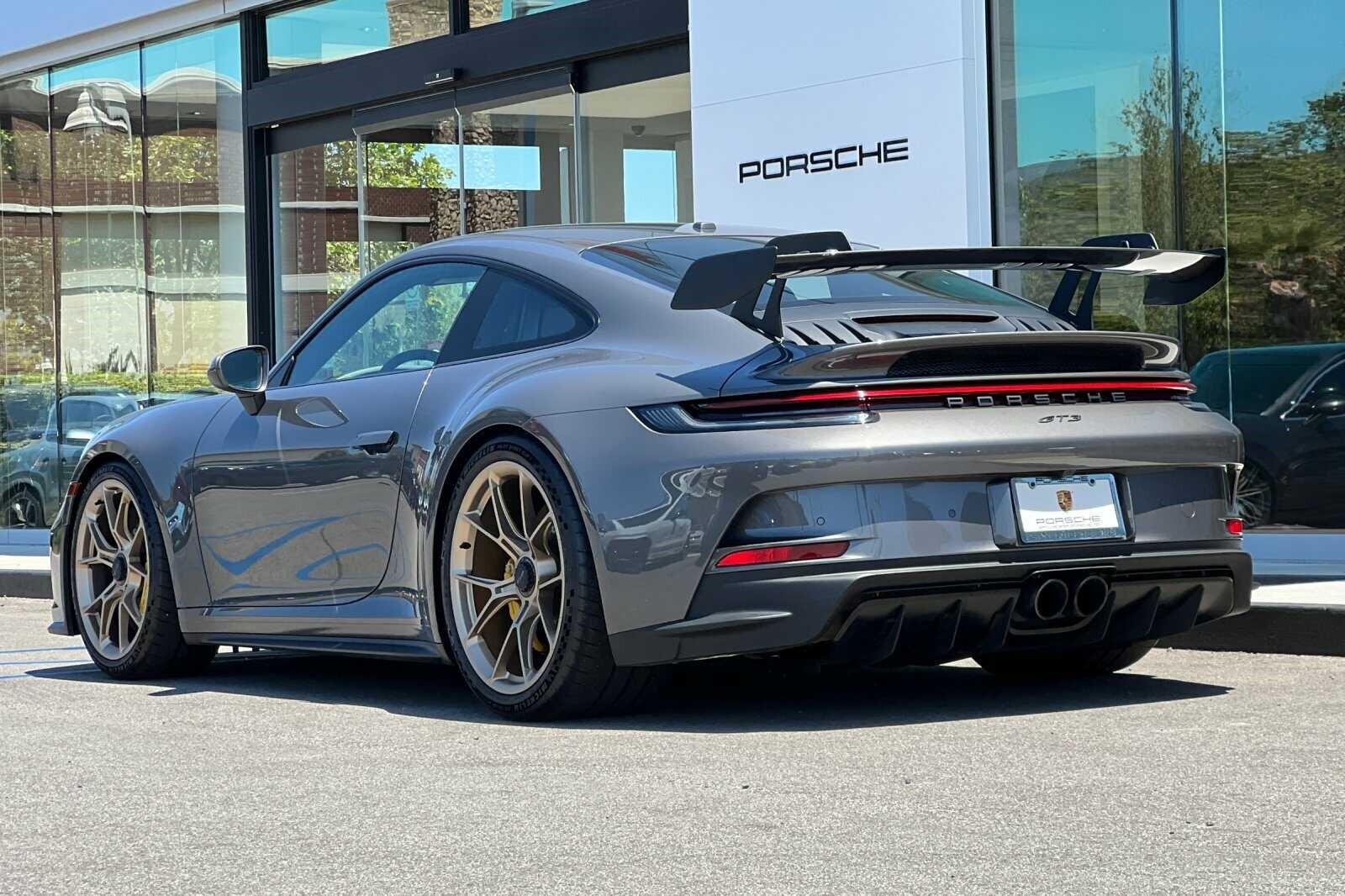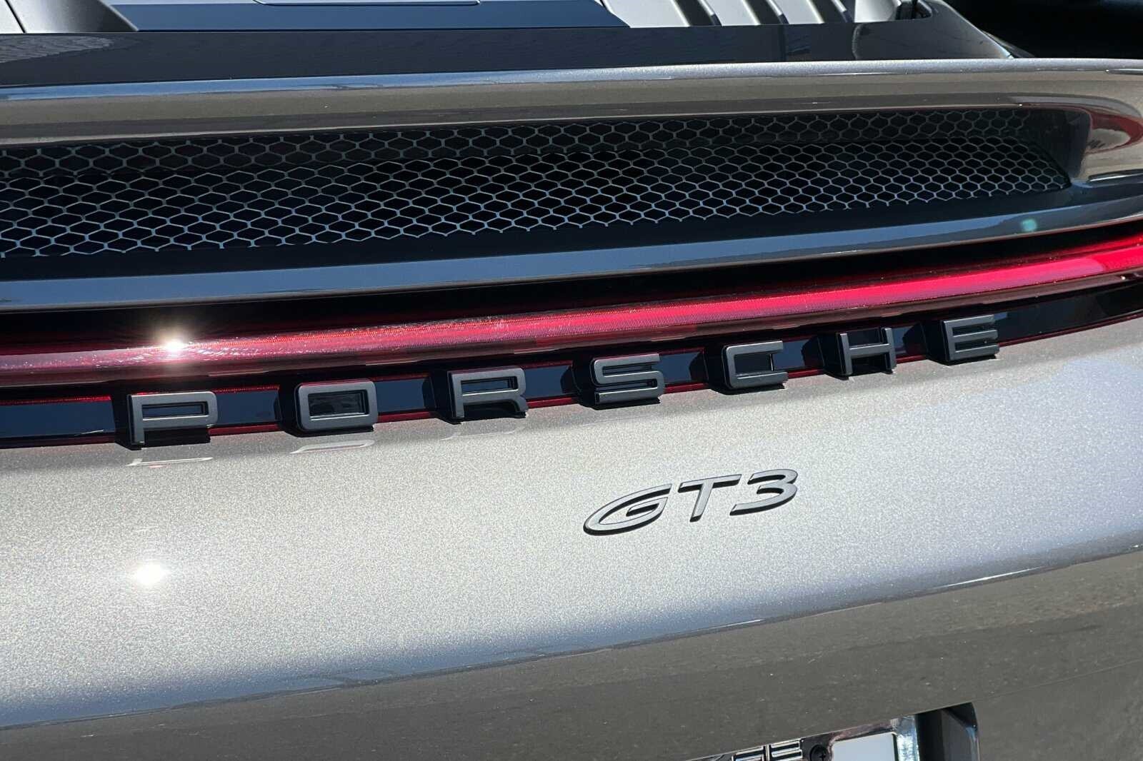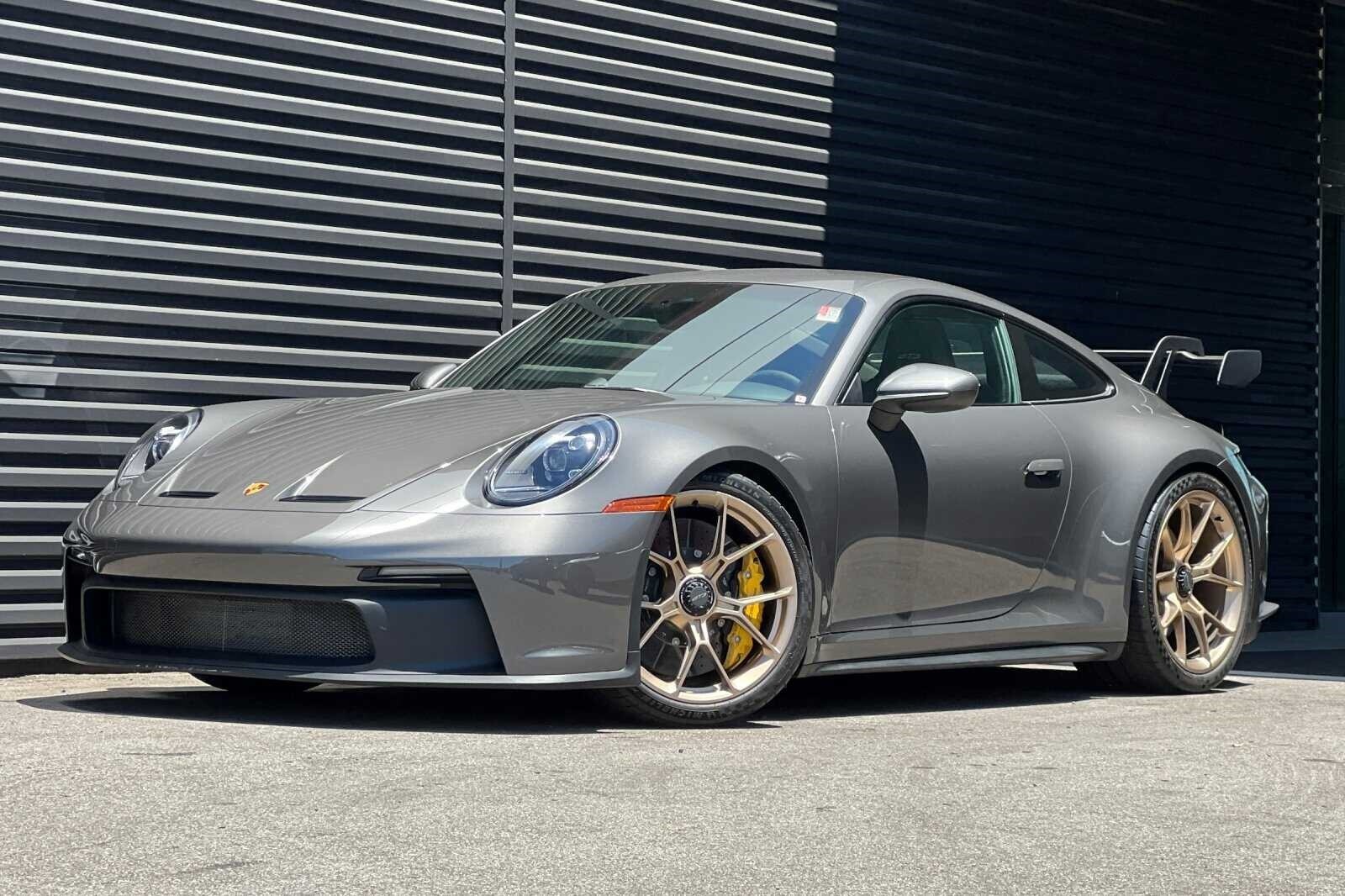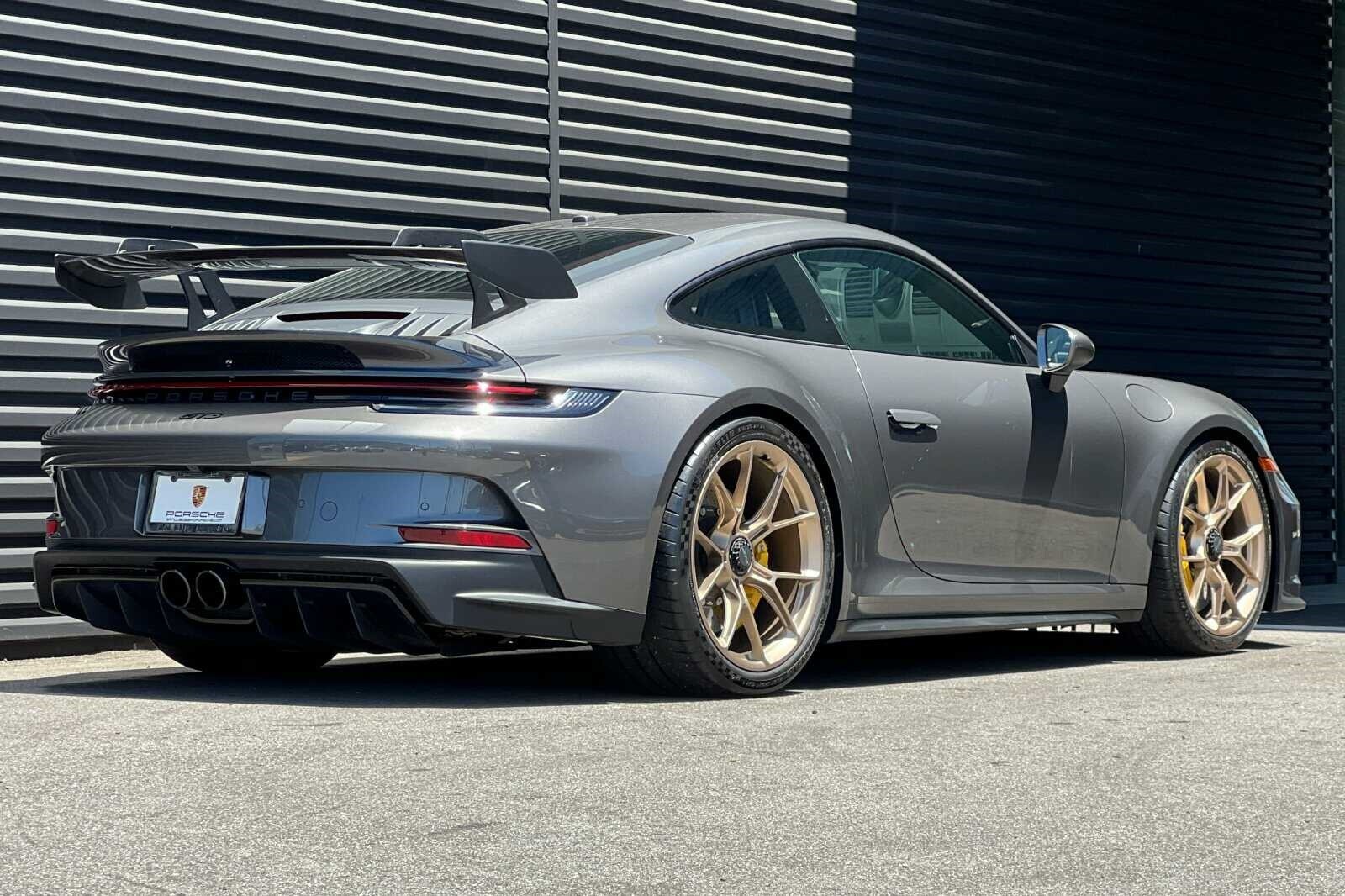 This Porsche San Luis Obispo 2022 Agate Grey Metallic Porsche 911 GT3 RWD is well equipped and includes these features and benefits: Chrono Package w/Preparation for Lap Trigger, Porsche Approved Certified Pre-Owned Certified, BOSE Surround Sound System, Front Axle Lift System, Porsche Ceramic Composite Brakes (PCCB) in Yellow, 4-Way Sport Seats Plus, 4-Wheel Disc Brakes, 8 Speakers, ABS brakes, Adaptive suspension, Air Conditioning, Alloy wheels, Automatic temperature control, Brake assist, Bumpers: body-color, Delay-off headlights, Driver door bin, Driver vanity mirror, Dual front impact airbags, Dual front side impact airbags, Electronic Stability Control, Exterior Parking Camera Rear, Four wheel independent suspension, Front anti-roll bar, Front Bucket Seats, Front Center Armrest, Front dual zone A/C, Front reading lights, Fully automatic headlights, Garage door transmitter: HomeLink, Heated door mirrors, Heated front seats, Illuminated entry, Low tire pressure warning, Navigation system: Porsche Communication Management (PCM), Occupant sensing airbag, Outside temperature display, Overhead airbag, Overhead console, Passenger door bin, Passenger vanity mirror, Porsche Communication Management, Power door mirrors, Power driver seat, Power passenger seat, Power steering, Power windows, Radio data system, Rear anti-roll bar, Rear fog lights, Rear window defroster, Remote keyless entry, Security system, Speed control, Speed-sensing steering, Spoiler, Sport steering wheel, Steering wheel mounted audio controls, Tachometer, Telescoping steering wheel, Tilt steering wheel, Traction control, Trip computer, Variably intermittent wipers, and Wheels: 20 Front/21 Rear 911 GT3. BOSE Surround Sound System, Chrono Package w/Preparation for Lap Trigger, Front Axle Lift System, Porsche Ceramic Composite Brakes (PCCB) in Yellow.