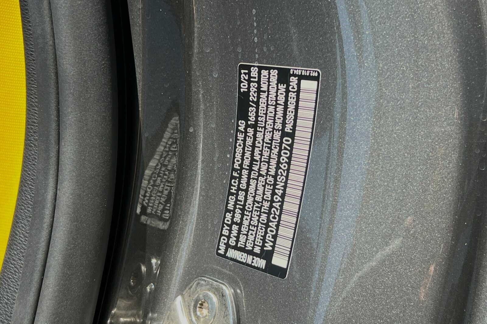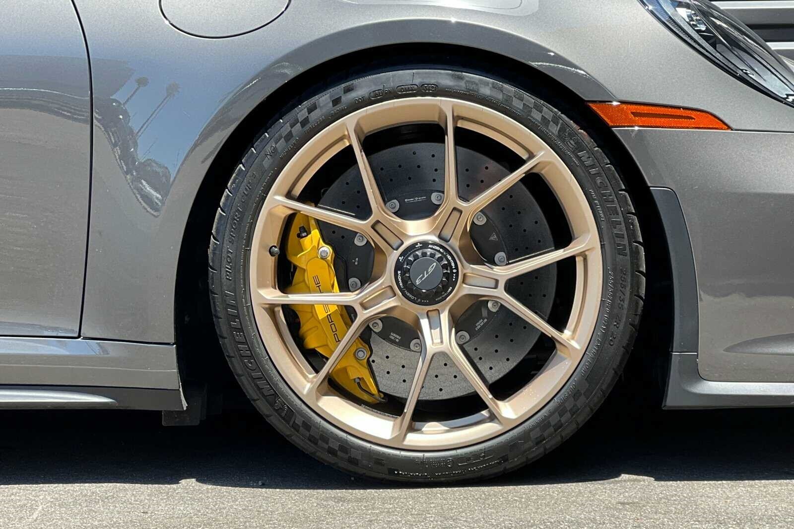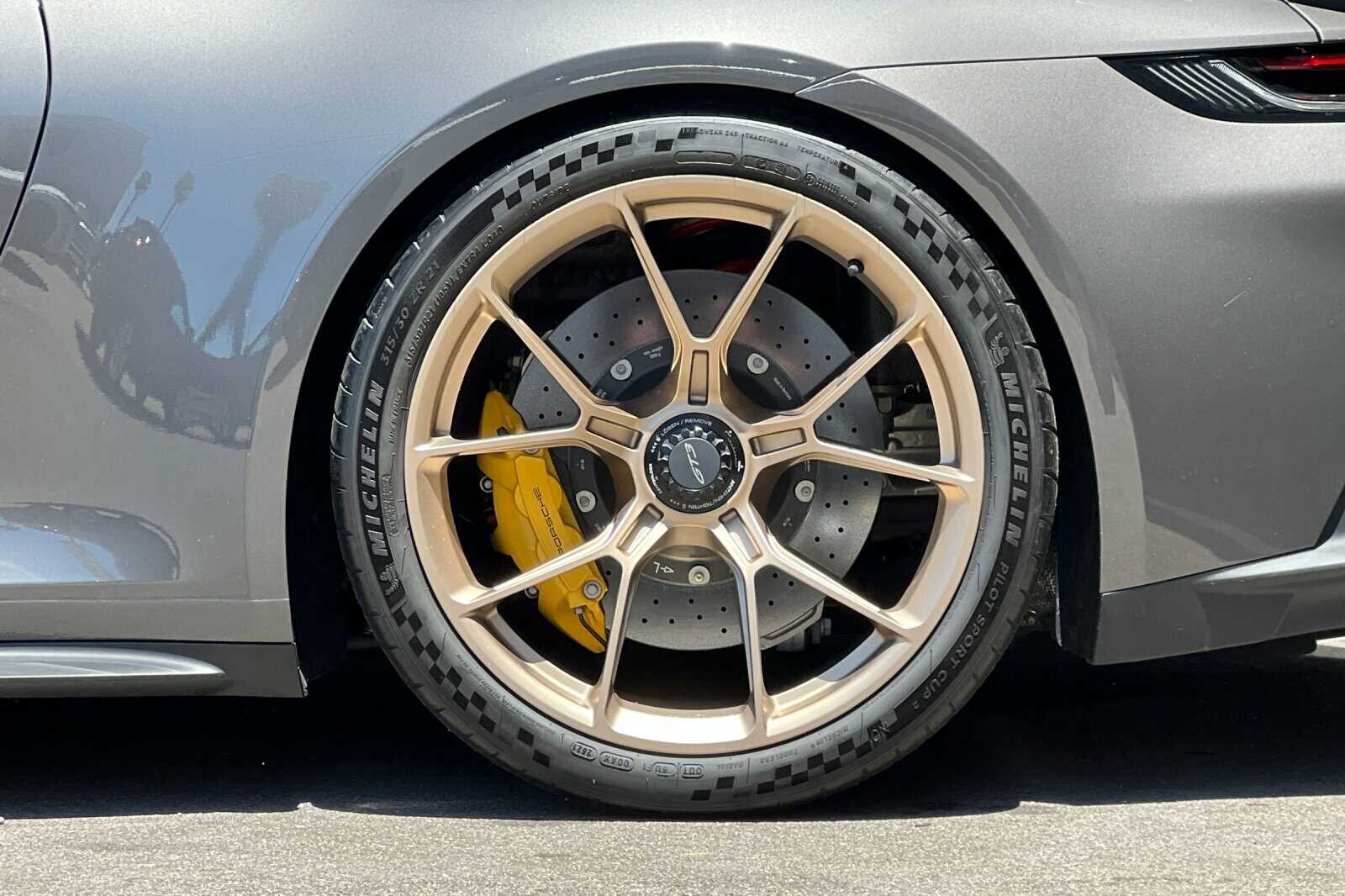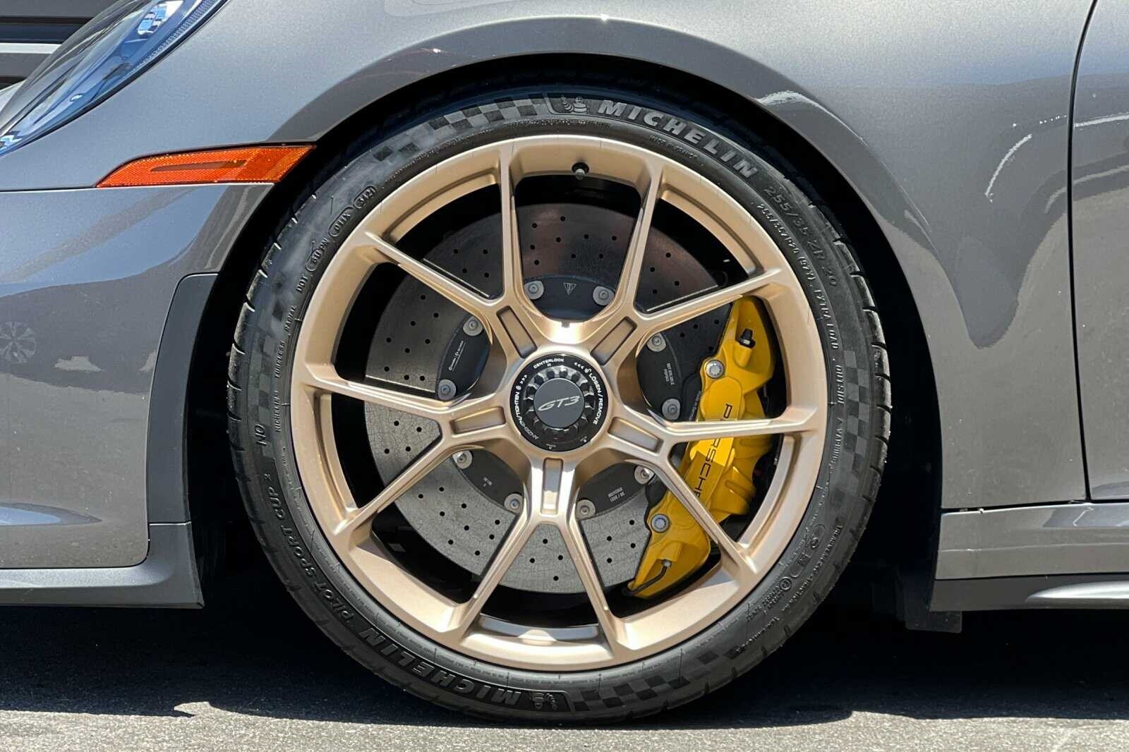 This Porsche San Luis Obispo 2022 Agate Grey Metallic Porsche 911 GT3 RWD is well equipped and includes these features and benefits: Chrono Package w/Preparation for Lap Trigger, Porsche Approved Certified Pre-Owned Certified, BOSE Surround Sound System, Front Axle Lift System, Porsche Ceramic Composite Brakes (PCCB) in Yellow, 4-Way Sport Seats Plus, 4-Wheel Disc Brakes, 8 Speakers, ABS brakes, Adaptive suspension, Air Conditioning, Alloy wheels, Automatic temperature control, Brake assist, Bumpers: body-color, Delay-off headlights, Driver door bin, Driver vanity mirror, Dual front impact airbags, Dual front side impact airbags, Electronic Stability Control, Exterior Parking Camera Rear, Four wheel independent suspension, Front anti-roll bar, Front Bucket Seats, Front Center Armrest, Front dual zone A/C, Front reading lights, Fully automatic headlights, Garage door transmitter: HomeLink, Heated door mirrors, Heated front seats, Illuminated entry, Low tire pressure warning, Navigation system: Porsche Communication Management (PCM), Occupant sensing airbag, Outside temperature display, Overhead airbag, Overhead console, Passenger door bin, Passenger vanity mirror, Porsche Communication Management, Power door mirrors, Power driver seat, Power passenger seat, Power steering, Power windows, Radio data system, Rear anti-roll bar, Rear fog lights, Rear window defroster, Remote keyless entry, Security system, Speed control, Speed-sensing steering, Spoiler, Sport steering wheel, Steering wheel mounted audio controls, Tachometer, Telescoping steering wheel, Tilt steering wheel, Traction control, Trip computer, Variably intermittent wipers, and Wheels: 20 Front/21 Rear 911 GT3. BOSE Surround Sound System, Chrono Package w/Preparation for Lap Trigger, Front Axle Lift System, Porsche Ceramic Composite Brakes (PCCB) in Yellow.