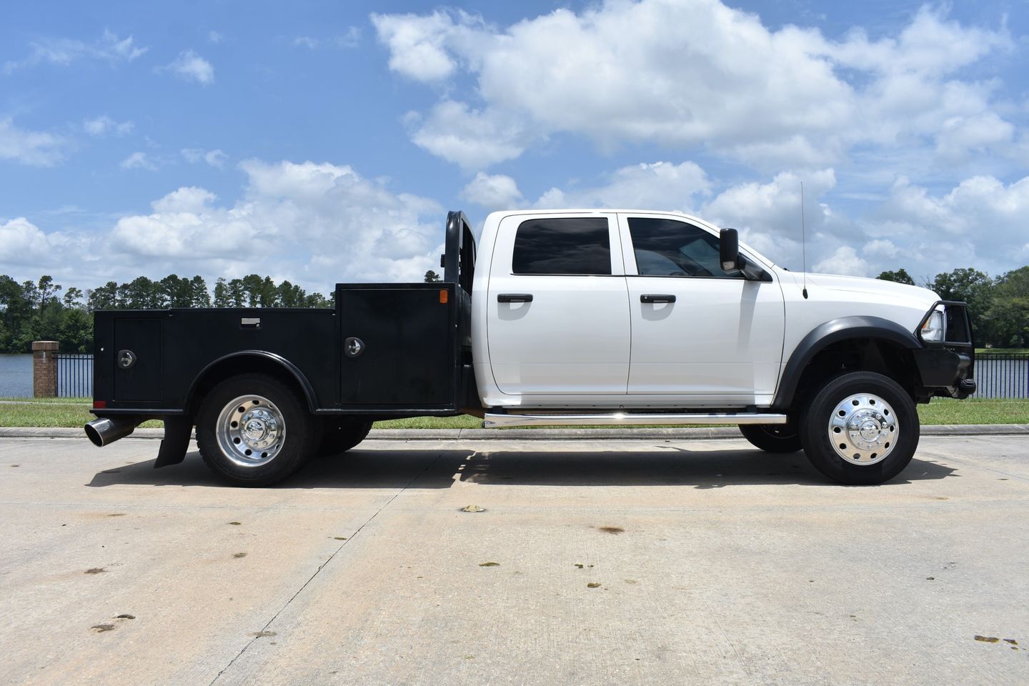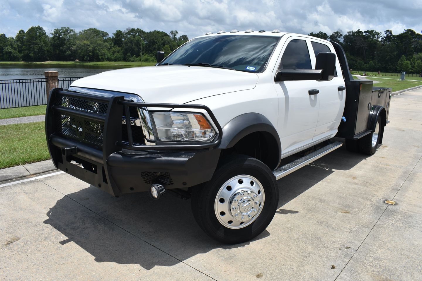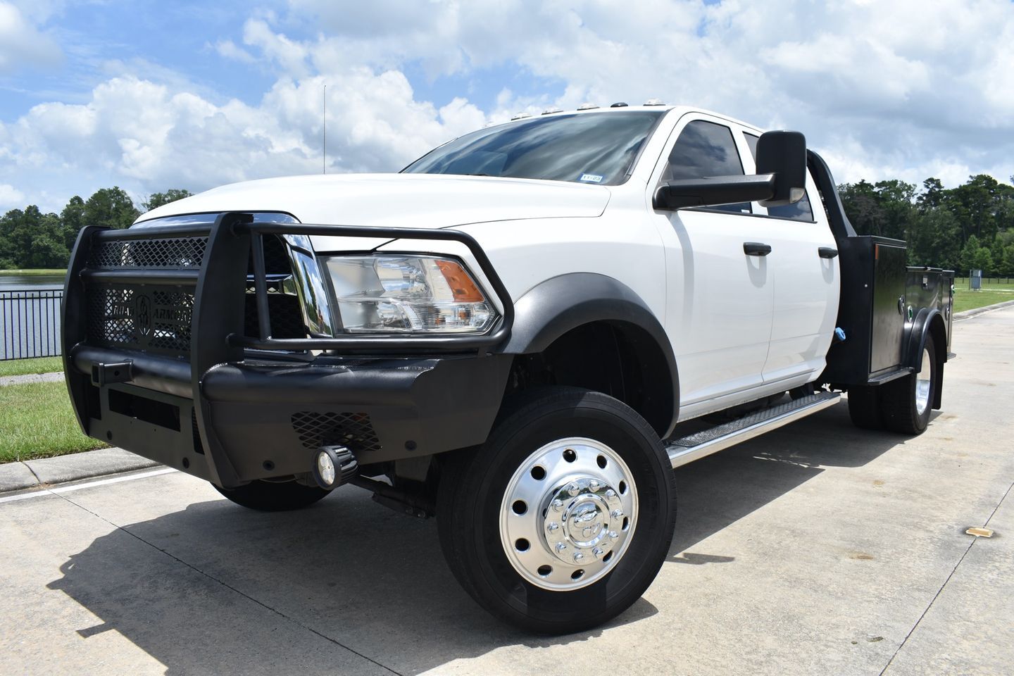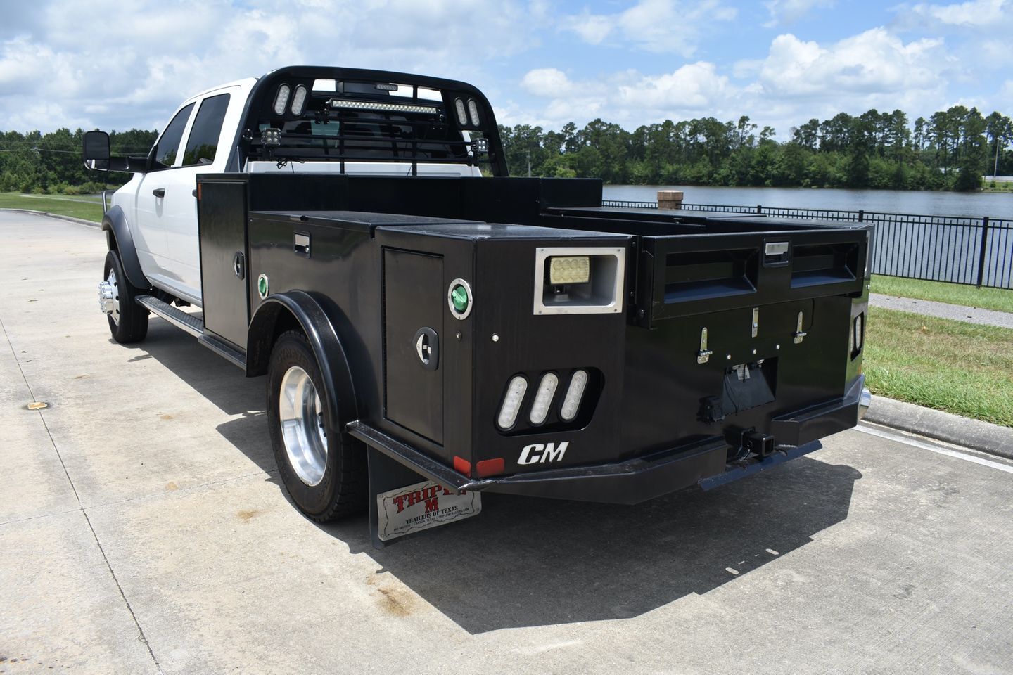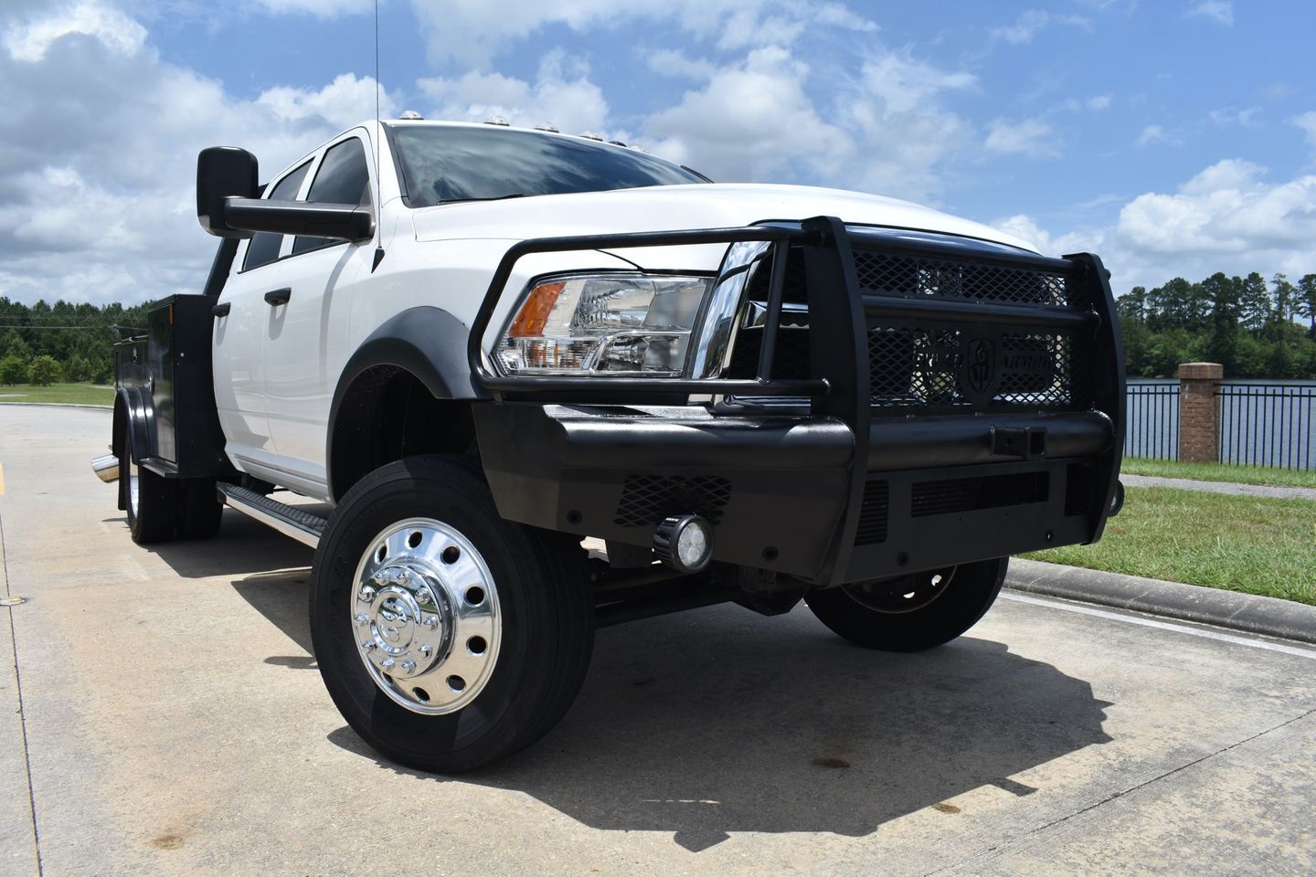 You are looking at a 2018 Dodge Ram 4500 Crew Cab 4x4. It is powered with a 6.7L Cummins Diesel I-6 and Aisin automatic transmission. It is equipped with power trailer mirrors, power windows, power locks, tilt, cruise, receiver hitch, gooseneck hitch, and am/fm radio. Also included are the owner's manuals and one keyless remote.