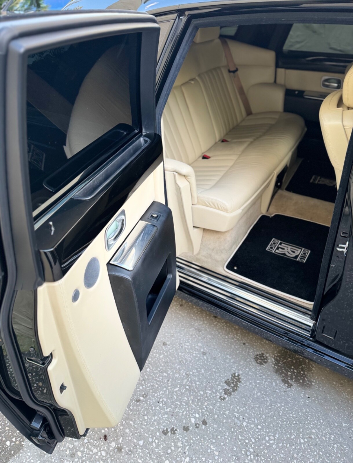 This listing is for a 2004 rolls Royce phantom that has 71,131 miles on it. This phantom in in great shape cosmetically and mechanically. This car has been a Florida car its entire life. Is ready for daily driving or road trips. I have had this car for about 2 years now and I have had a lot of work done on this car to make it in like new condition. When I bought this car I was told that it was repainted to a couple years ago to a very high standard and it shows. I was told it was repainted as the original paintwork was starting to look old. Whoever did the paintwork did an amazing job is all I can say. All the interior wood was painted black it was done nicely the black on woodwork isn’t factory. The interior at some point has been dyed the seats door panels etc they did a nice job. When I bought this car it had an aftermarket starlight headliner done there is a switch in the glovebox to turn it on and off and a remote that you can change colors of the lights the headliner Was done to a high standard. This car drives great and needs nothing mechanically. There is currently no warning lights on dash and the engine runs smooth and is powerful. Ac blows cold. The tires and rims are factory rolls Royce and the PAX run flat system. The tires have plenty of tread life on l them. I had a sat radio module installed on car it’s removable if you want to take out and it’s not wired into the car. This car turns heads wherever it goes and is ready for someone to enjoy. The body of this car has no door dings or dents anywhere on the front fenders wheee front number meets the fenders on each side you can see some old marks there where tires could have rubbed at some point in past I included pics of these areas isn’t bad at all. Also on passenger side front carpet on side some of the carpet pile came off when I had the carpet wet vacuuming done. I included pic. This spot is hidden when floor mats are down. The areas on front fenders that I mention above could have happen if the car had bigger aftermarket rims on it at some point in its life. On front bumper and front end you might see some small small rock chips but those have been touched up nothing major. The windshield is crack free and has Ceramic tinting on it. The rest of car has window tint on it. This car looks great and doesn’t look 20 years old. Both batteries were replaced on this car in 2022 and are in good working order. This car comes with its original window sticker and owners manual as well as a set brand new black lambswool floor mats for front and back. And 2 keys. Don’t miss your chance to own this beautiful car that has had a lot of work done to make in like new condition mechanically I’m going to ask $89,900 and will accept reasonable offers for this car. It comes with a clear Florida title and if you look vin number up the carfax is clean. Some of the exterior chrome has been blacked out and it really makes this car stand out. I will accept bank wire for payment. Full payment is expected within 3 days of listings end. Buyer is responsible for having car picked up. Please check out my other listing here on eBay for a 2010 rolls Royce phantom coupe. Please email me with any questions or call 8134930187 Here is a list of items that has been done this past 2 years on this car by dealer and an exotic repair shop that specialize in rolls Royce. Over $70,000 in repair invoices my loss is your gain all the work has been done. This car has had the entire front end suspension redone with new bushings wherever there is rubber on front end. 2. Upper and lower radiator hoses new. 3. Both Fuel rail sensors 4. Tie rods inner and outer. 5. Install switch for aftermarket starlight headliner. 6. 2 new factory horns. 7. new steering column motor. 8. Rear lower control arms left and right. 9. Rear brake pads replace. 10. New Engine mounts right and left. 11. Evap solenoid and line. 12. New ac blower motor. 13. New fuel return lines,return valve and new dtml pump and carbon canister. 14. New Audio amplifier. 15. New idrive mechanism. 16. New flip screen mechanism for navigation. 17. Carbon cleaning walnut shell blasting at rolls dealership on combustion chamber and intake valves replacement of crankcase vent valves and attaching hoses 12 spark plugs. 18. Replace front headlight washers and Pdc sensors. 18.Replace all speakers and subwoofers with factory new. 19. New cooler expansion valve tank. 20. New navigation unit. 21. Front hood struts replace. 22. Replace rear trunk springs. 23. Replace all engine knock sensors. 24. Replace both front headlight assemblies with new factory ones. 25. New front and rear factory struts. 26. Driver side window regulator replaced with new face
