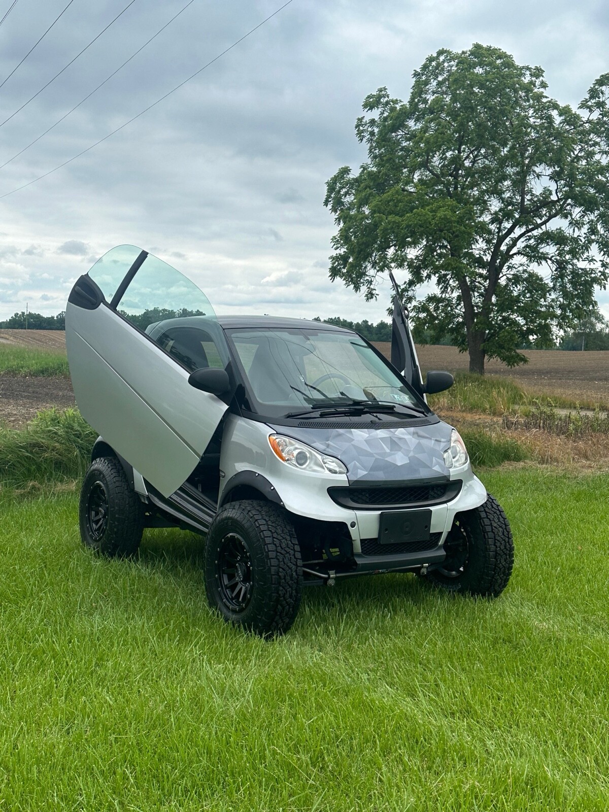 56k Original Miles BRAAP STR Lift Little Big Supply 3 to 4 Lug Adapters 15” Raceline Wheels w/ TPMS & New Lug Nuts 30x9.5x15 Toyo Open Country AT Tires Pioneer 6.5” Speakers Double Din Radio with Apple Car Play & Google Play Painted Drums & Calipers Fender Flares MotoHorn ( Sounds like air horn) Heated Seats Wrapped Hood With Custom Design Lamborgini Doors by Vertical Doors Inc Recent alignment The list in photos shows you what is included by BRAAP in their “ Signature Build“ package for $16,495. This does not include the price of the vehicle itself, or many of the other options we have added. ***Lift kit instructions state to remove ABS fuse due to change in wheel/tire size. Due to this, there are warning lights on dash board. This is common practice on all Smart car lift kits***Seller's Notes