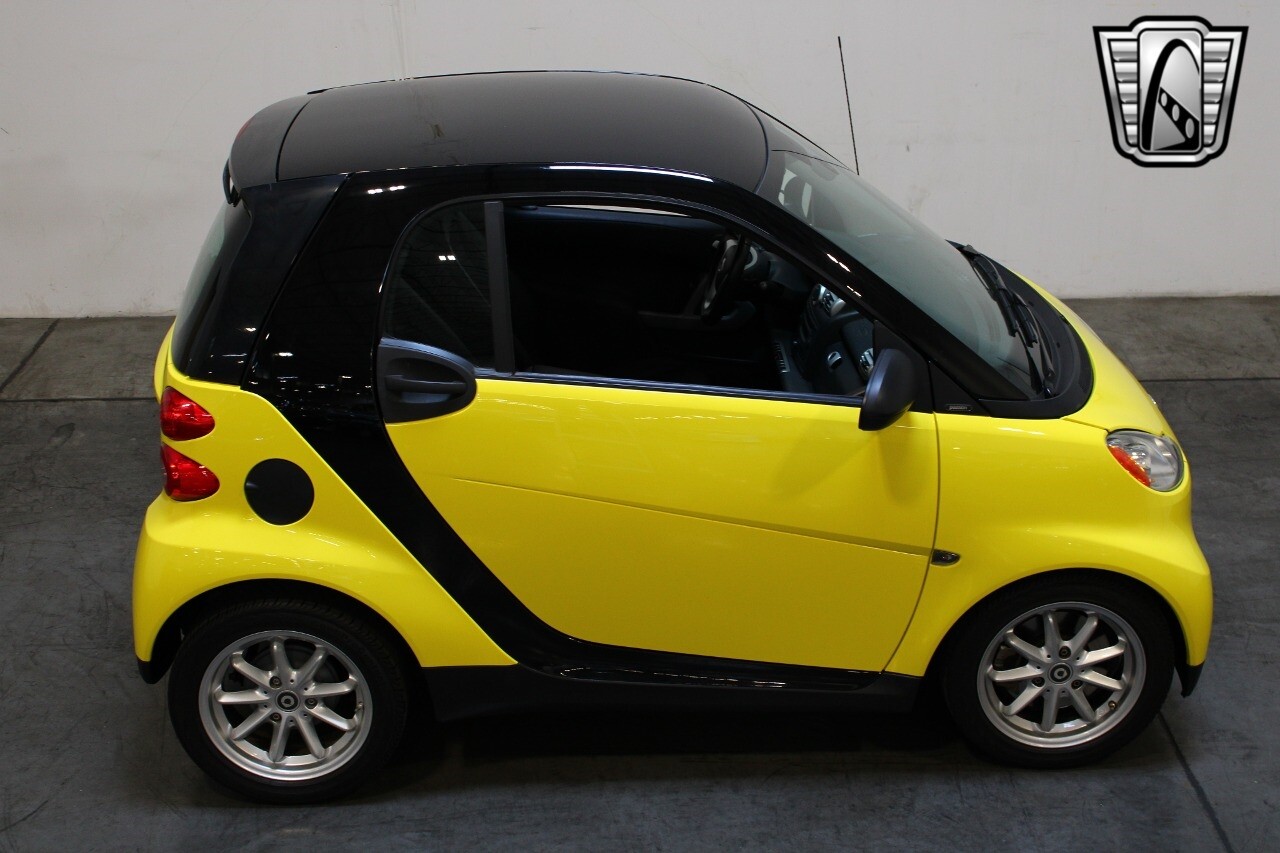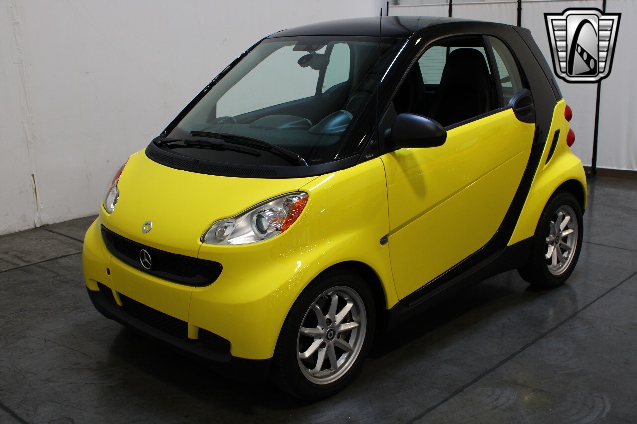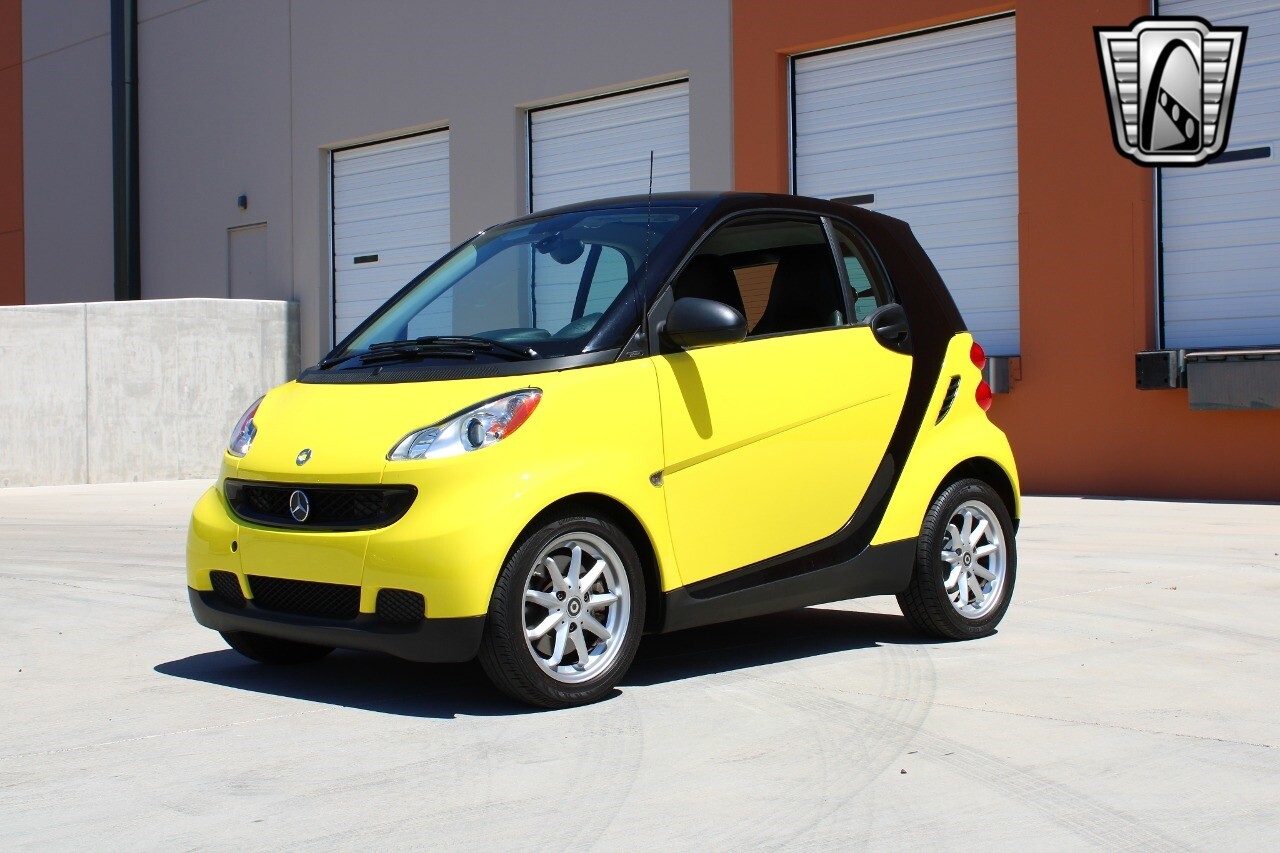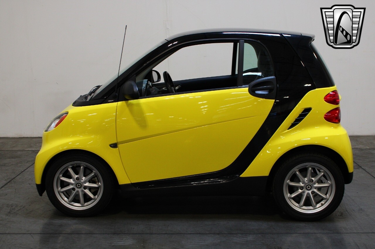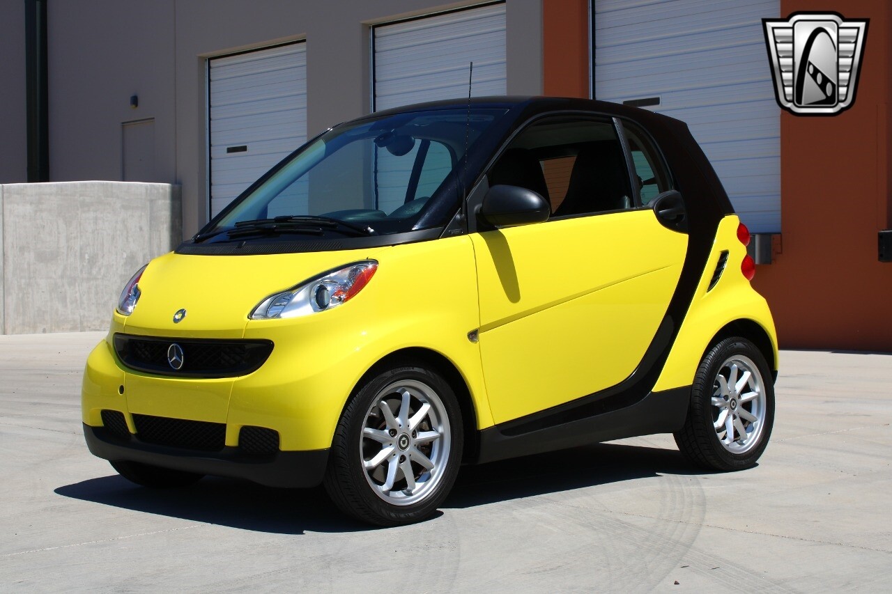 Introducing the 2008 Smart Fortwo Pure, a compact car that's big on style and efficiency. This model comes in a vibrant yellow exterior, guaranteed to turn heads wherever you go. Inside, you'll find a comfortable black cloth interior, providing a nice contrast to the exterior.