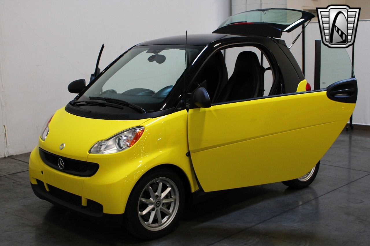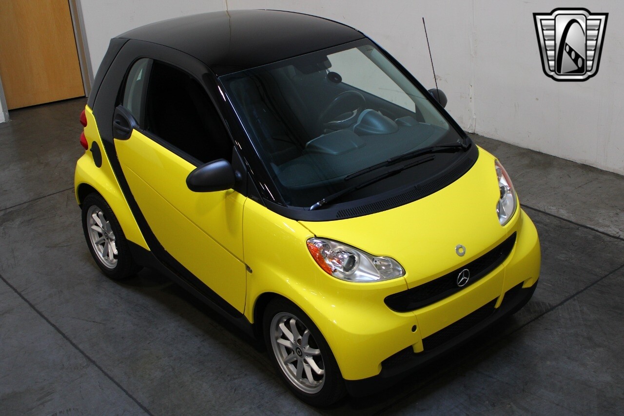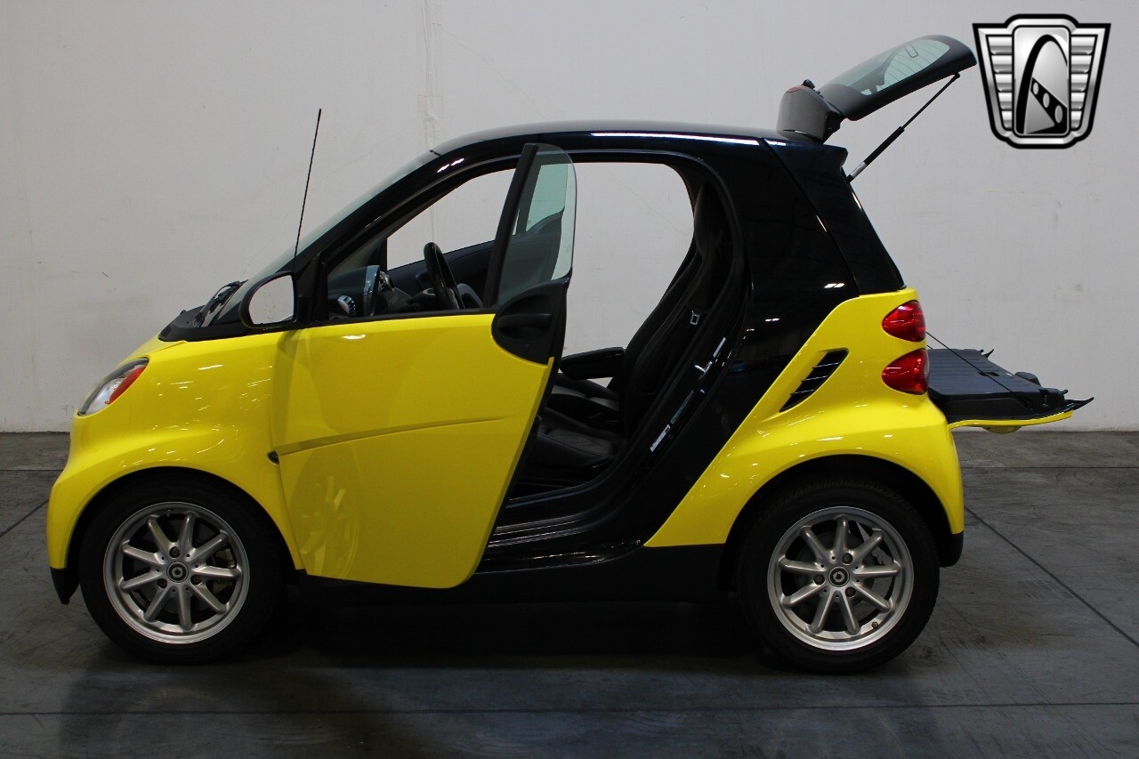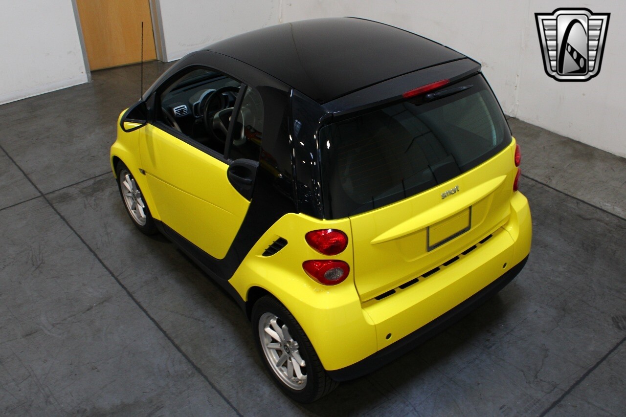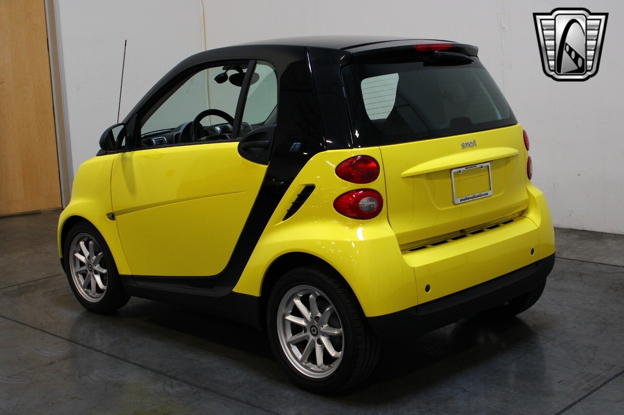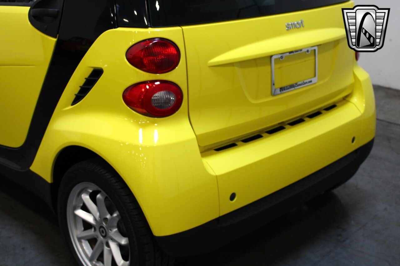 Introducing the 2008 Smart Fortwo Pure, a compact car that's big on style and efficiency. This model comes in a vibrant yellow exterior, guaranteed to turn heads wherever you go. Inside, you'll find a comfortable black cloth interior, providing a nice contrast to the exterior.
