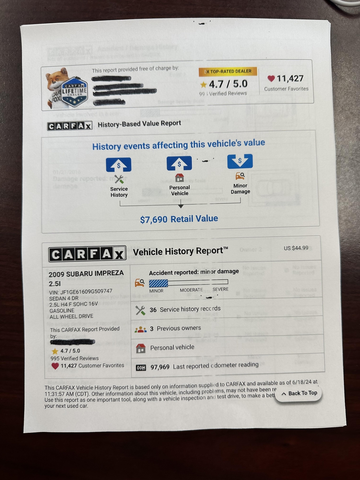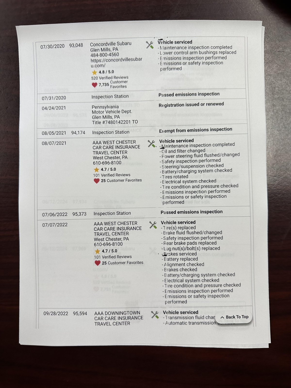 VEHICLE WITH HIGH MILES. WE RECOMMEND