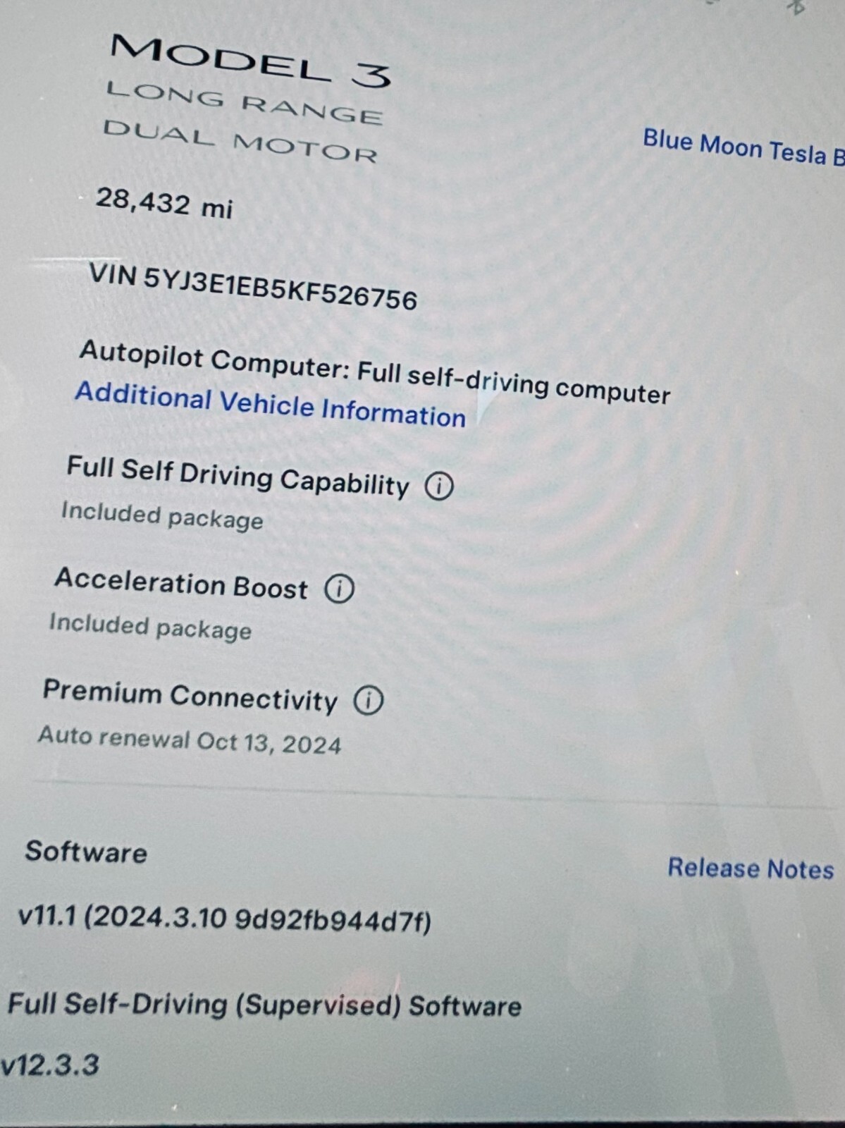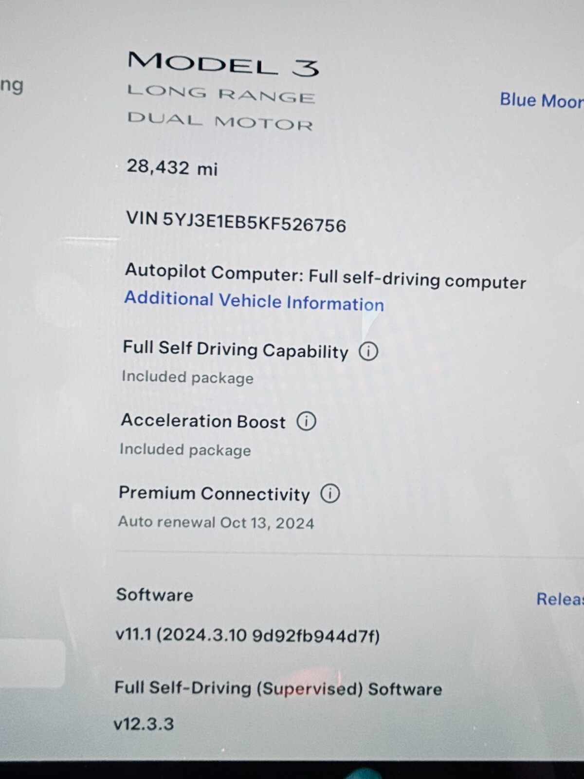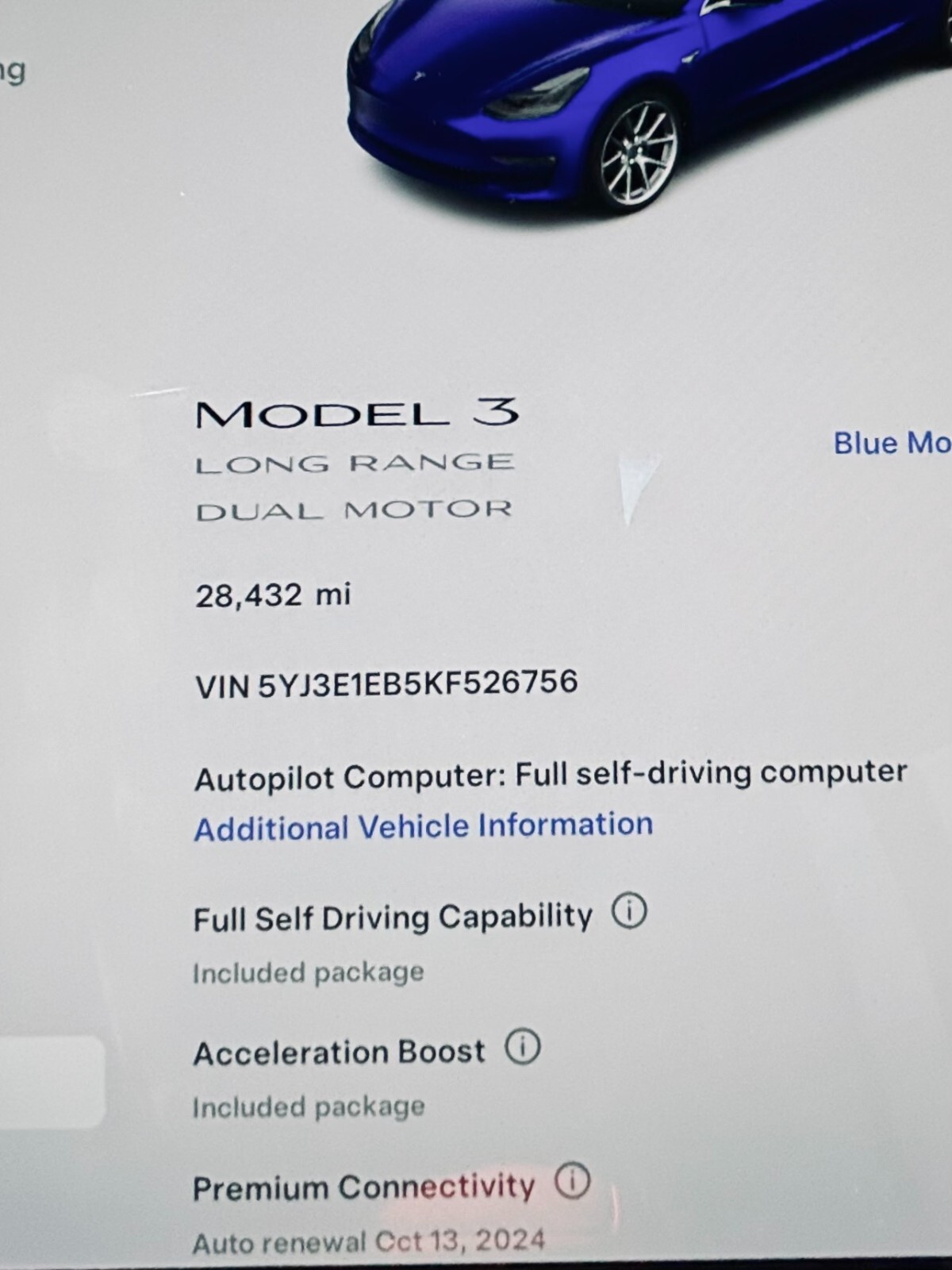 Now the new FSD upgrade12.4.1 just announced is "hands free", total self driving is affordable. This Tesla 2019 Model 3, has AWD, LR, Dual Motor, FSD (capability), Yoke Steering wheel, Red seat cover over the white OEM seat covers. Rear marker lights flash to show direction of turn, and light up when breaking. Car is in excellent condition with a few minor scratches and severe curb rash. The car has low mileage of 28,732 miles.