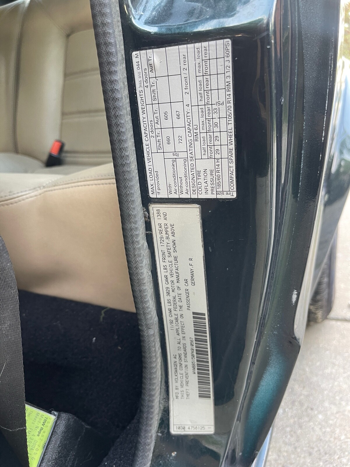 1993 VW Cabriolet Karman Collectors Edition 5 speed manual Leather seatsSeller's Notes