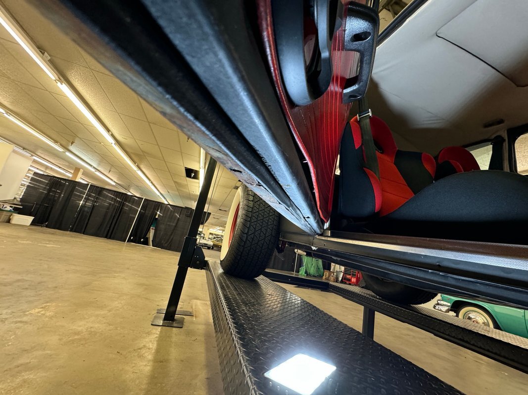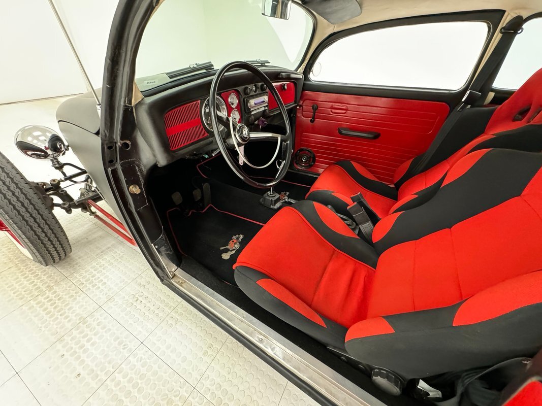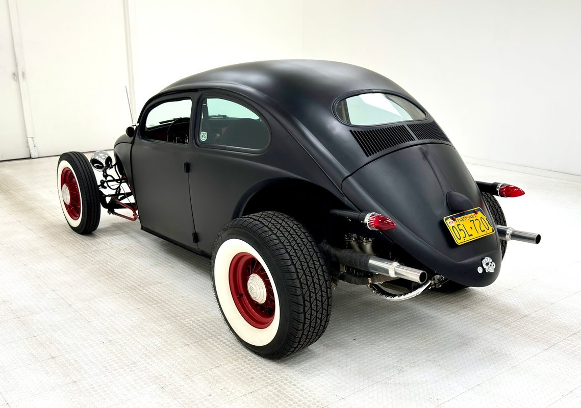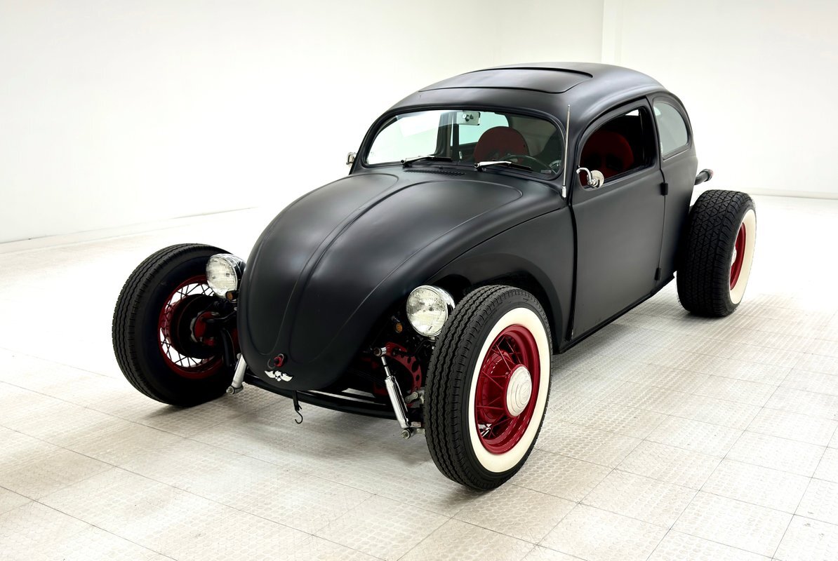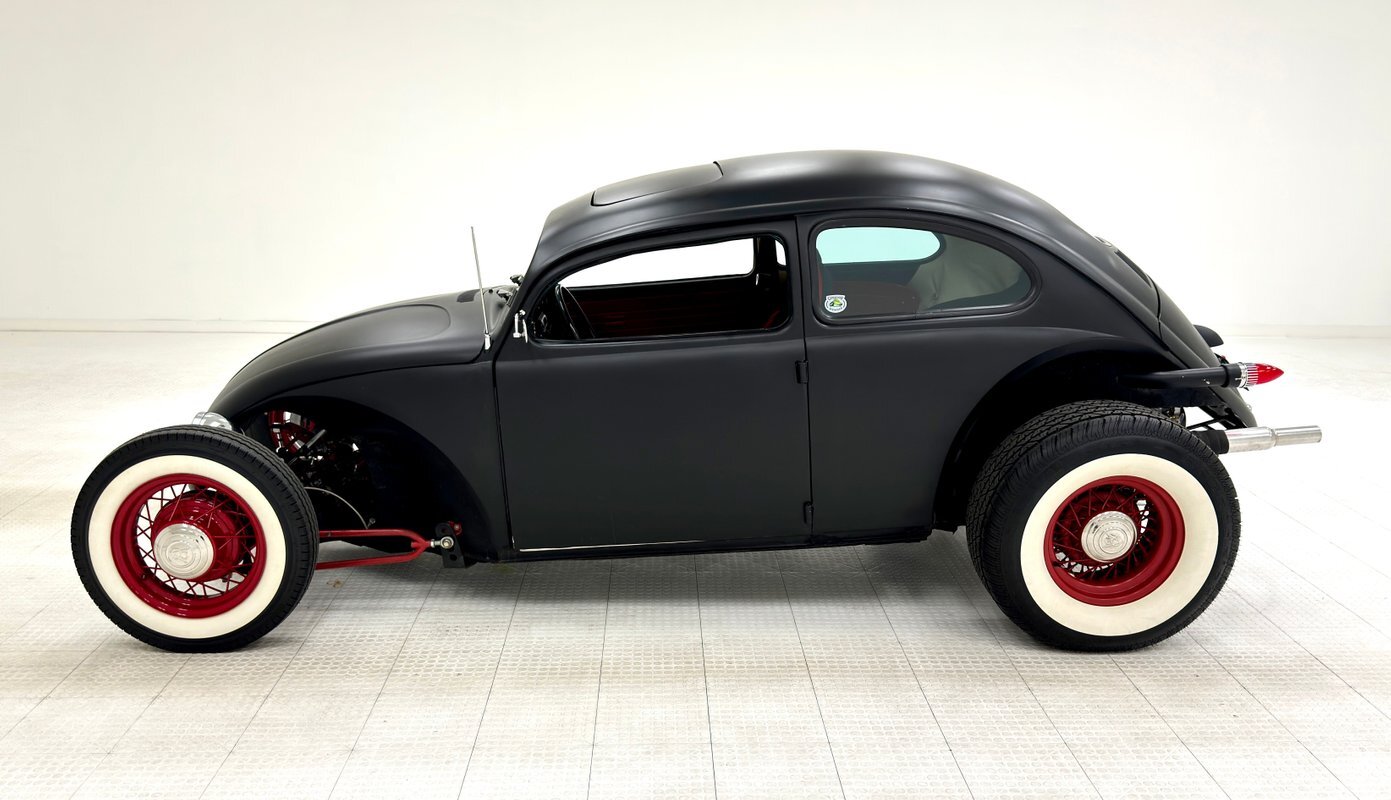 Okay, VW lovers, this one's for you! Here's a hot rodded Beetle, chopped and raked and shaved, wearing a coat of flat black and staggered red wheels. How cool! It's unusual, unique, and ready for show and go. Put the bug spray away and head on over to the mall. Too far away? No problem. Give us a call and we'll help with the process!