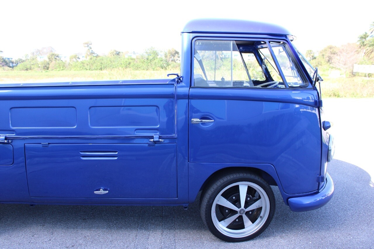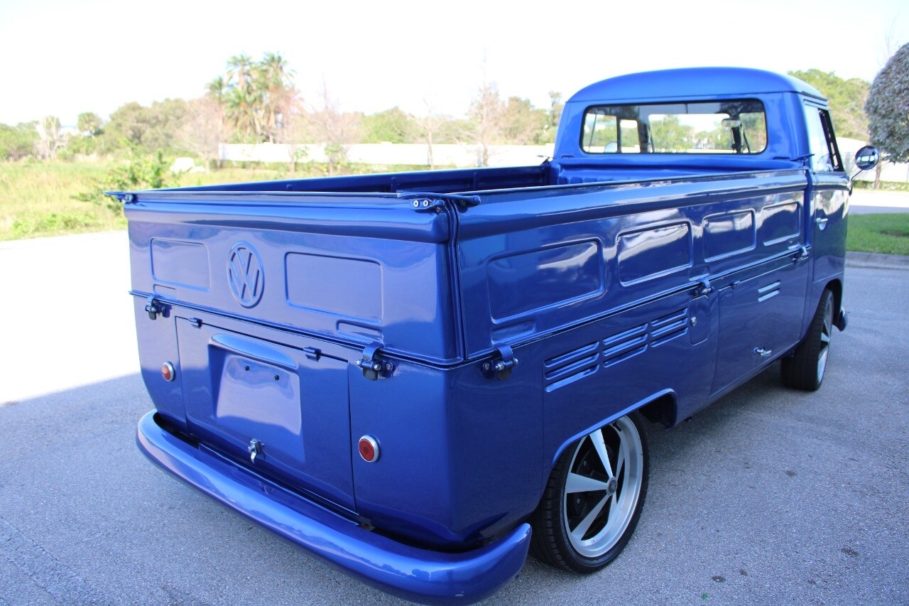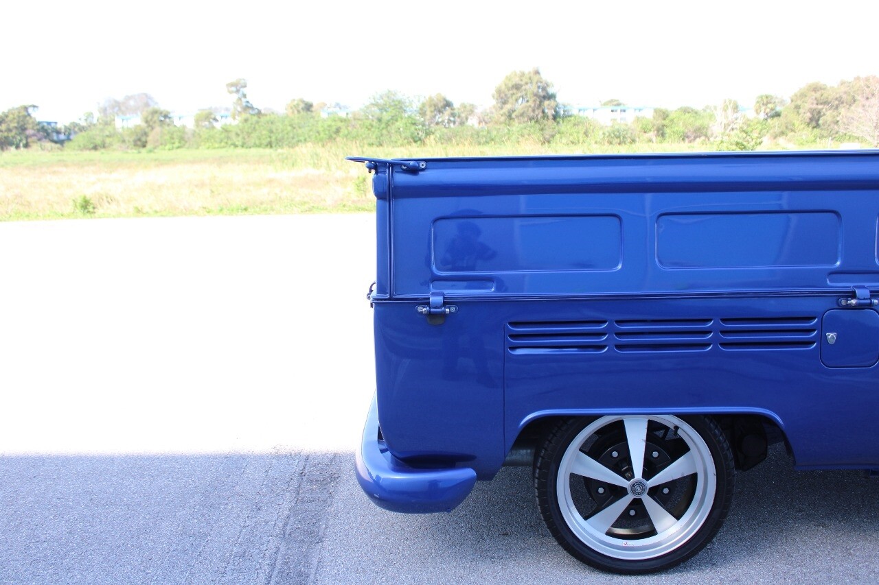 Introducing the 1974 Volkswagen Bus Pickup Single Cab, a classic vehicle that superbly blends style, performance, and functionality. This model comes in a striking blue exterior color that is sure to turn heads wherever you go. The black leather interior adds a touch of sophistication and comfort, making every ride an enjoyable experience.