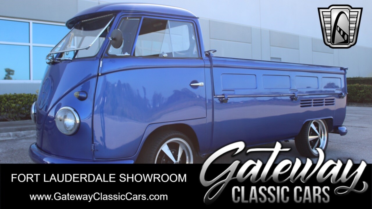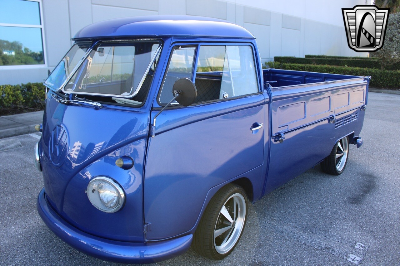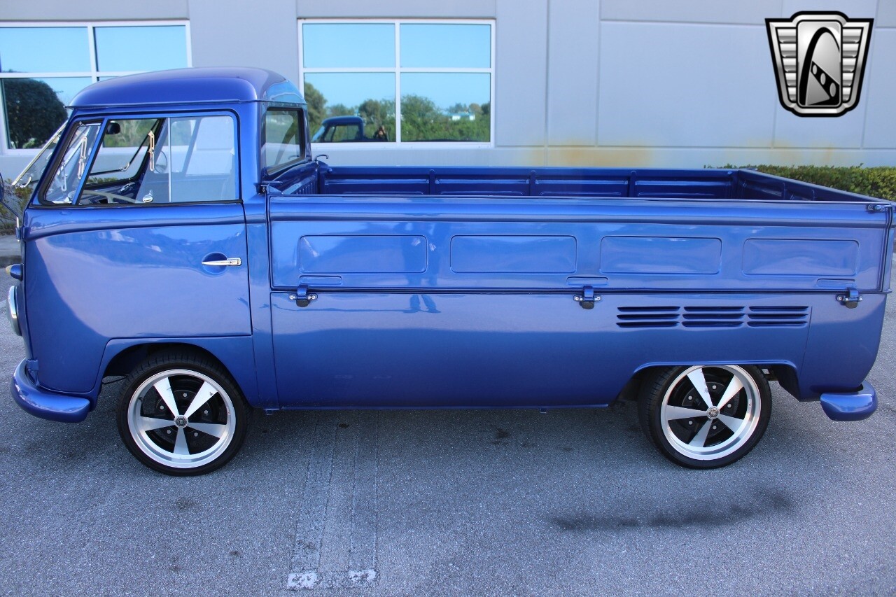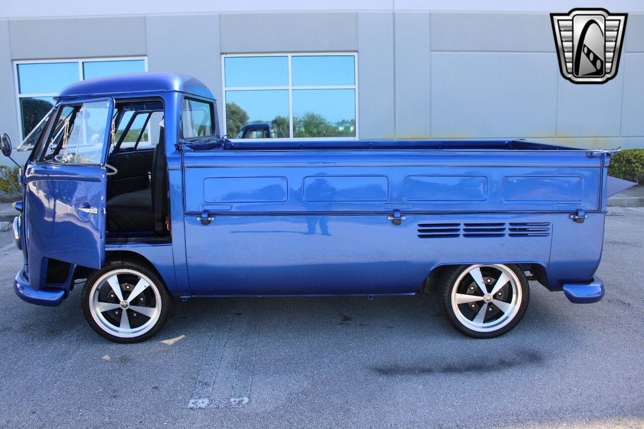 Introducing the 1974 Volkswagen Bus Pickup Single Cab, a classic vehicle that superbly blends style, performance, and functionality. This model comes in a striking blue exterior color that is sure to turn heads wherever you go. The black leather interior adds a touch of sophistication and comfort, making every ride an enjoyable experience.