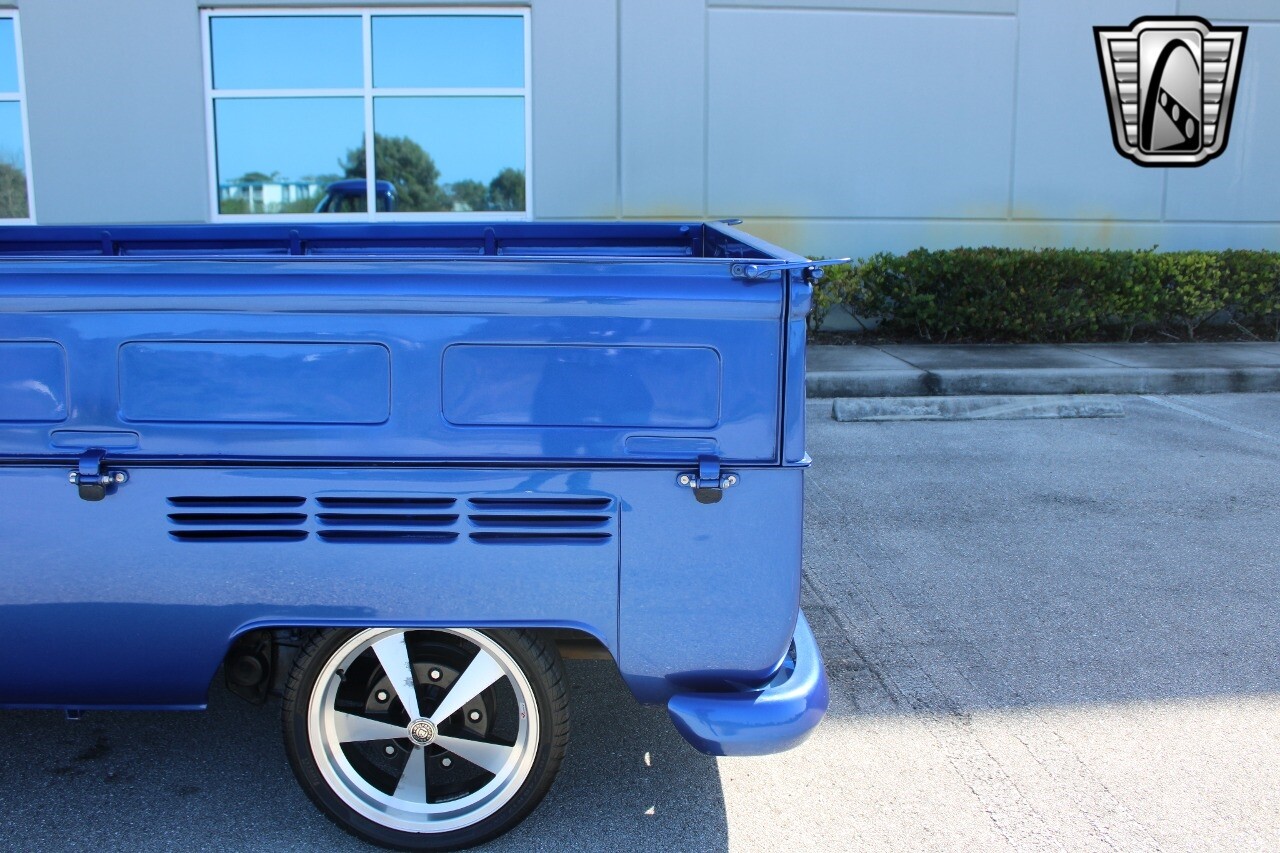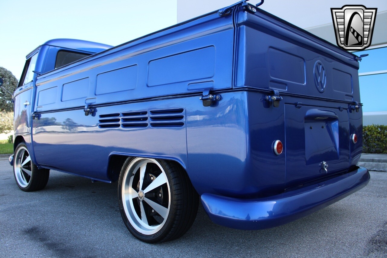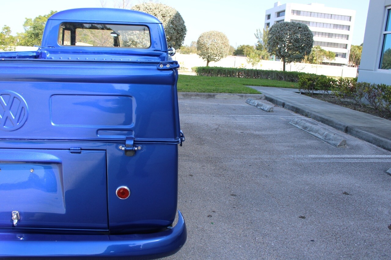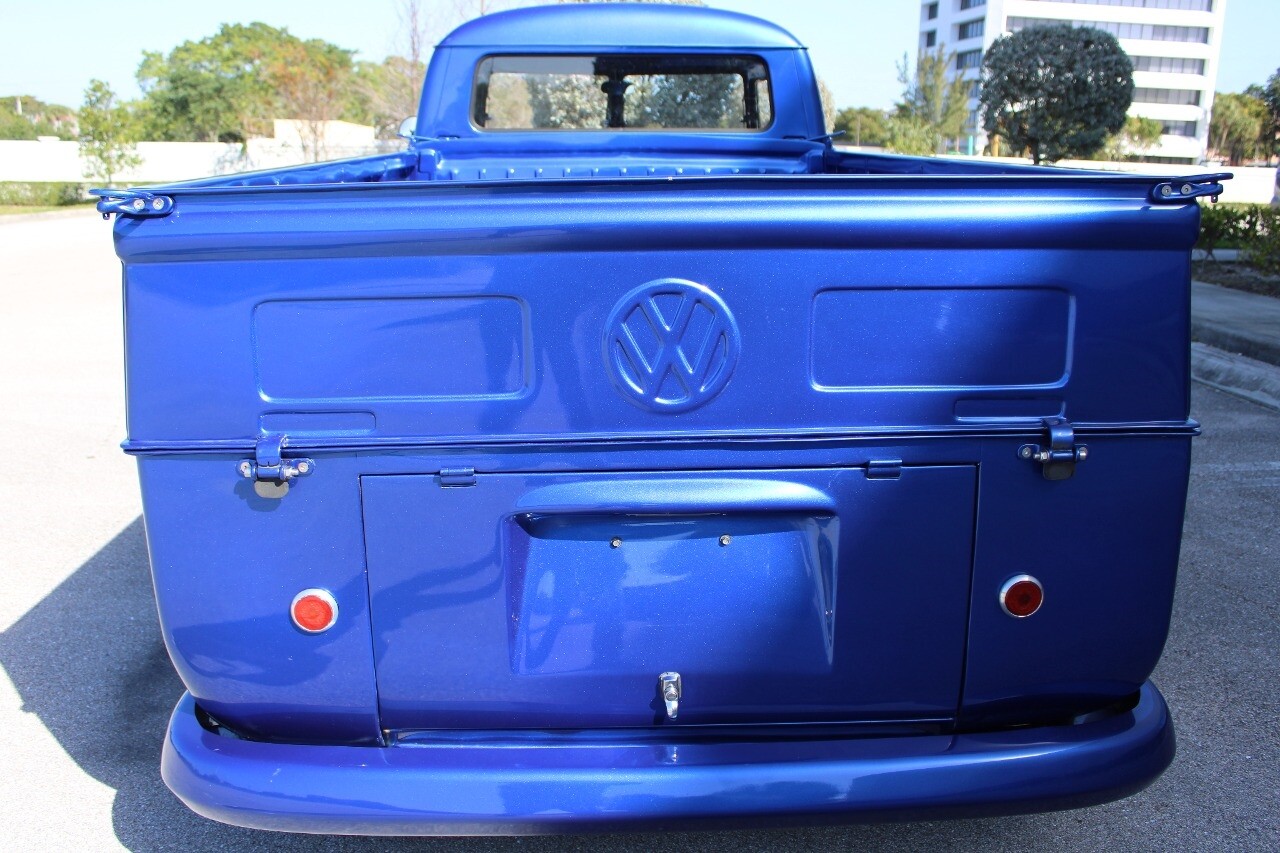In conclusion, this 1974 Volkswagen Bus Pickup Single Cab is a classic vehicle that offers a unique blend of style, performance, and functionality. Its striking blue exterior, black leather interior, and range of features make it a standout choice for those seeking a vehicle with a vintage charm..