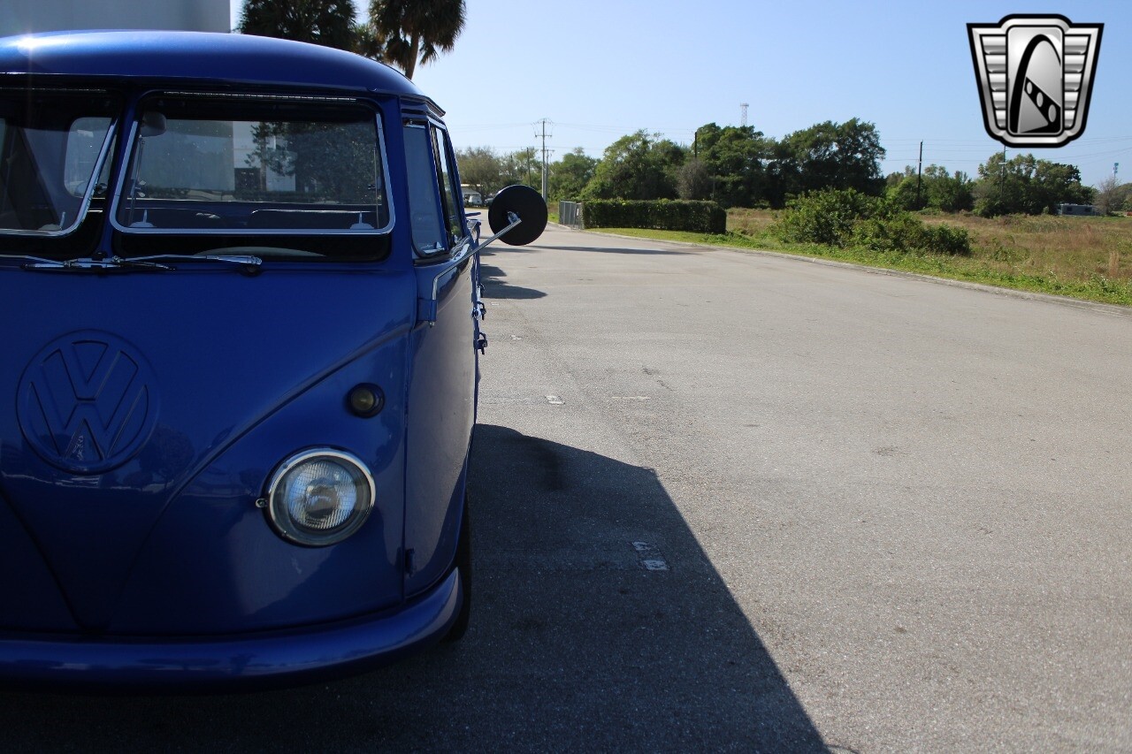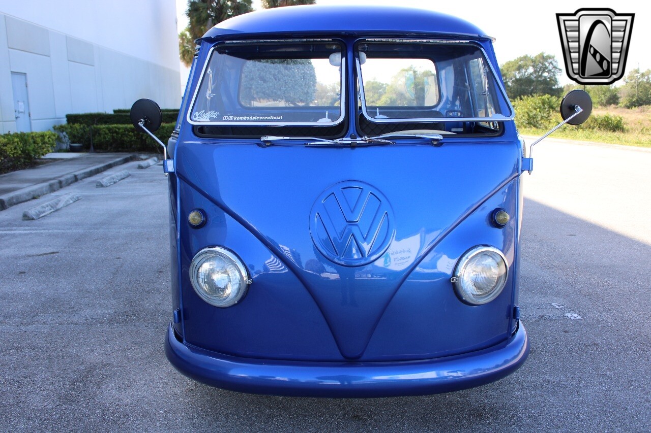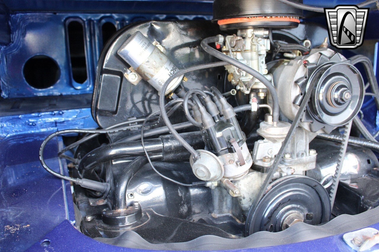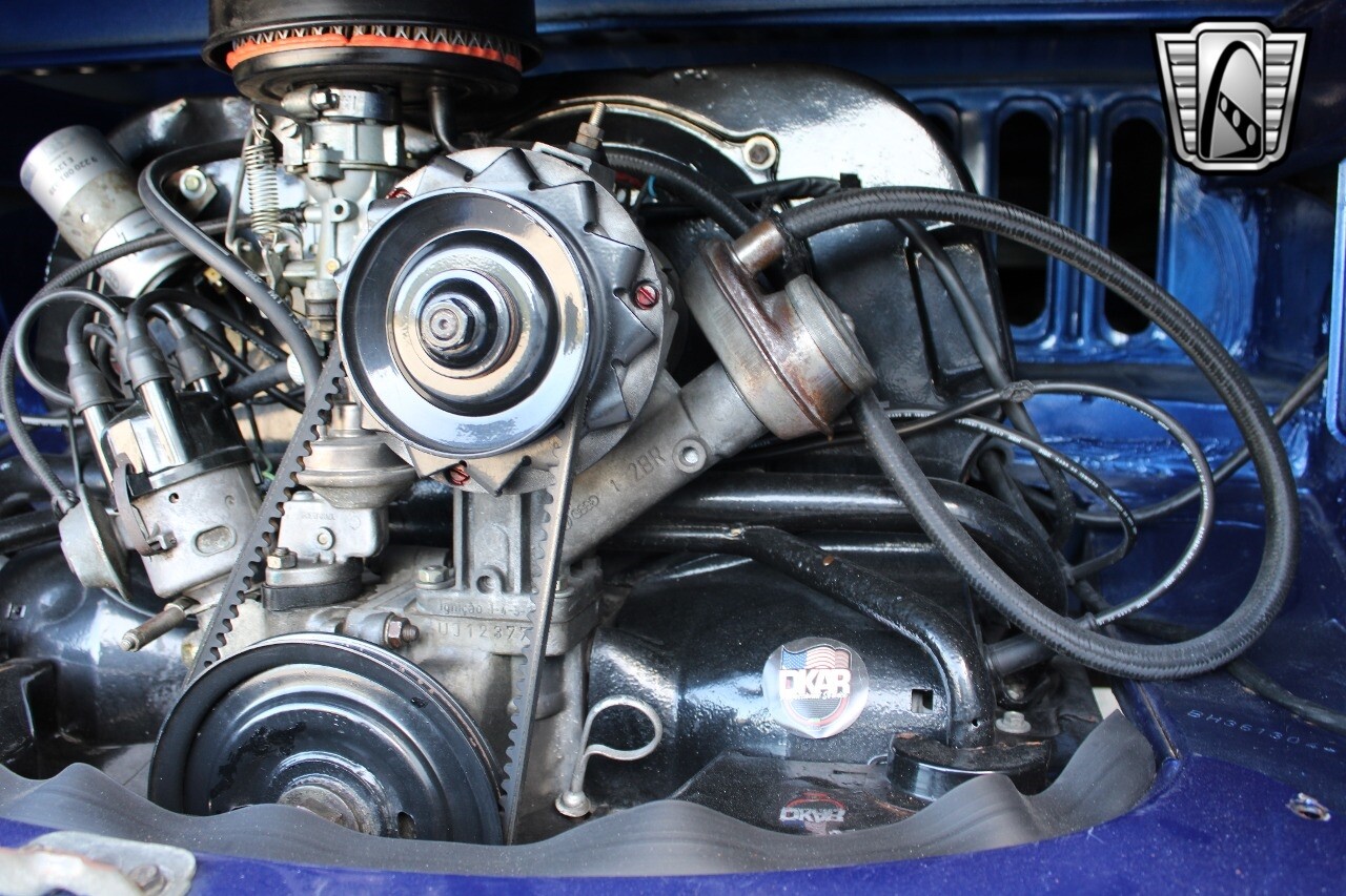 In conclusion, this 1974 Volkswagen Bus Pickup Single Cab is a classic vehicle that offers a unique blend of style, performance, and functionality. Its striking blue exterior, black leather interior, and range of features make it a standout choice for those seeking a vehicle with a vintage charm..
