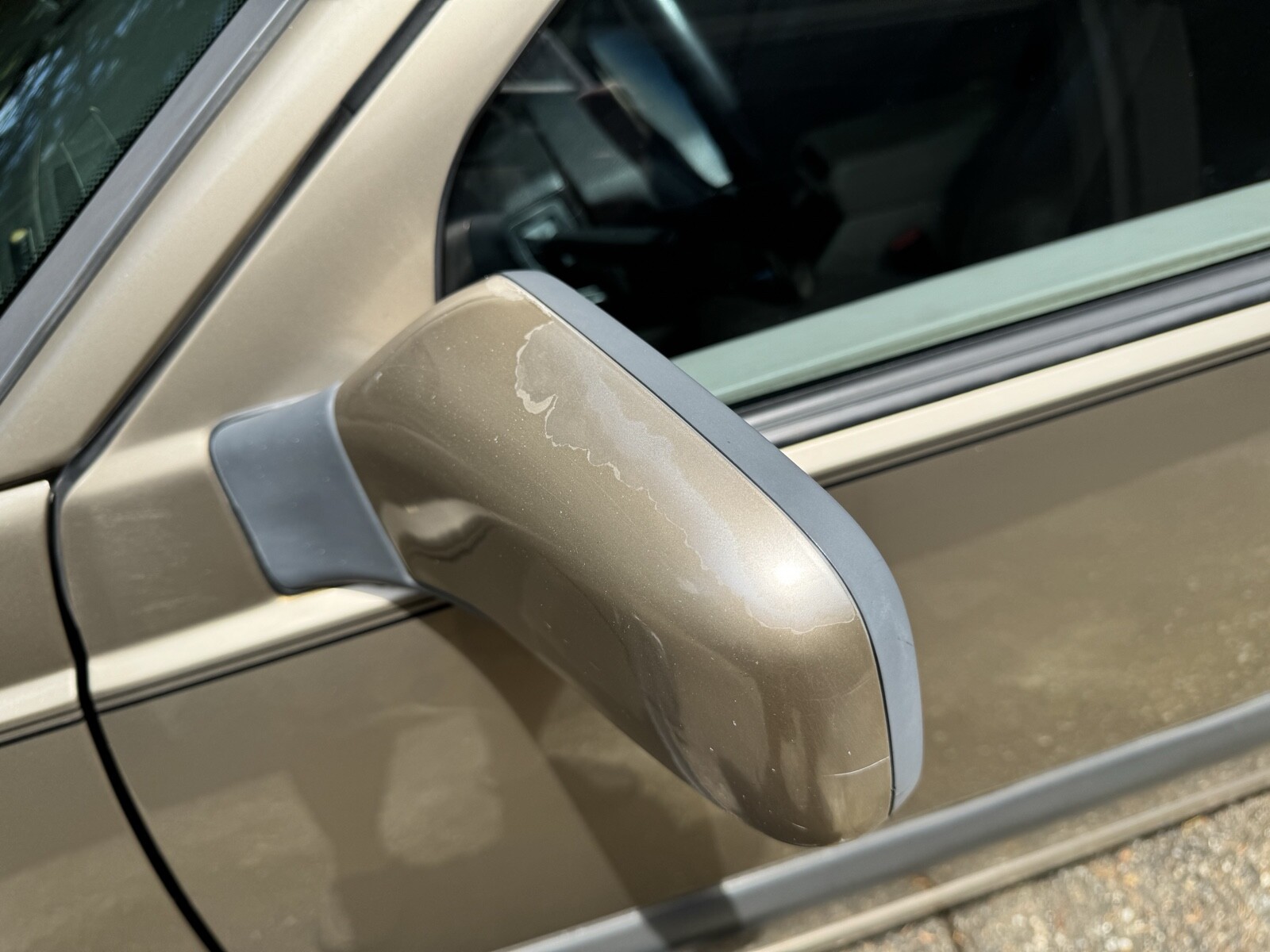 - Car was in an accident twenty years ago where the driver's mirror, front left fender, headlight and hood were hit and repaired to a high standard. I see it now only because the clear coat is flaking off the mirror.