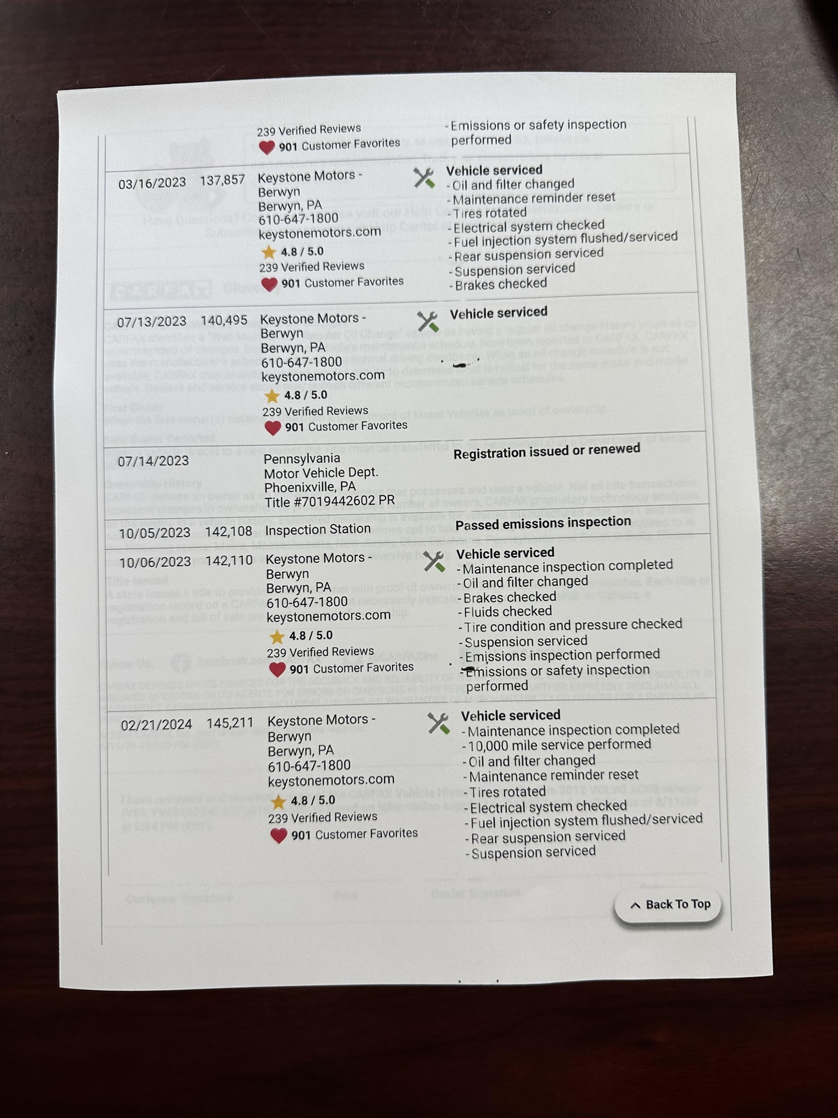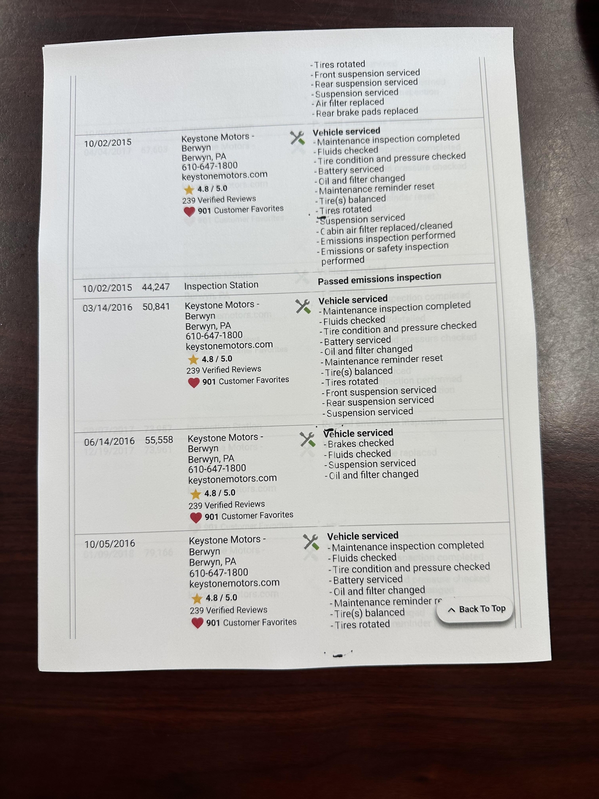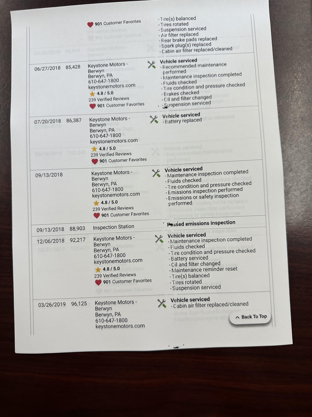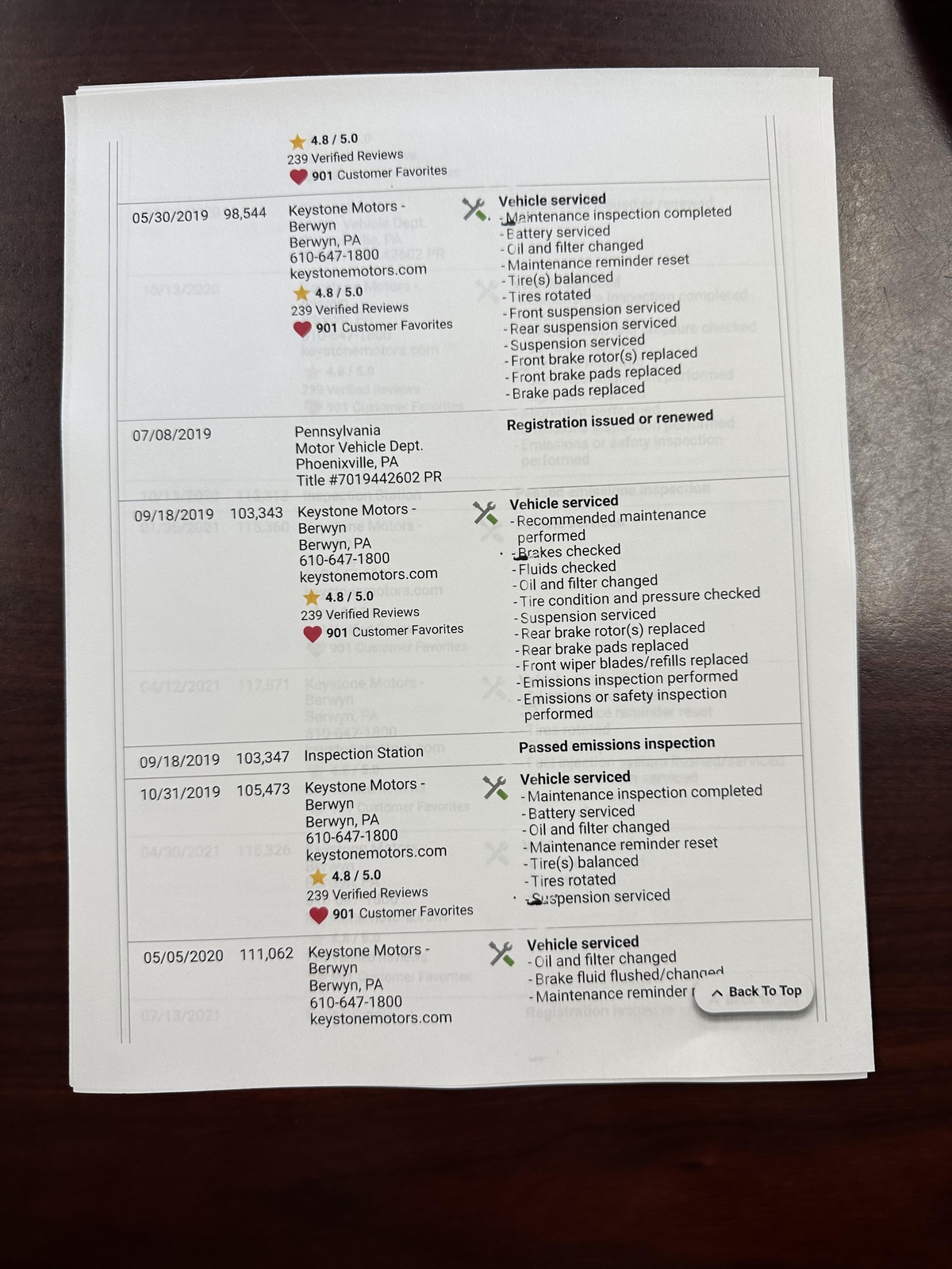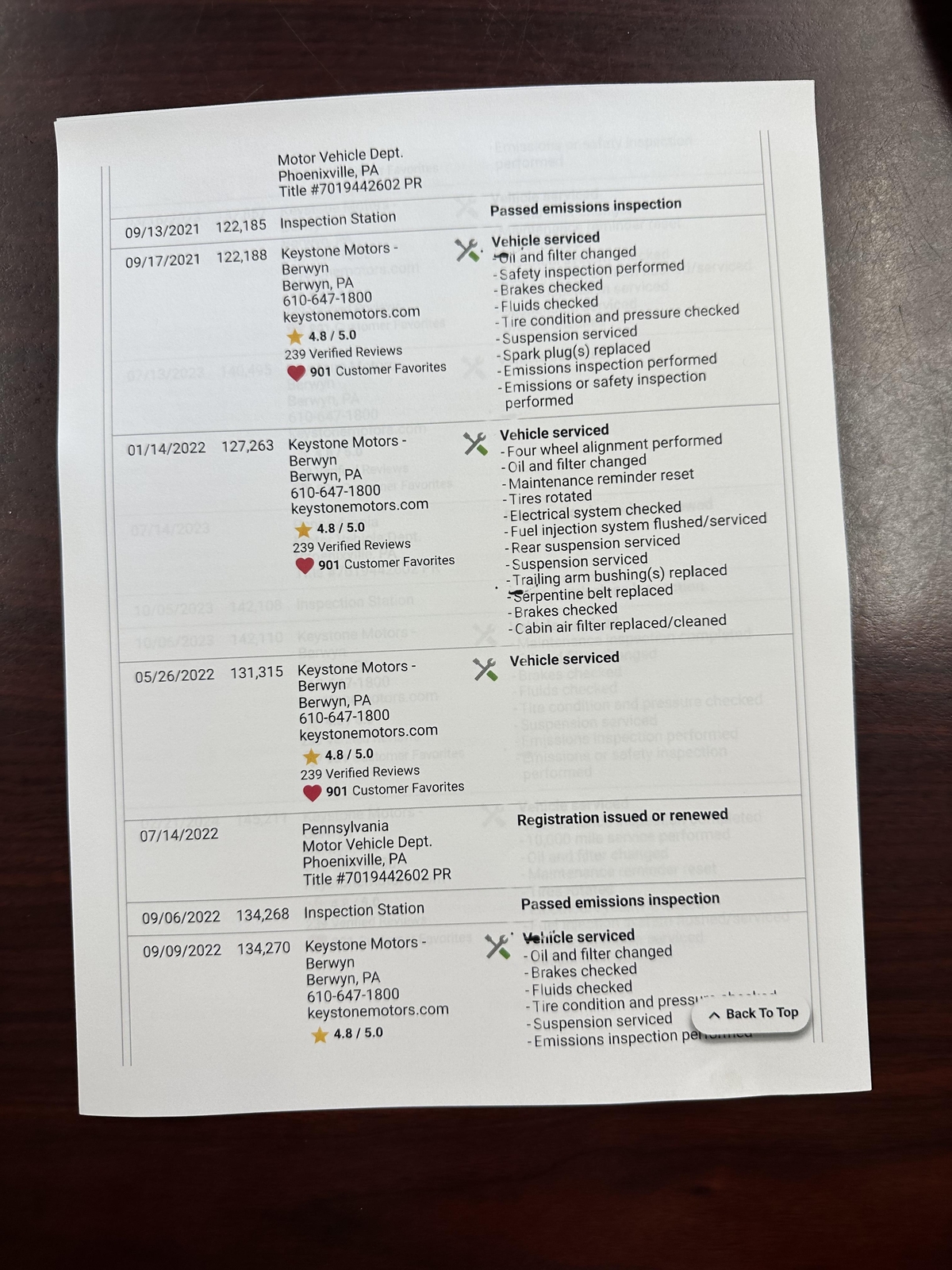 VEHICLE WITH HIGH MILES. WE RECOMMEND