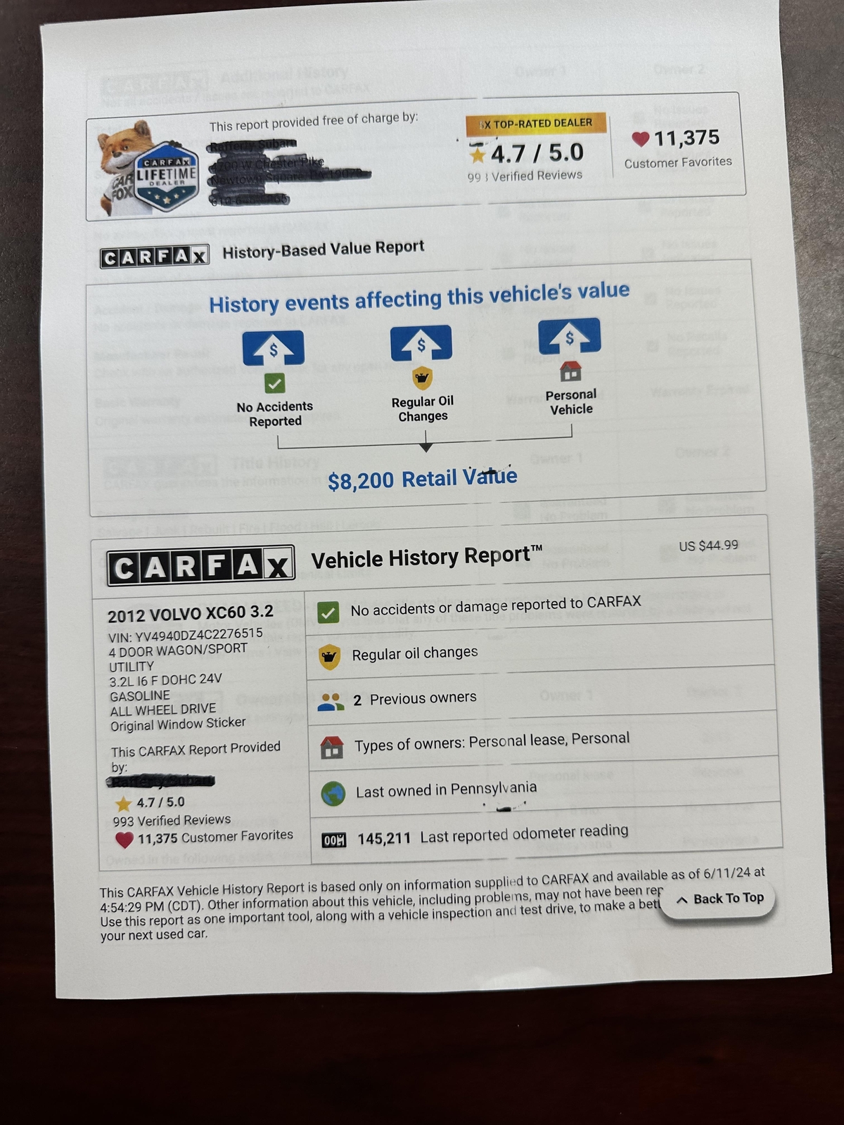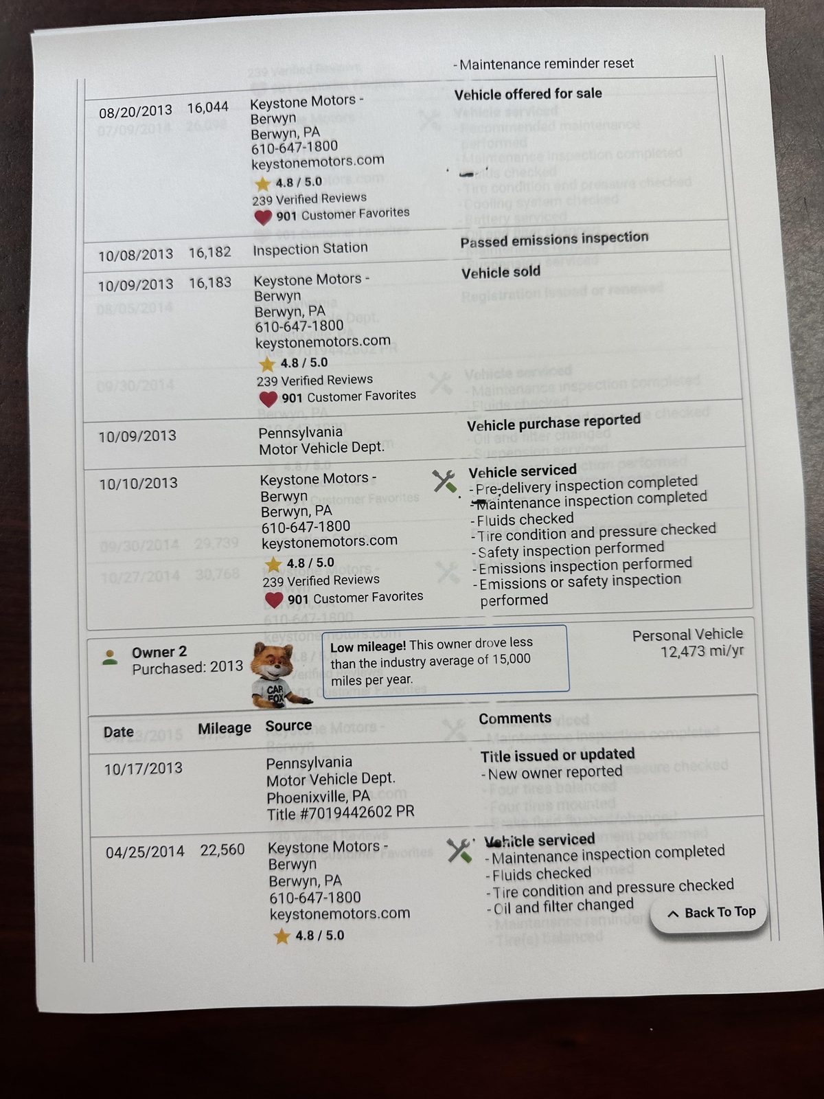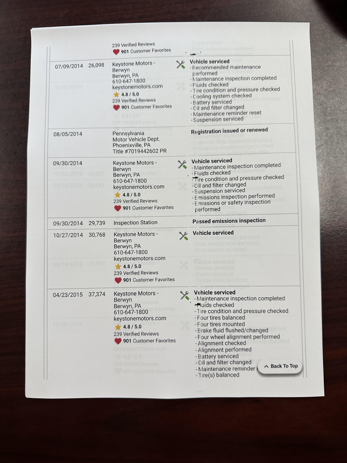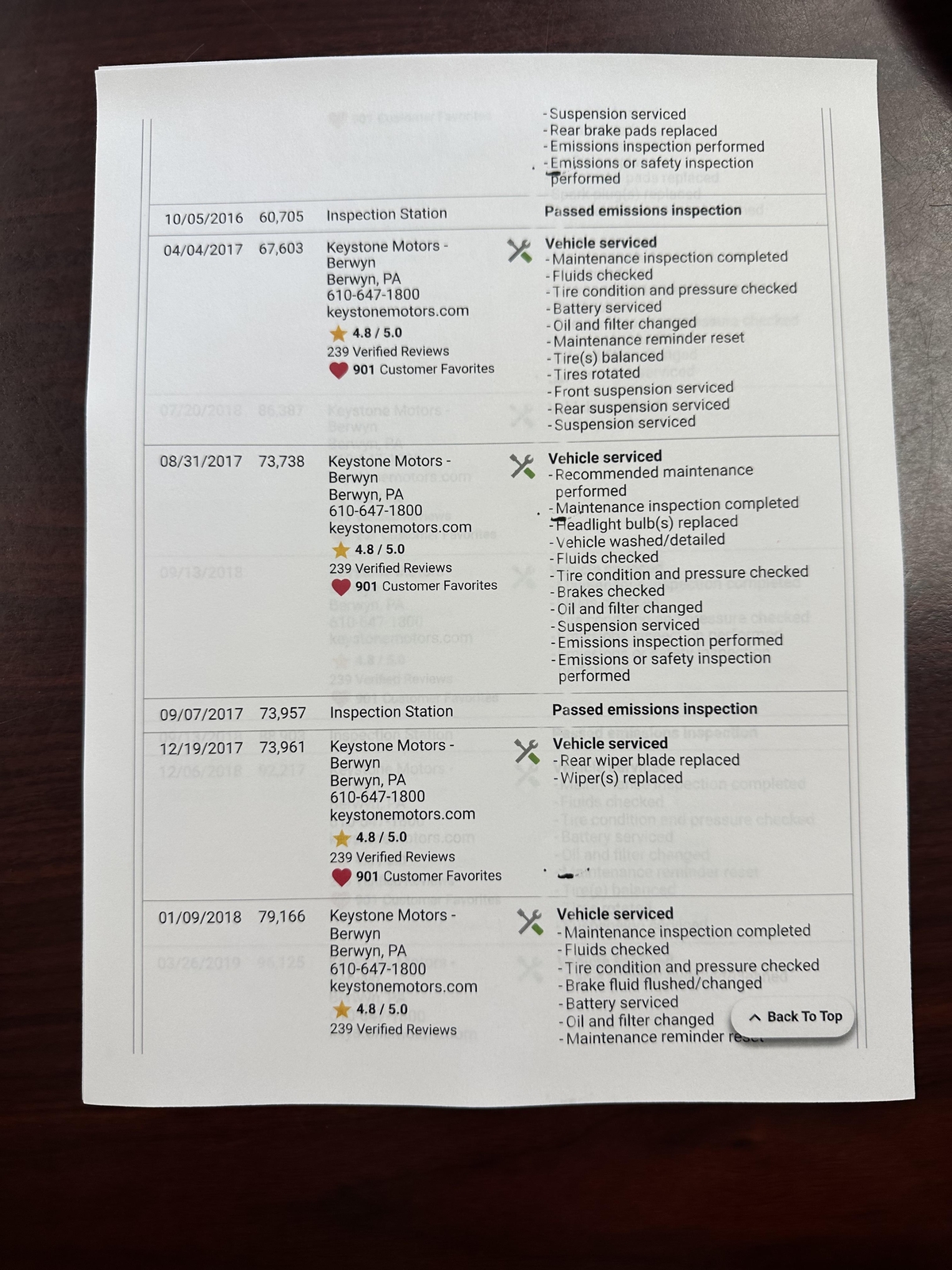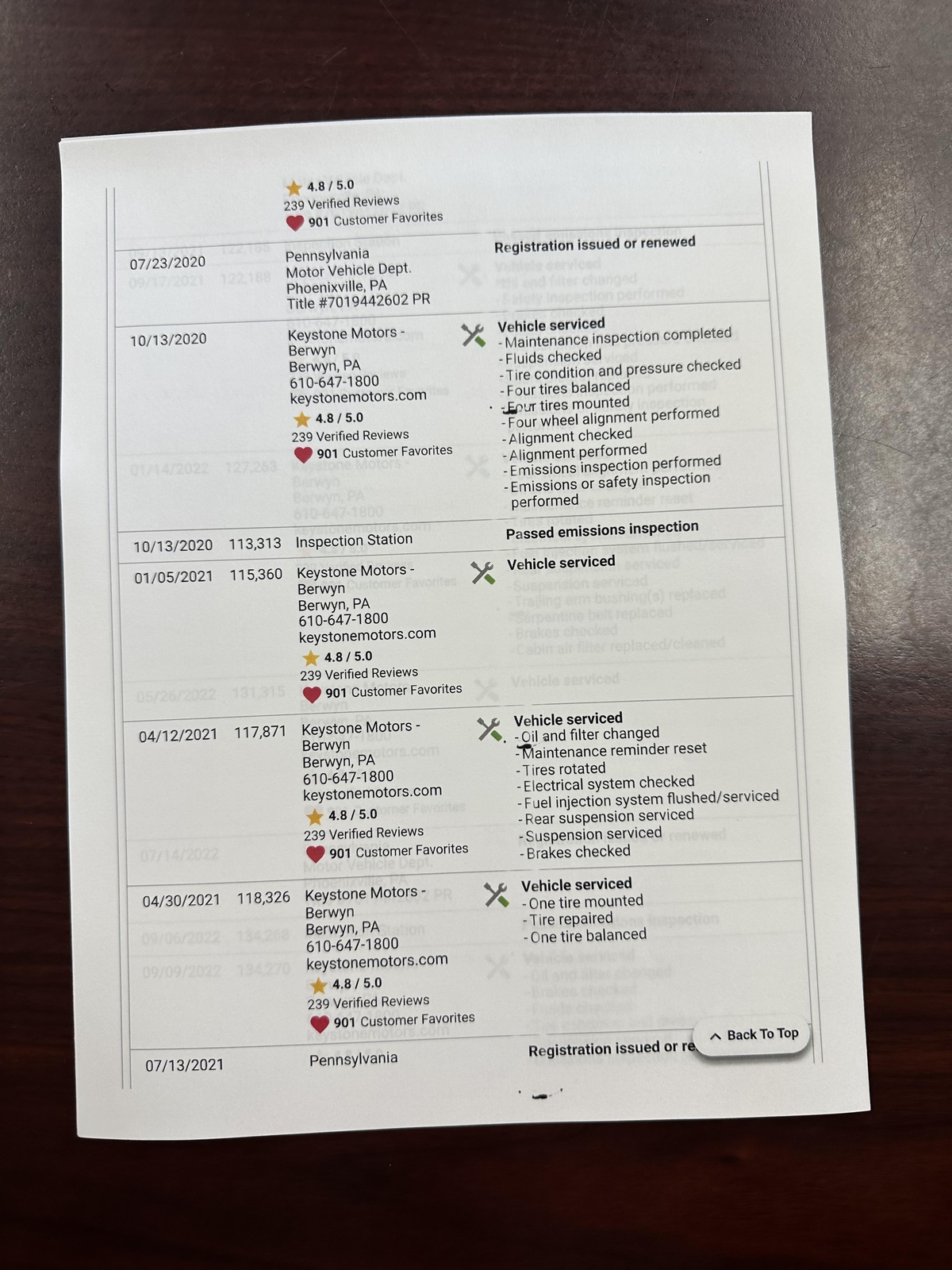 VEHICLE WITH HIGH MILES. WE RECOMMEND
