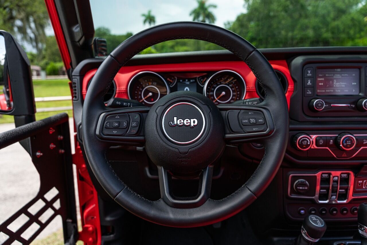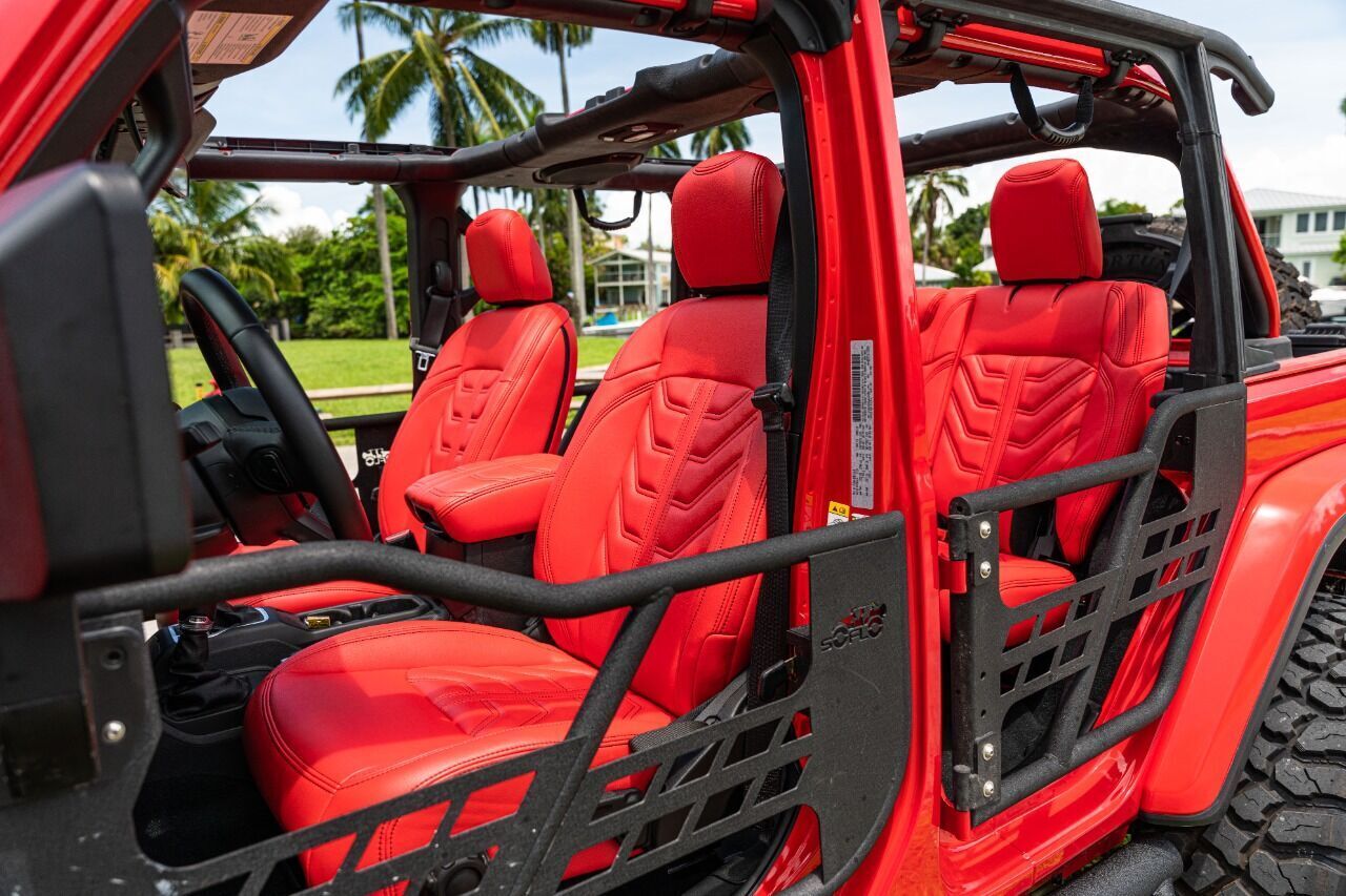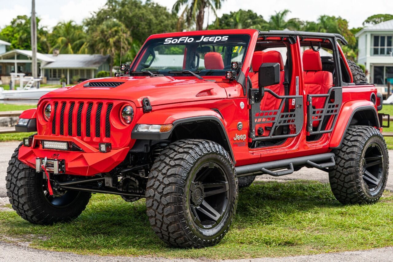 YEAR: 2024 TOP: Hard Top - Black COLOR: High Gloss Red TRIM: SoFlo Lifted Custom Wrangler LIFT: 3.5” TIRES: 37 Gripper RIMS: 20 Black SFJ HOOD: Raider GRILL: Colormatched Stubby Steel Bumper with Winch SIDESTEPS: Steel HEADLIGHTS: Halo Color Changing SPECIAL FEATURES: Double Stacked Cube Lights, WEATHERPROOF INTERIOR: Red Six Pack WHAT MAKES THIS TRUCK SPECIAL: This is a 2024 with the giant horizontal infotainment screen CALL US OR COME SEE THESE CUSTOM TRUCKS IN PERSON Location 1: 1430 W Broward, BLVD Fort Lauderdale, FL 33312 855-873-7632 Location 2: 2720 Okeechobee BLVD West Palm Beach, FL 33406 855-873-7632 NEW E-PURCHASE SYSTEM - Customers never have to leave the comfort of their home couch to purchase a SoFlo Jeeps or Apocalypse 6x6 truck. We offer online payment, financing and video walkarounds. We ship our trucks worldwide to any and every location. Have a trade-in? Not a problem at all, as WE ACCEPT TRADE-INS NATIONWIDE AND YOU NEVER PAY TO SHIP IT. We make buying and receiving your dream truck beyond simple. ****ALL PIPE DOORS ARE EXTRA AND NOT INCLUDED IN PRICE OF THE TRUCK****