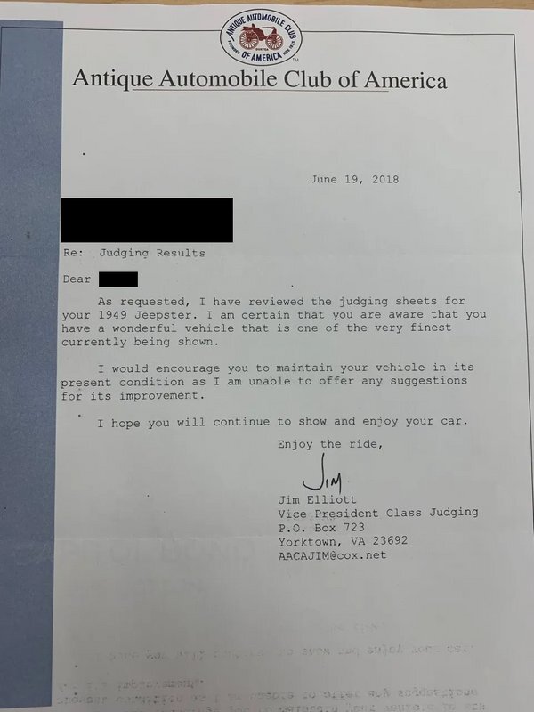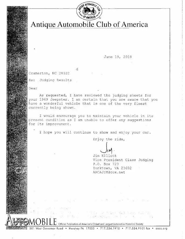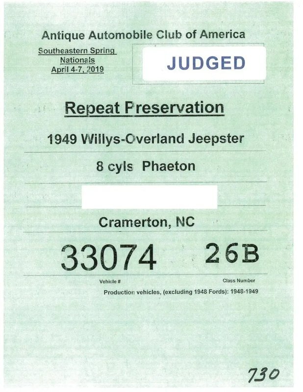 he selling dealer has entered the truck in various Antique Automobile Club of America competitions, and it is reportedly eligible for a Senior Grand National award at the next AACA Grand National. Past highlights include the following: