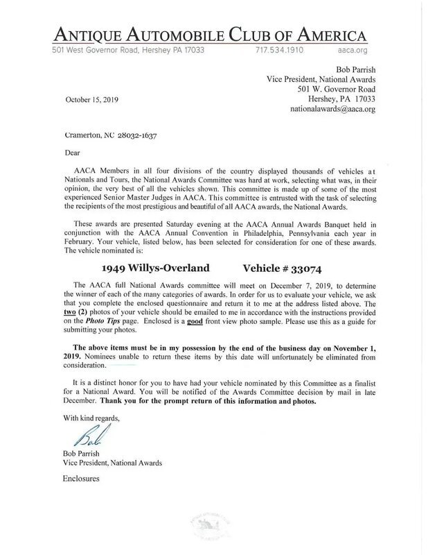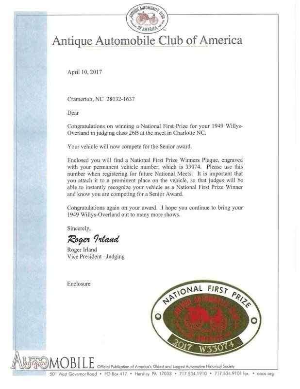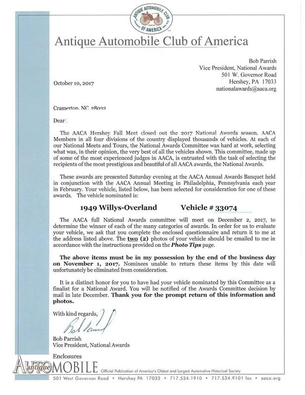 AACA National First Place Senior Award in June 2017