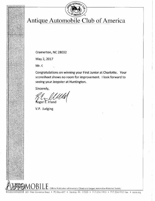 AACA First Junior Award in April 2017