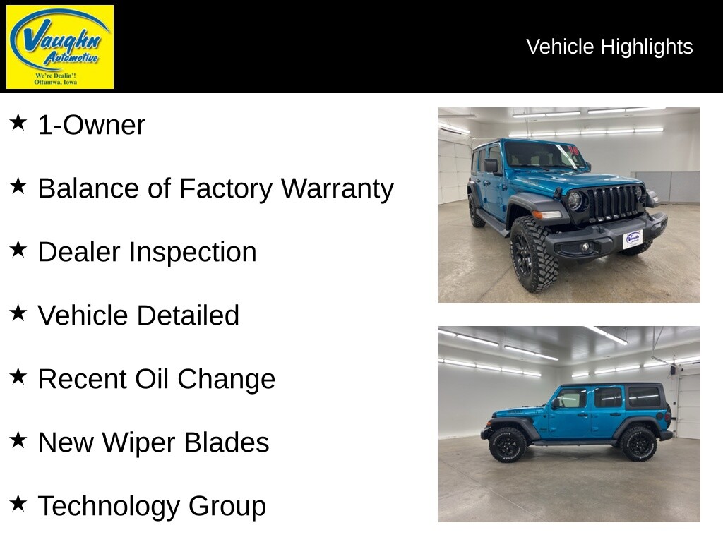 New Price! 1-Owner, Balance of Factory Warranty, Dealer Inspection, Vehicle Detailed, Recent Oil Change, New Wiper Blades, 8-Speed Automatic, 4WD, Black w/Cloth Low-Back Bucket Seats or Leather Seats w/Cloth Inserts, 7 & 4 Pin Wiring Harness, 7.0 Touchscreen Display, 8 Speakers, Air Conditioning w/Auto Temperature Control, Air Filtering, Apple CarPlay, Auxiliary Switches, Black 3-Piece Hard Top, Class II Receiver Hitch, Cloth Low-Back Bucket Seats, Cluster 7.0 TFT Color Display, Cold Weather Group, Electronic Stability Control, Freedom Panel Storage Bag, Front fog lights, Google Android Auto, GPS Antenna Input, Heated Front Seats, Heated Steering Wheel, Integrated Center Stack Radio, Integrated Voice Command w/Bluetooth, No Soft Top, ParkView Rear Back-Up Camera, Radio: Uconnect 4 w/7 Display, Rear Window Defroster, Rear Window Wiper/Washer, SiriusXM Satellite Radio, Steering wheel mounted audio controls, Stop-Start Dual Battery System, Technology Group, Traction control, Trailer Tow & HD Electrical Group, USB Host Flip. 3.6L V6 24V VVT Bikini Pearlcoat 2020 Jeep Wrangler Unlimited Willys Odometer is 13778 miles below market average!