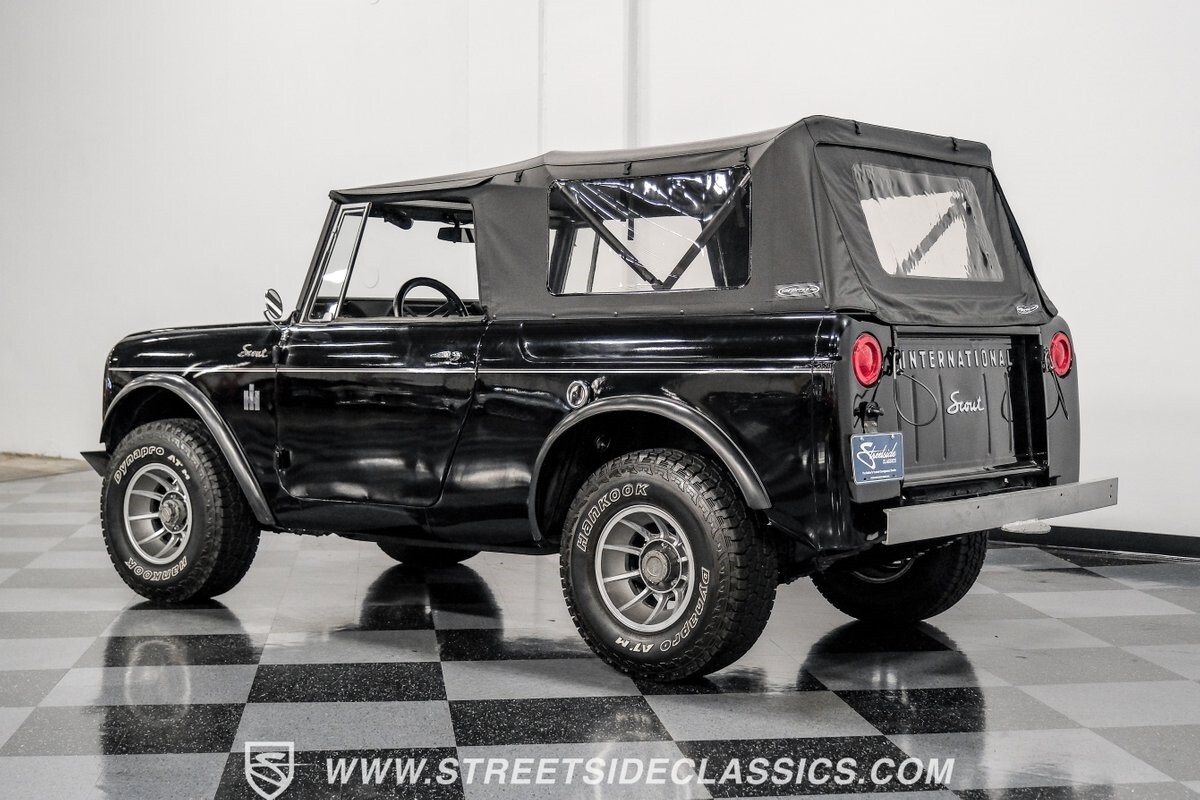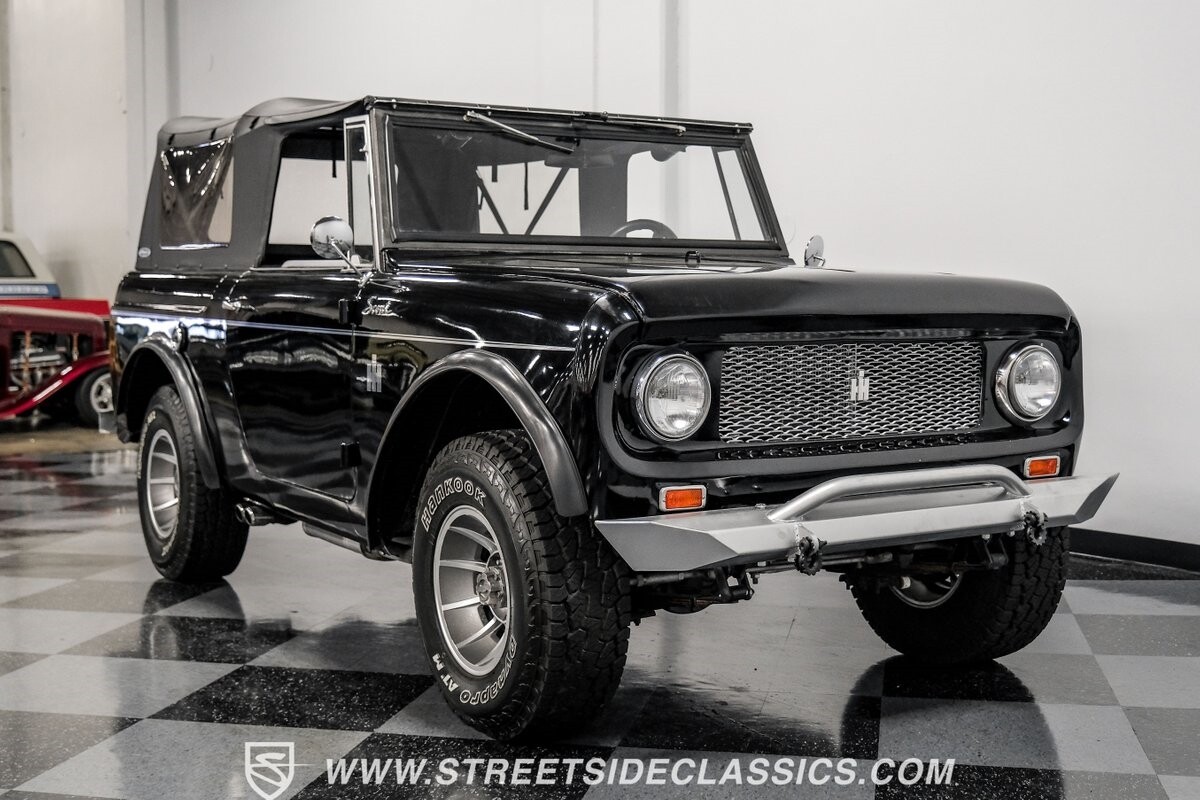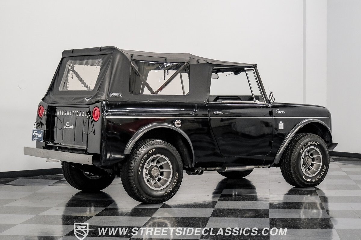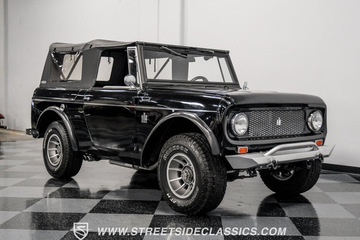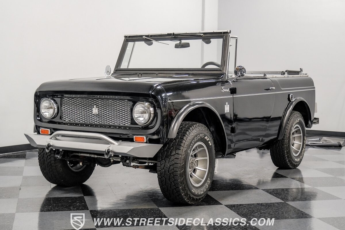 Venturing into the wild, this 1963 International Scout 80 4X4 stands as a monument to American adventure and off-road exploration. Cloaked in imposing black paint, its body is a testament to rugged beauty and functional design. The Hankook Dynapro AT2 tires, sized at 31X10.50R15, are ready to tackle any terrain, mounted on Billet Specialties rims that blend durability with a touch of elegance. In a very desirable level of style choices that we don't usually see, you have a few options... The newer soft top can cover you and your cargo or friends on the rear bench seats while the hardtop gives you a cool short bed pickup profile. But probably the way most people will love this truck is as a full convertible with no roof at all. Your choice!