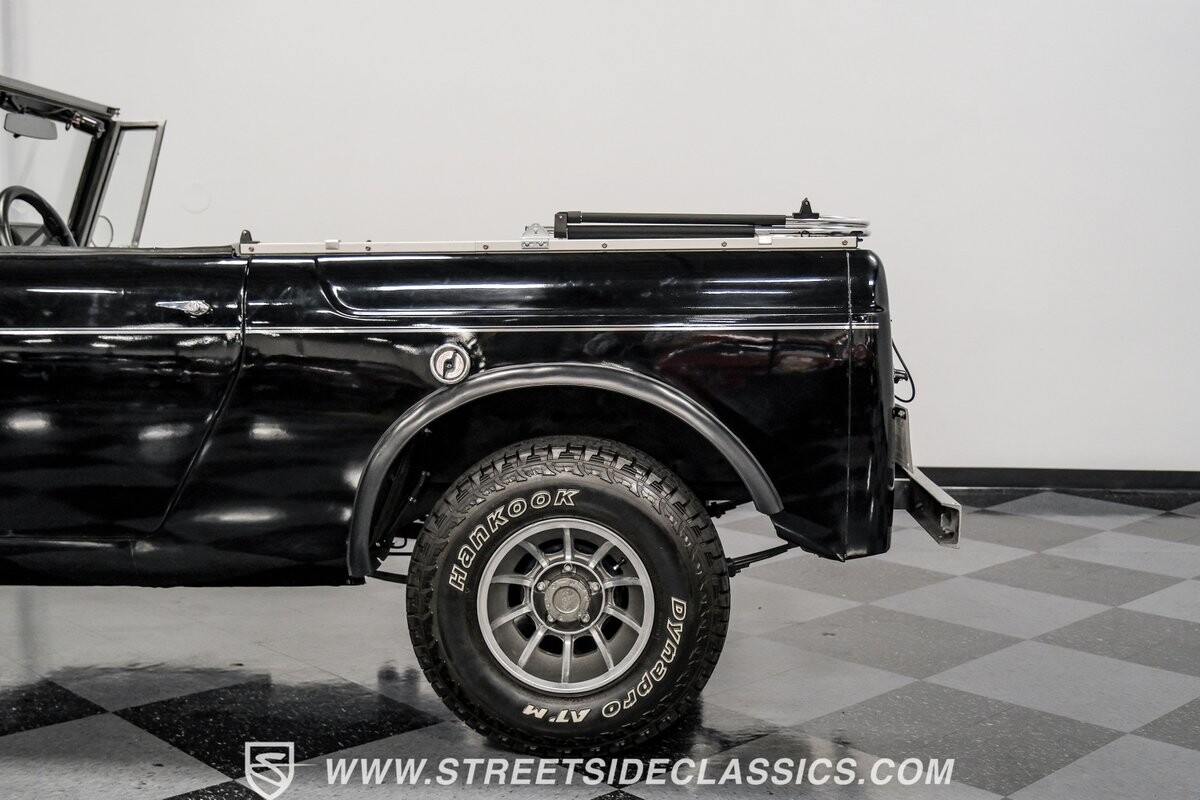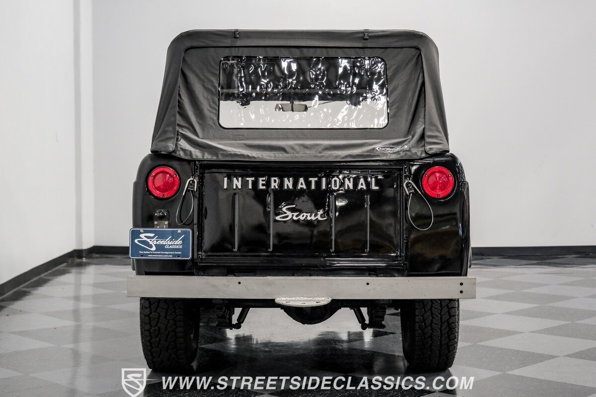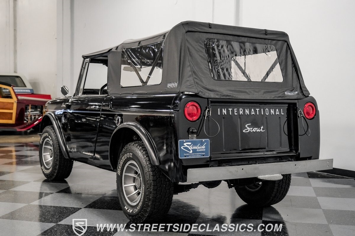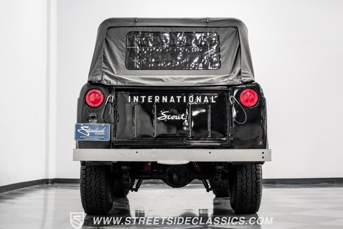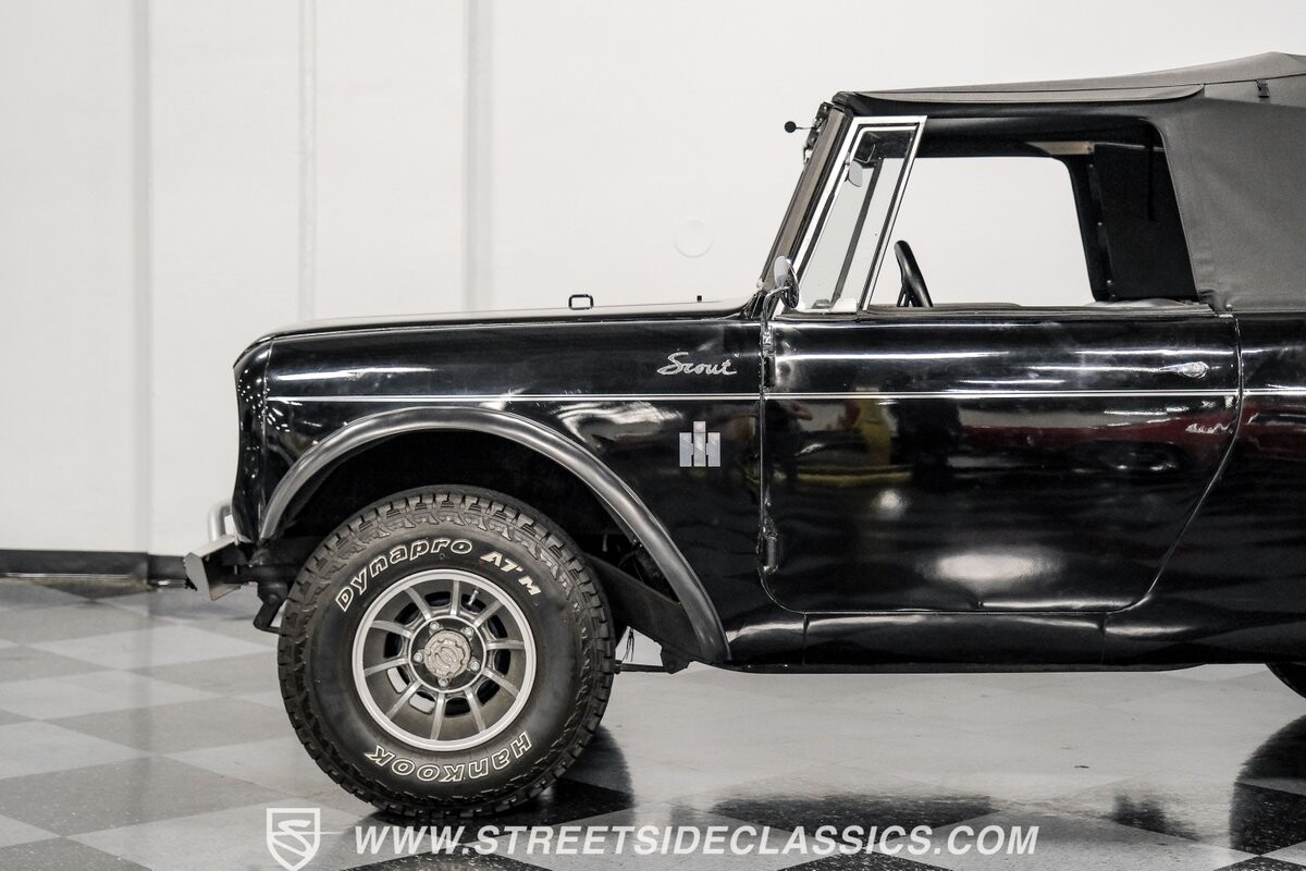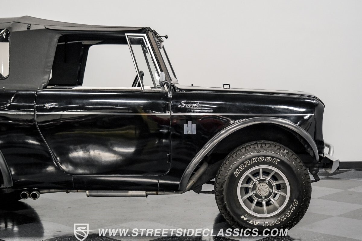 Venturing into the wild, this 1963 International Scout 80 4X4 stands as a monument to American adventure and off-road exploration. Cloaked in imposing black paint, its body is a testament to rugged beauty and functional design. The Hankook Dynapro AT2 tires, sized at 31X10.50R15, are ready to tackle any terrain, mounted on Billet Specialties rims that blend durability with a touch of elegance. In a very desirable level of style choices that we don't usually see, you have a few options... The newer soft top can cover you and your cargo or friends on the rear bench seats while the hardtop gives you a cool short bed pickup profile. But probably the way most people will love this truck is as a full convertible with no roof at all. Your choice!