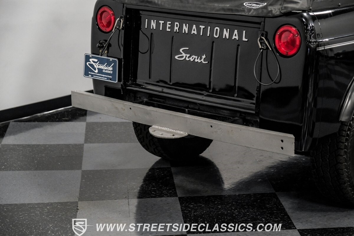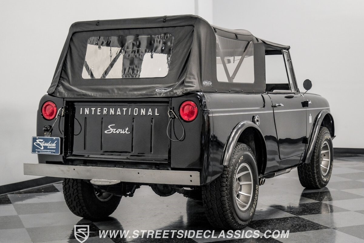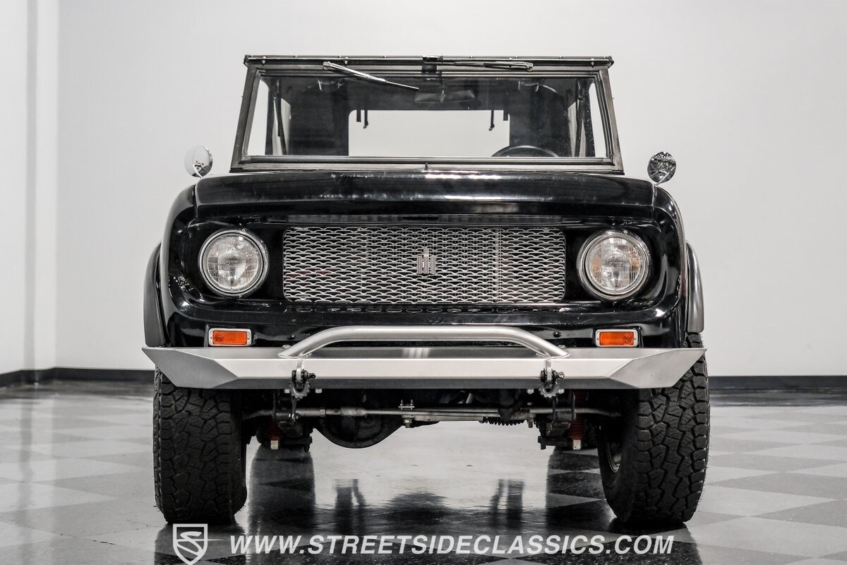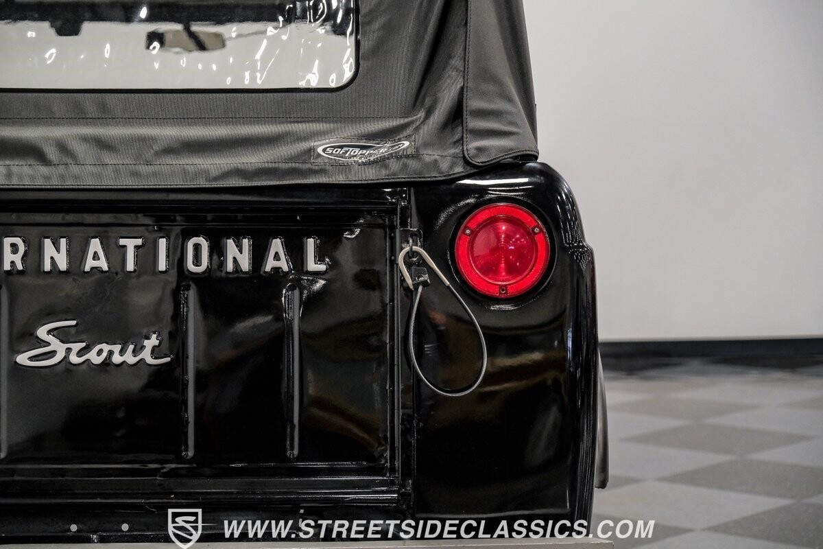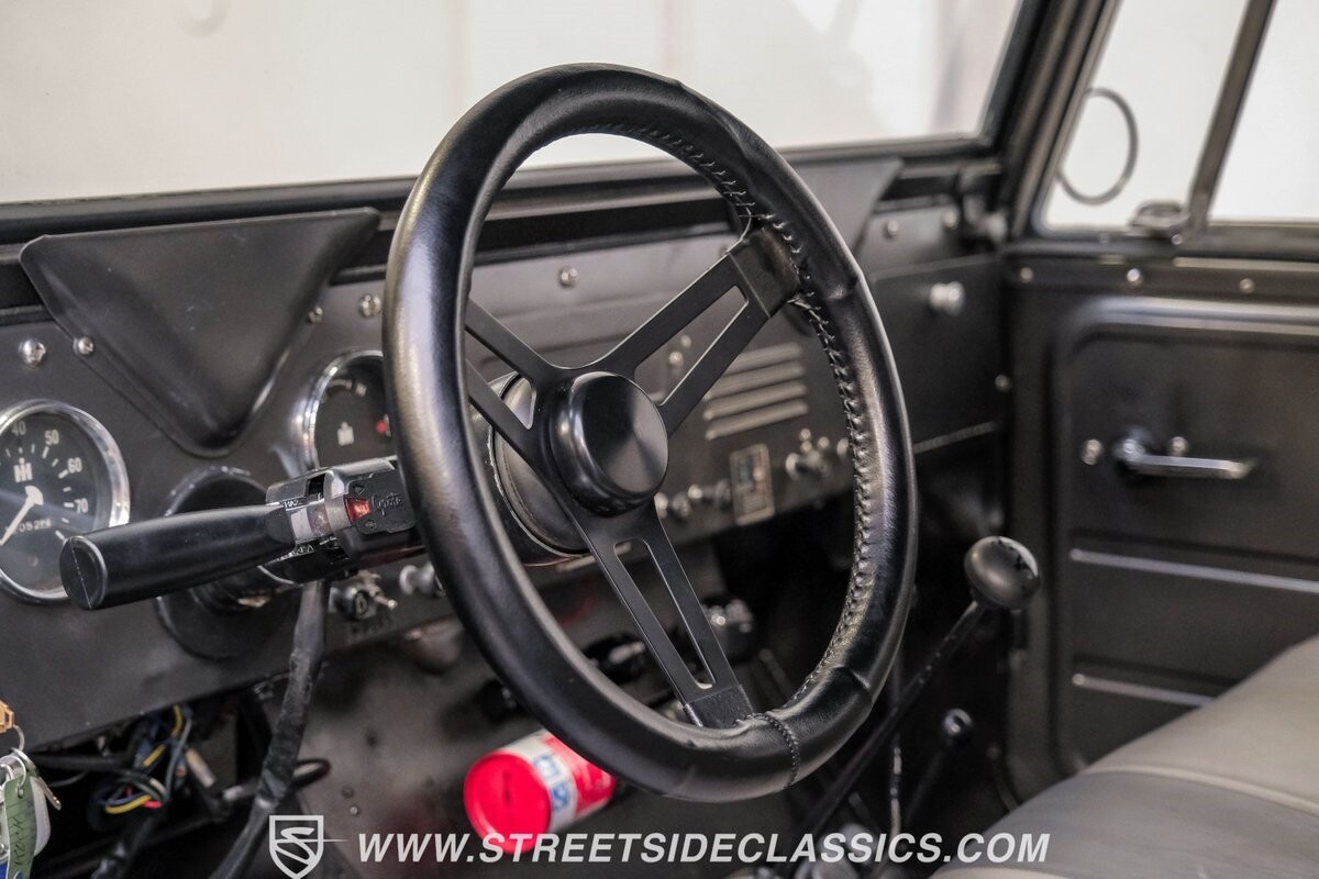 Venturing into the wild, this 1963 International Scout 80 4X4 stands as a monument to American adventure and off-road exploration. Cloaked in imposing black paint, its body is a testament to rugged beauty and functional design. The Hankook Dynapro AT2 tires, sized at 31X10.50R15, are ready to tackle any terrain, mounted on Billet Specialties rims that blend durability with a touch of elegance. In a very desirable level of style choices that we don't usually see, you have a few options... The newer soft top can cover you and your cargo or friends on the rear bench seats while the hardtop gives you a cool short bed pickup profile. But probably the way most people will love this truck is as a full convertible with no roof at all. Your choice!