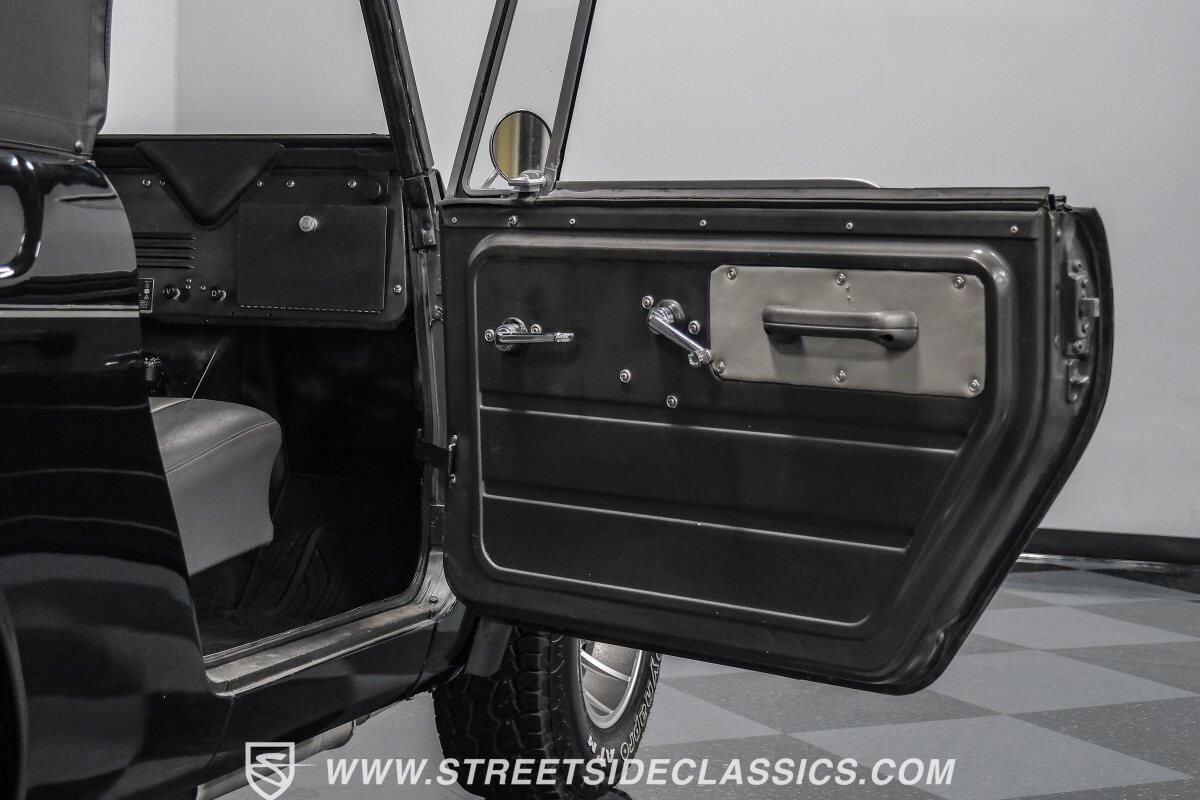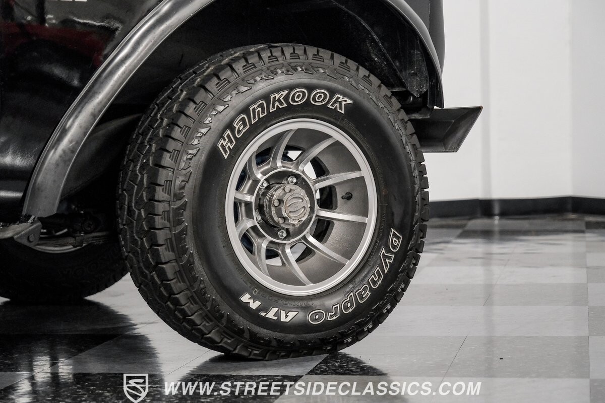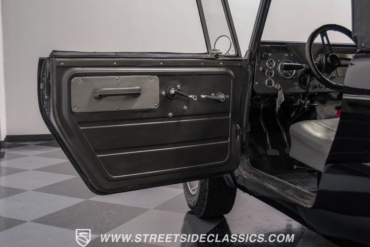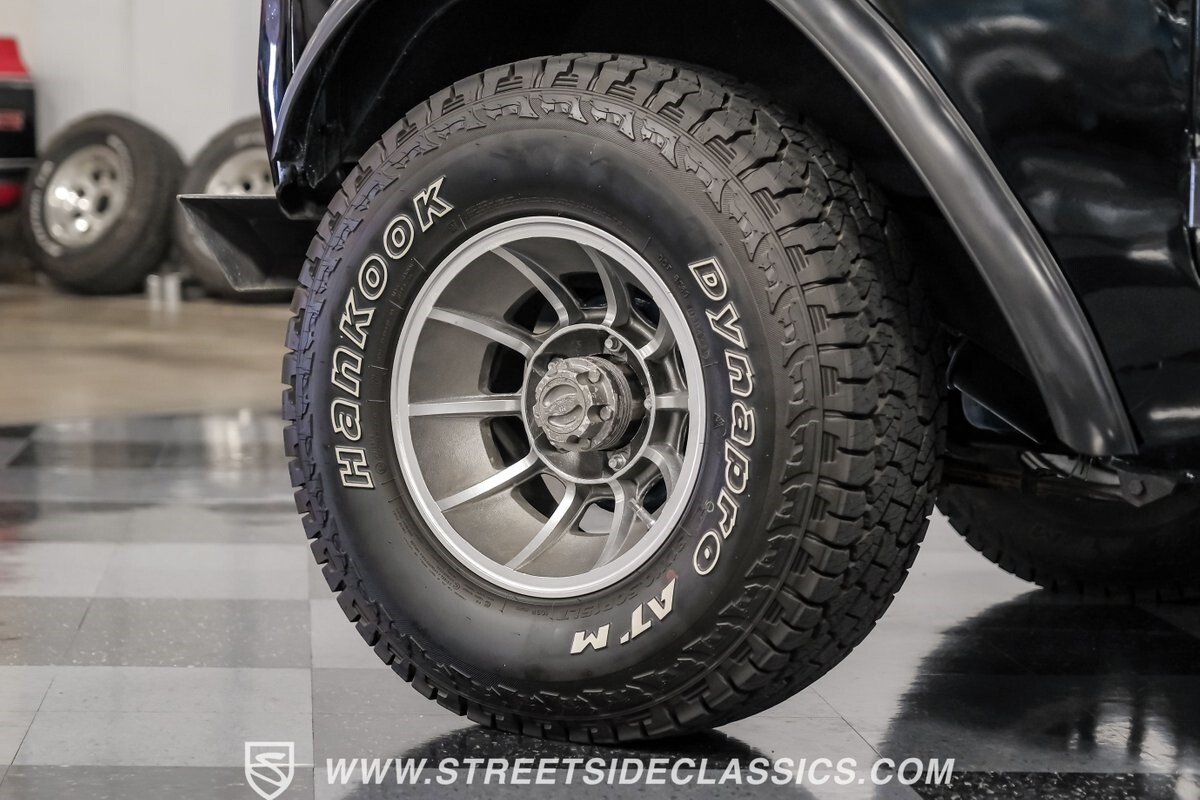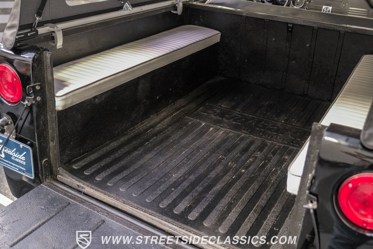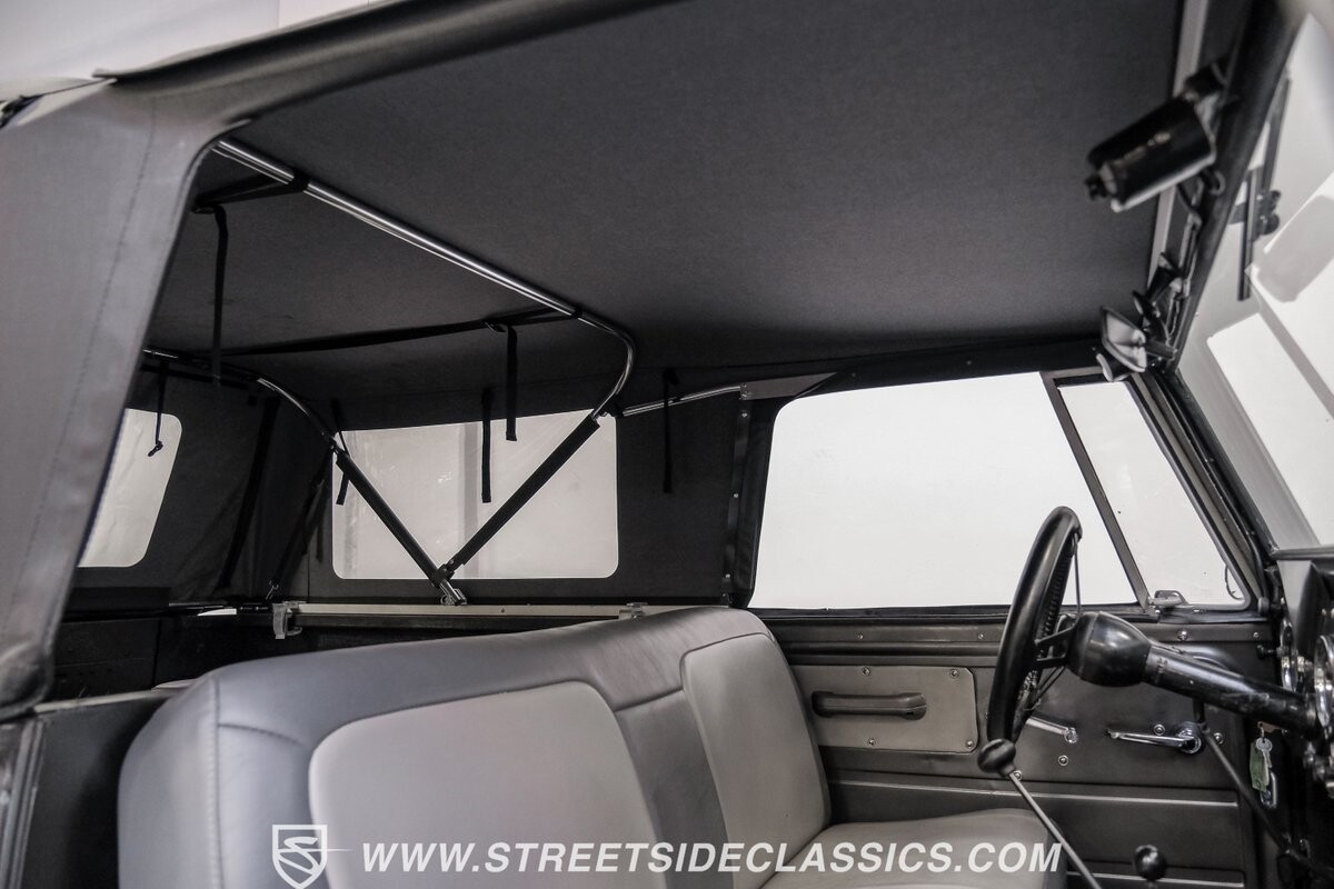Venturing into the wild, this 1963 International Scout 80 4X4 stands as a monument to American adventure and off-road exploration. Cloaked in imposing black paint, its body is a testament to rugged beauty and functional design. The Hankook Dynapro AT2 tires, sized at 31X10.50R15, are ready to tackle any terrain, mounted on Billet Specialties rims that blend durability with a touch of elegance. In a very desirable level of style choices that we don't usually see, you have a few options... The newer soft top can cover you and your cargo or friends on the rear bench seats while the hardtop gives you a cool short bed pickup profile. But probably the way most people will love this truck is as a full convertible with no roof at all. Your choice!