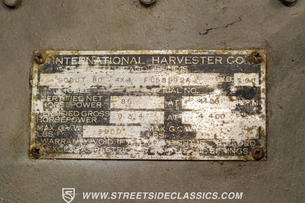 This Scout is powered by a 152 CI 4-cylinder engine, perfectly paired with a 3-speed manual transmission to tackle any terrain with confidence, complemented by sturdy Dana 30 axles for durability. Enhancements include new brake system with new parking brake cable, fresh motor mounts, new radiator and an updated fuel sending unit, ensuring peak performance; a rebuilt steering column along with a rebuilt transmission and clutch. And finally, all-new fluids and a new battery have all prepared this Scout for endless adventures ahead.
