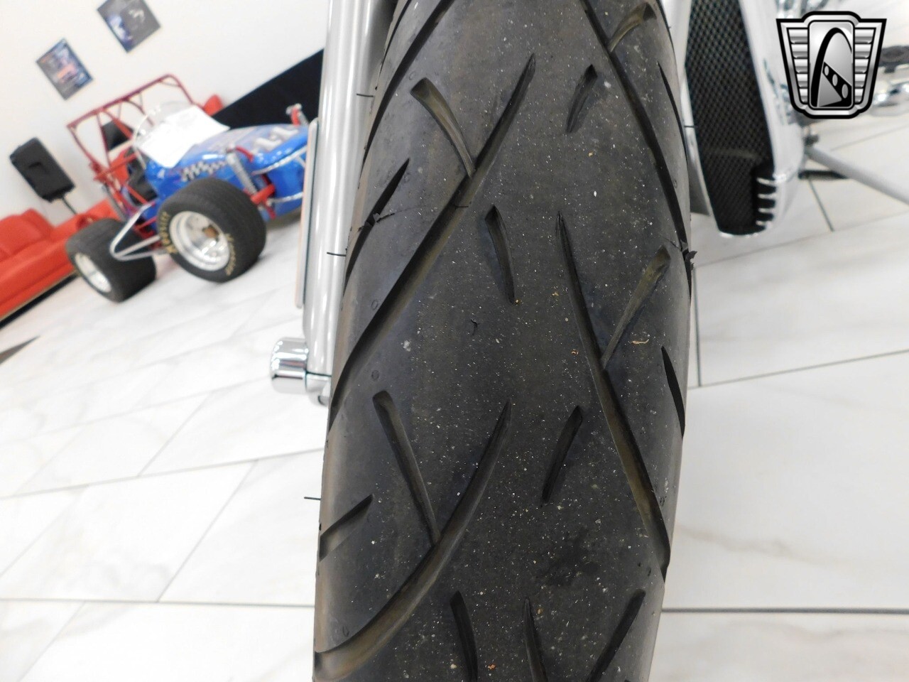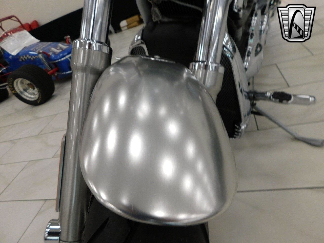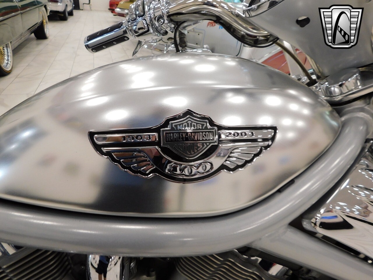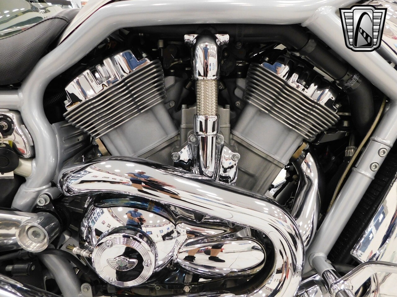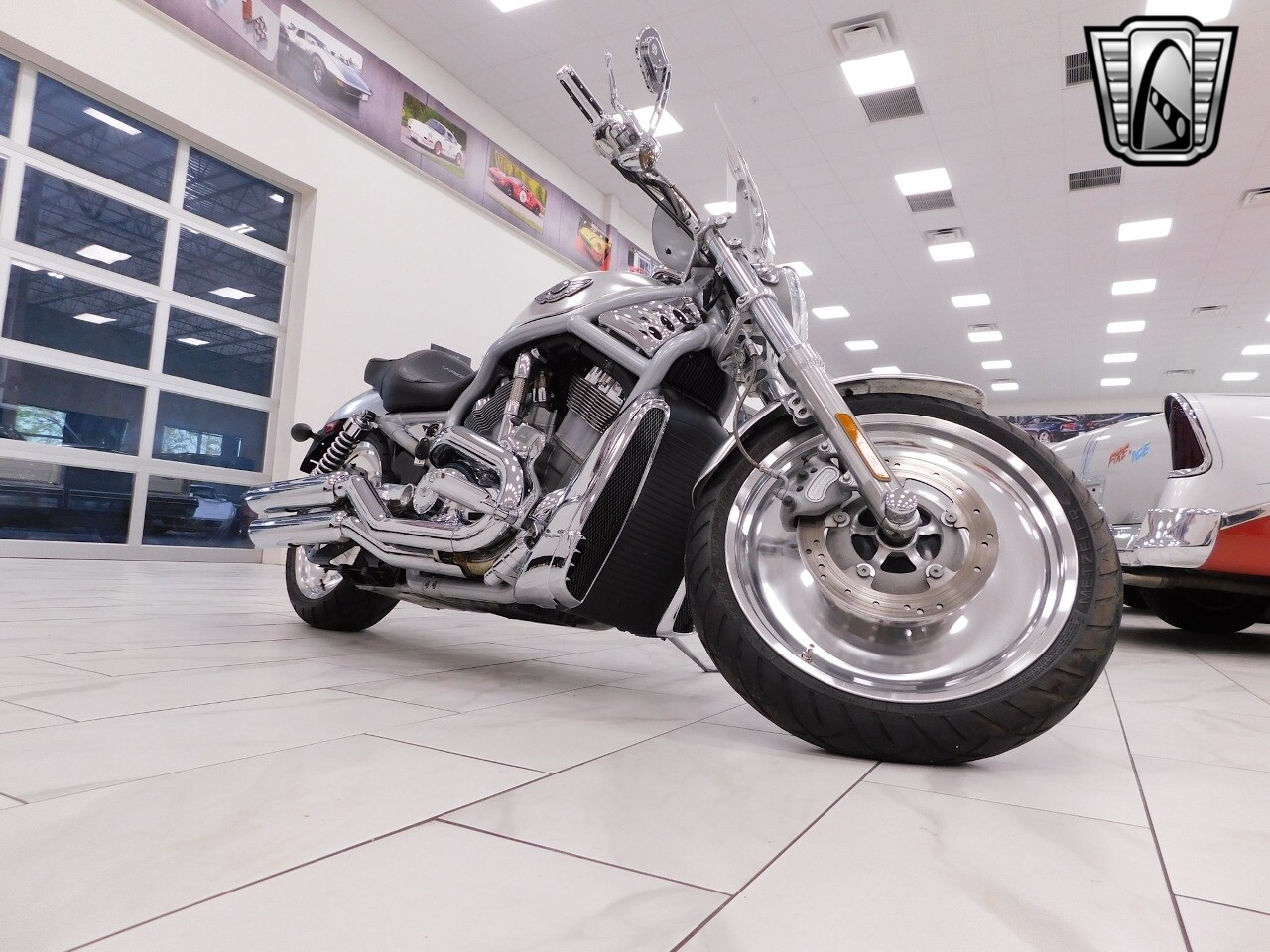 Gateway Classic Cars of Tampa is proud to offer this sharp 100th Anniversary Edition 2003 Harley Davidson VRSCA V-Rod. The V-Rod changed the power-cruiser category, offering an award-winning marriage of custom styling and liquid-cooled performance. Raked with a 38-degree fork angle, forward controls and pull back welded handlebars, drag-style aluminum disc wheels and chrome slash-cut exhaust, the V-Rod is one unmistakable motorcycle. Dual slash-cut chrome exhaust pipes deliver the wound-out song of a high-performance revolution V-Twin. Triple-disc, four-piston Brembo brakes are new for 2003. A security system is standard. Powering this jaw dropping bike is the Porsche designed, Liquid-cooled, 1130cc Revolution V-Twin engine that produced an impressive 115 hp at 8500 rpm. Finished in a stunning (100th Anniversary Edition only) anodized silver and contrasted with chrome throughout, this is one sleek looking Harley. [ omitted ]. [ omitted ]. Our Tampa Showroom is located at 361 30th Street NE Ruskin, FL 33570. [ omitted ].