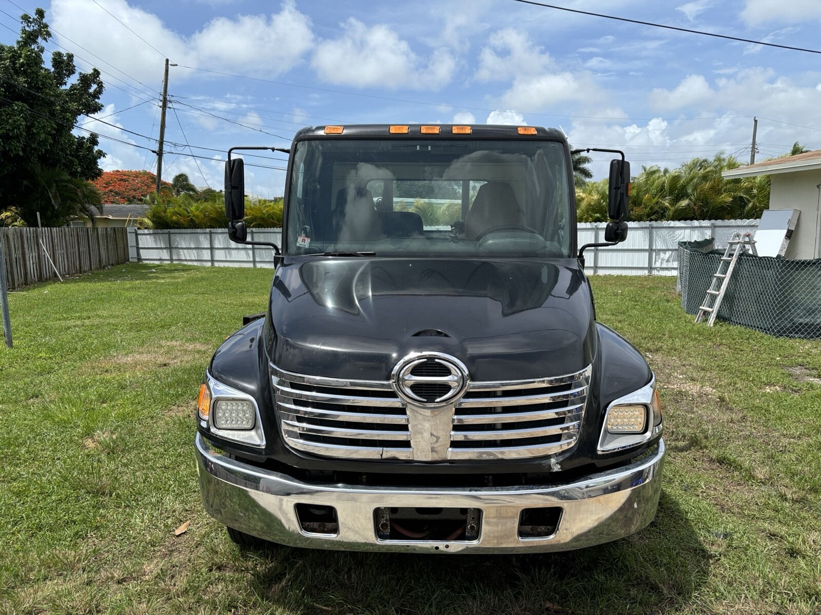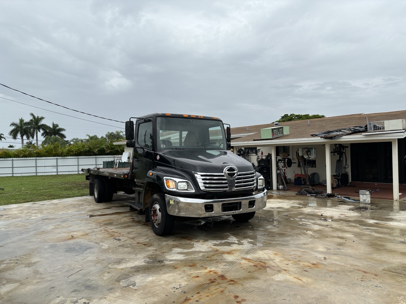 Hino crane Hino engine 6 cylinder automatic trans both work perfectly bed 21 feet rear wheel lift everything working as is you don't need CDL it's fluid brake and under 26000 pounds. Title in hand