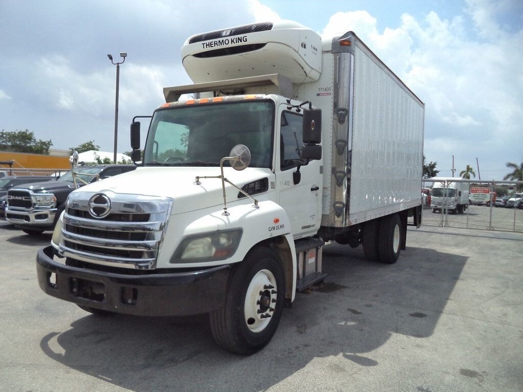 2015 HINO 268A 20FT REFRIGERATED BOX TRUCK. THERMO KING T680 201578 Miles White