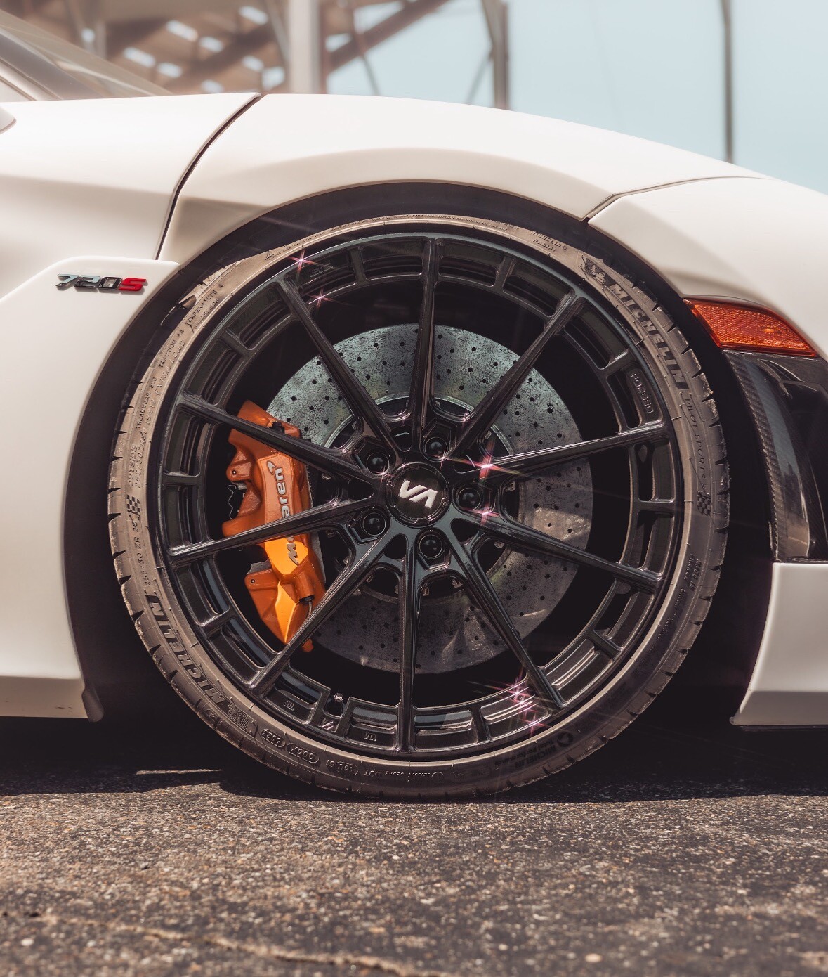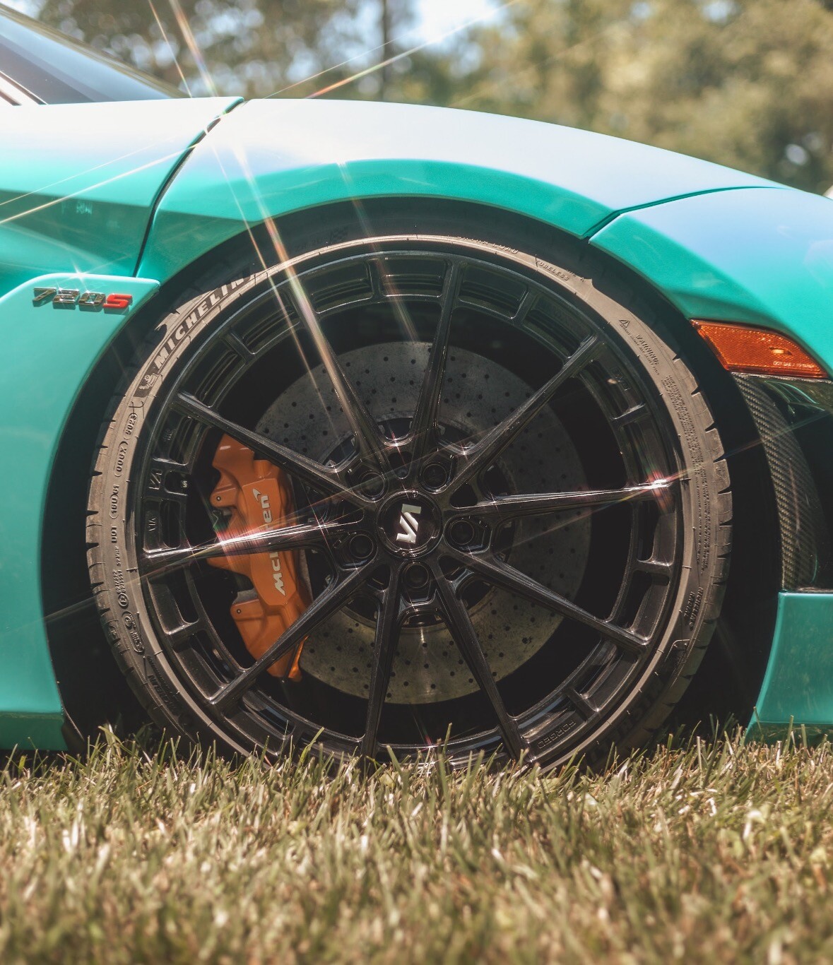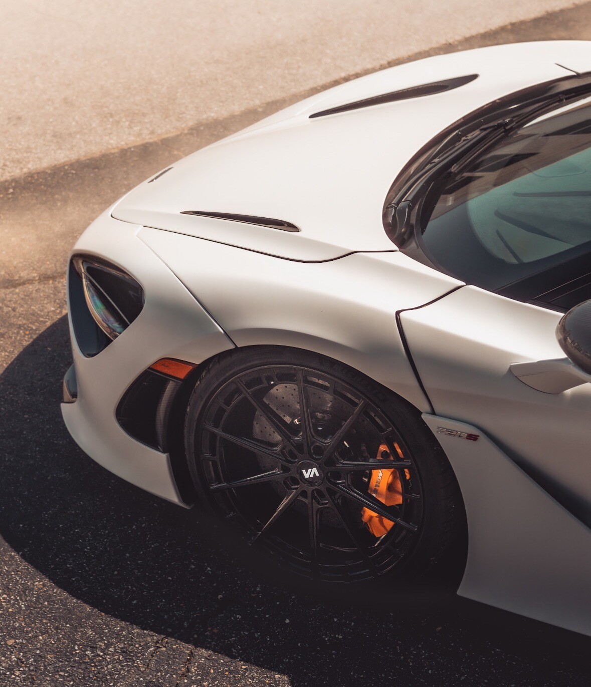 On the exterior, the McLaren 720S Performance is finished in a sleek White paint color, adding a touch of elegance to its already striking appearance. Additionally, this vehicle comes equipped with Variant Forged wheels, Velocity AP springs, Spool Performance turbo inlets, Inozetek Caribbean Sea Wrap, and Gyeon Ceramic Coat, further enhancing its performance and visual appeal.