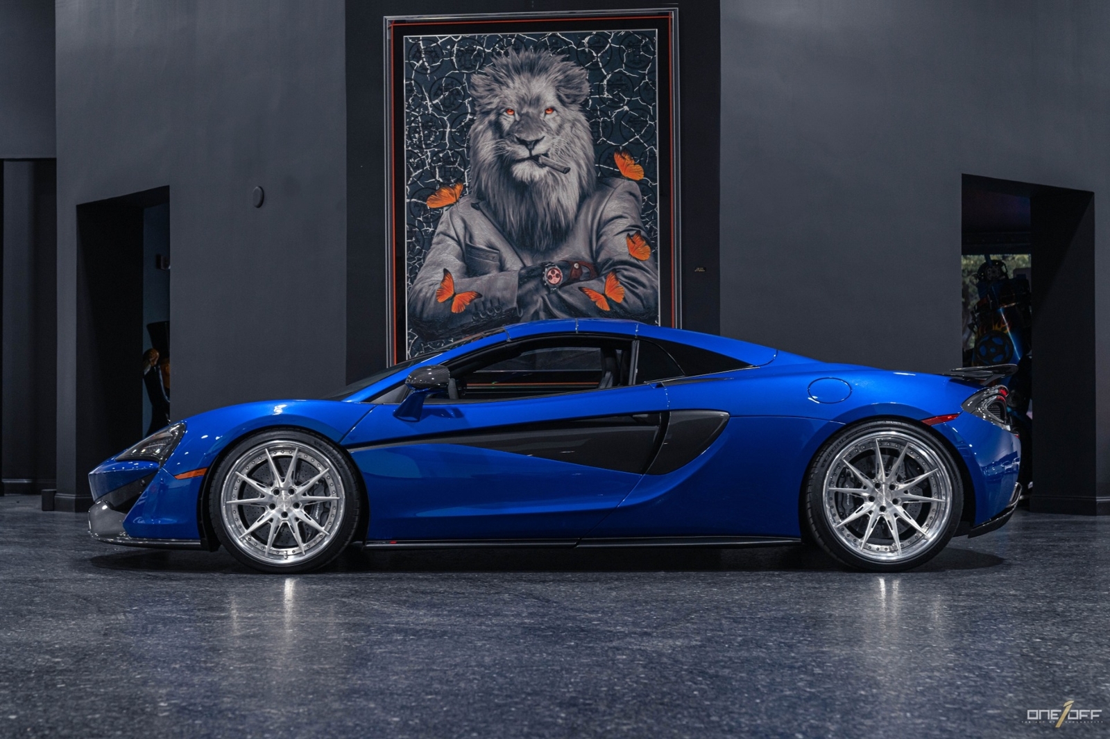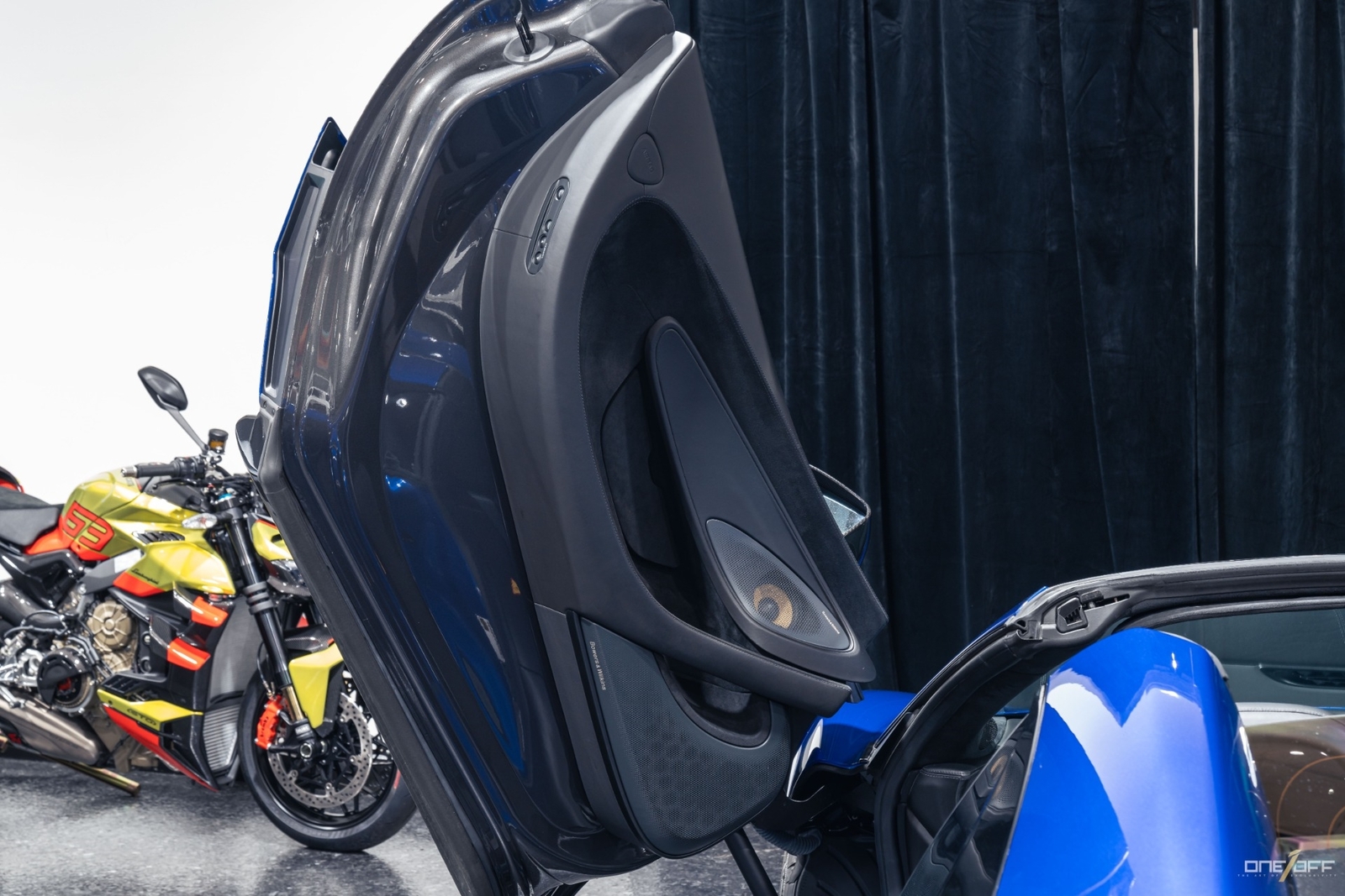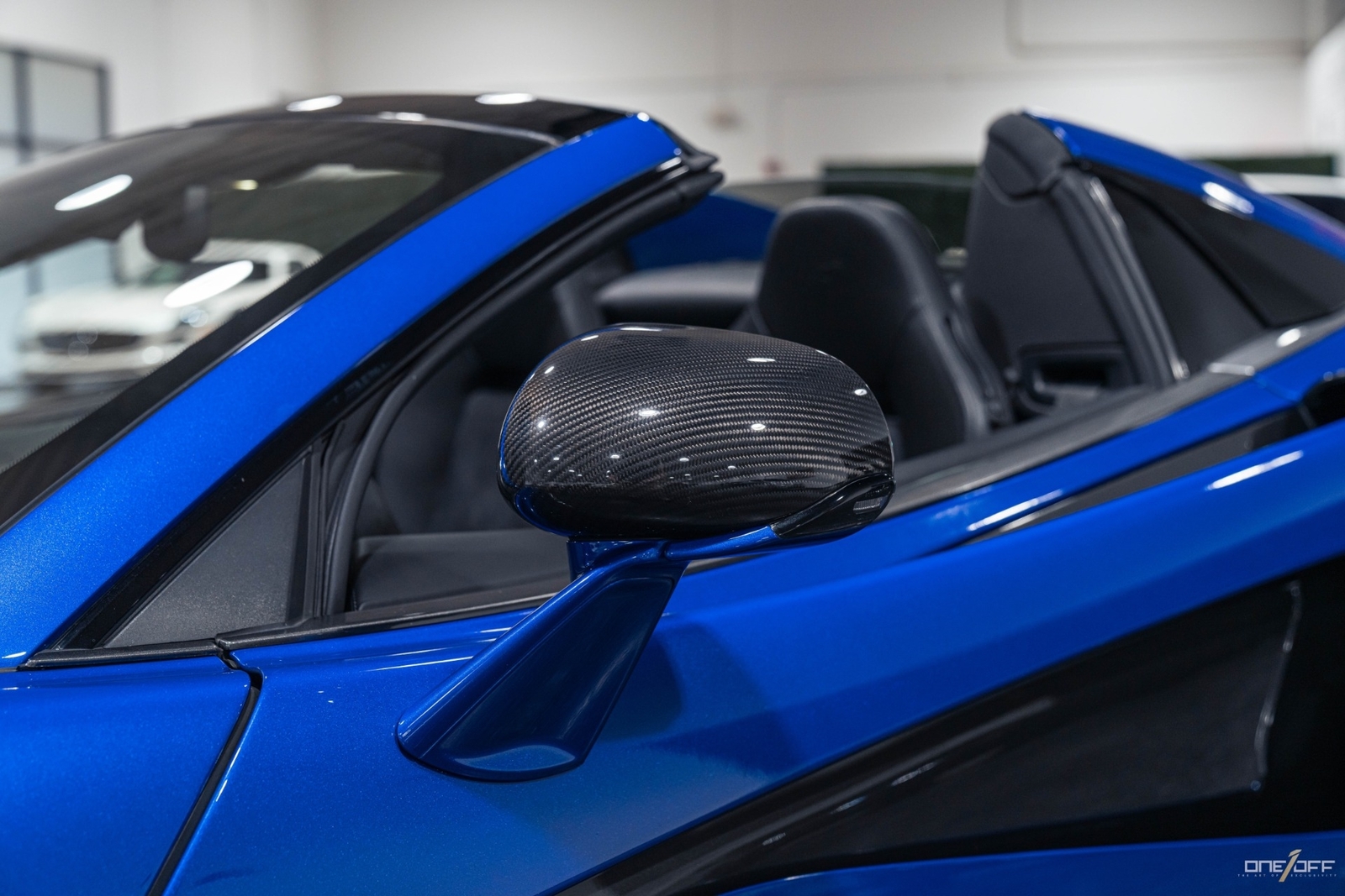 If anyone ever tells you that blue doesn't work on a Mclaren, show them this. This MSO Burton Blue '18 570S Spider is a gift from the spec-gods. The brushed AG Luxury Forged Wheels are the icing on the cake, the absolute perfect wheel to compliment the MSO blue paint. The extremely rare MSO titanium supersports exhaust, must-have luxury pack, front lift system, switch pack in carbon, and a Nappa sport Alcantara interior were all commissioned onto this spec at the factory. Don't let this legendary 570S Spider slip away.