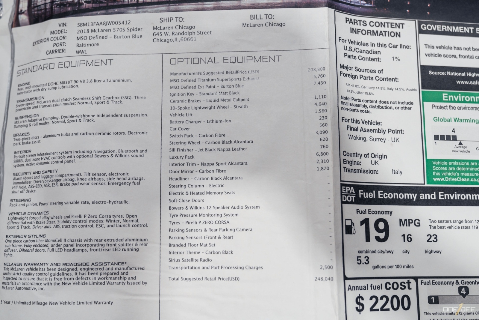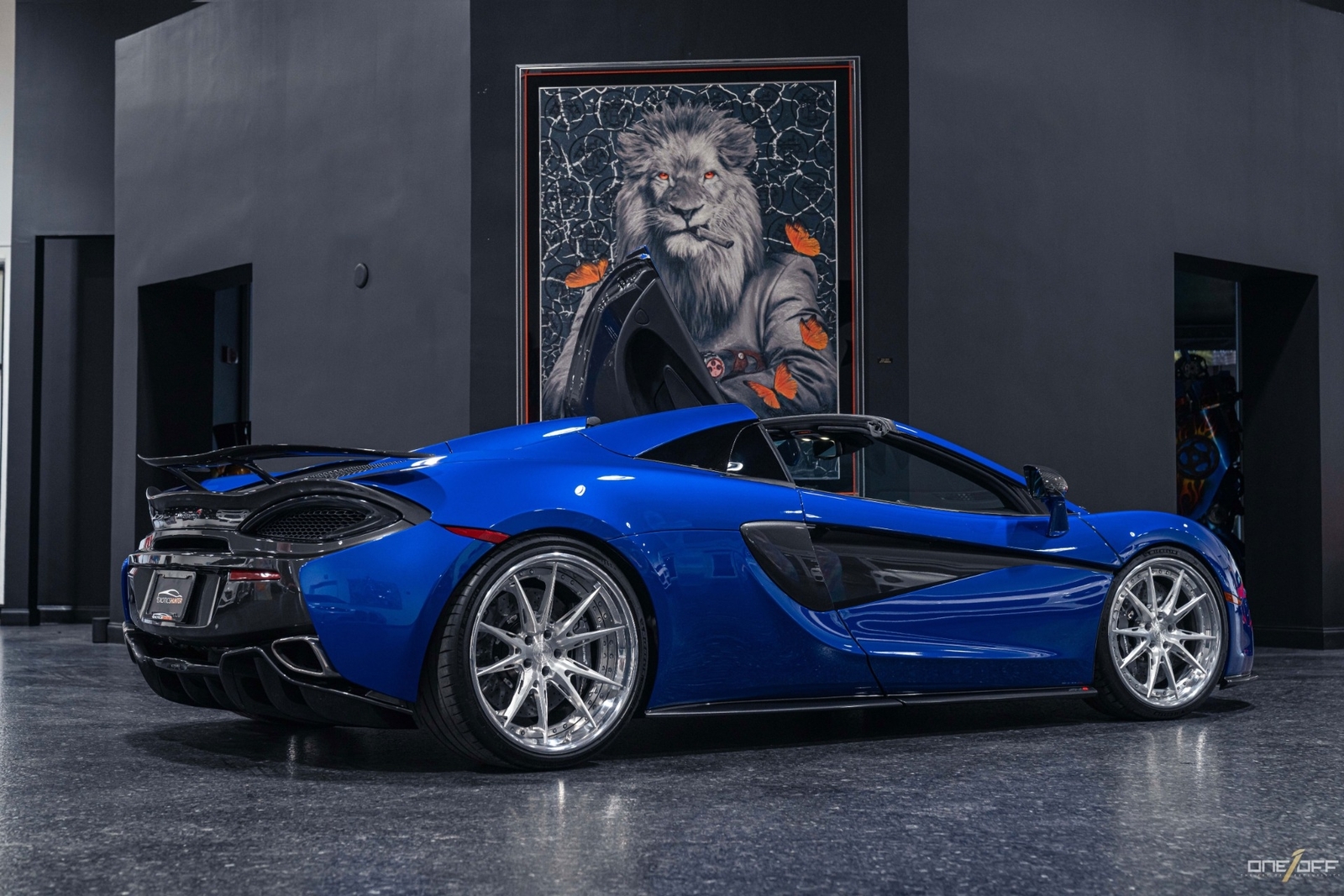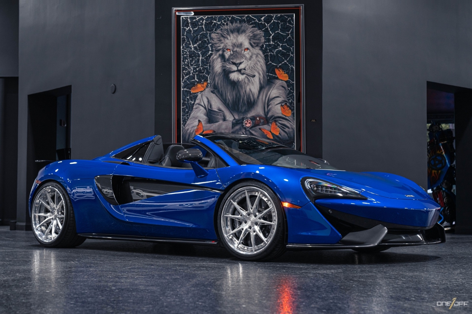 If anyone ever tells you that blue doesn't work on a Mclaren, show them this. This MSO Burton Blue '18 570S Spider is a gift from the spec-gods. The brushed AG Luxury Forged Wheels are the icing on the cake, the absolute perfect wheel to compliment the MSO blue paint. The extremely rare MSO titanium supersports exhaust, must-have luxury pack, front lift system, switch pack in carbon, and a Nappa sport Alcantara interior were all commissioned onto this spec at the factory. Don't let this legendary 570S Spider slip away.