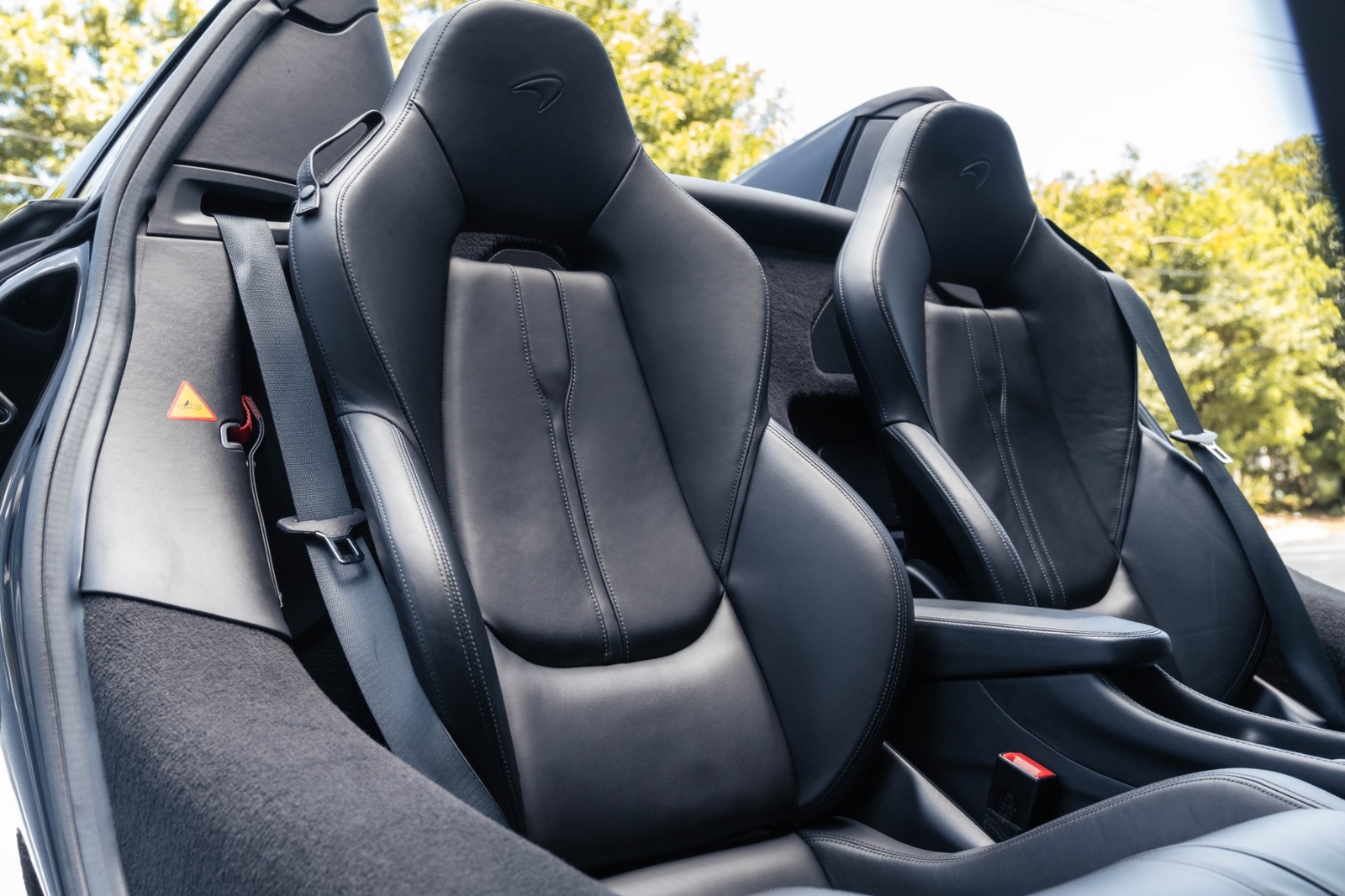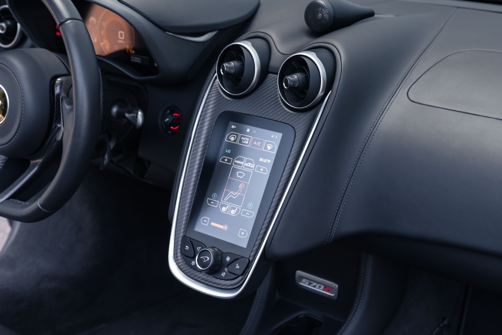 This loaded '20 570S Spider has it all. The MSO Black Pack is an option you don't see every day, and it fits this "Exterior Special" Onyx Black spec perfectly, consisting of all trim being painted metallic black. To liven things up, an aftermarket exhaust system has also been installed, turning the tame factory exhaust note into an exhilarating rumble with prominent turbo spool. Carbon fiber interior components, front lift, Brixton forged wheels, and liquid metal calipers also grace this special order Spider.
