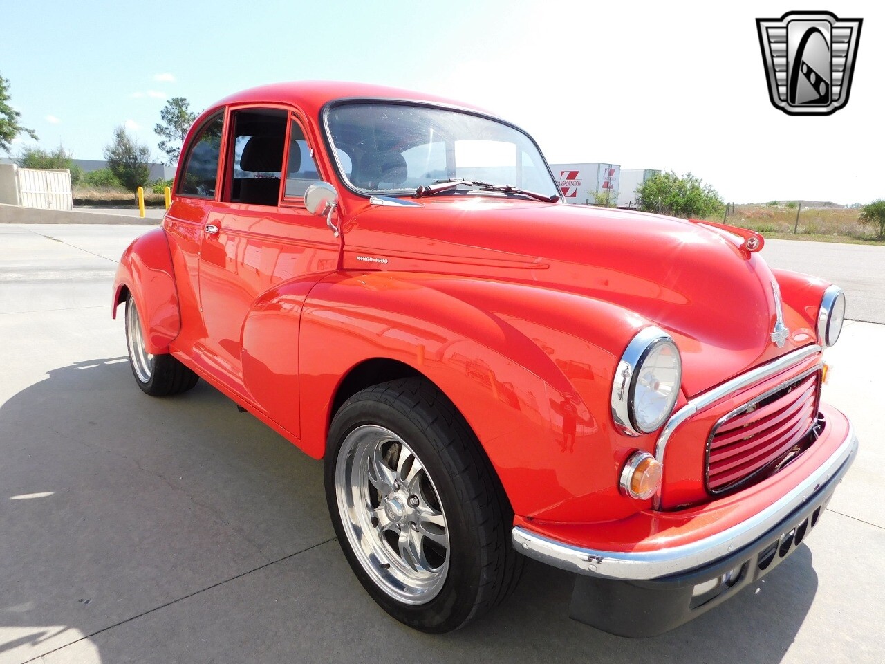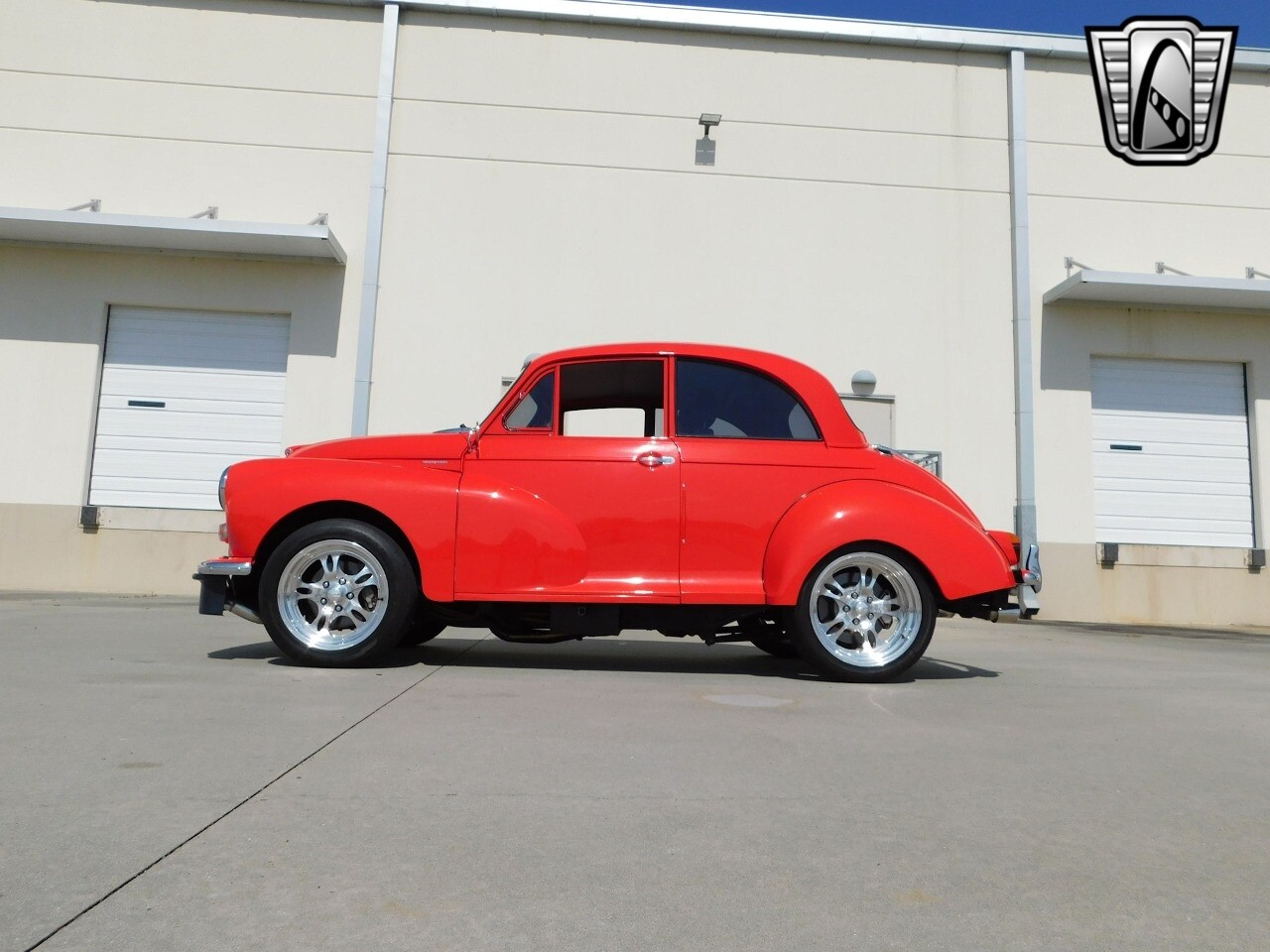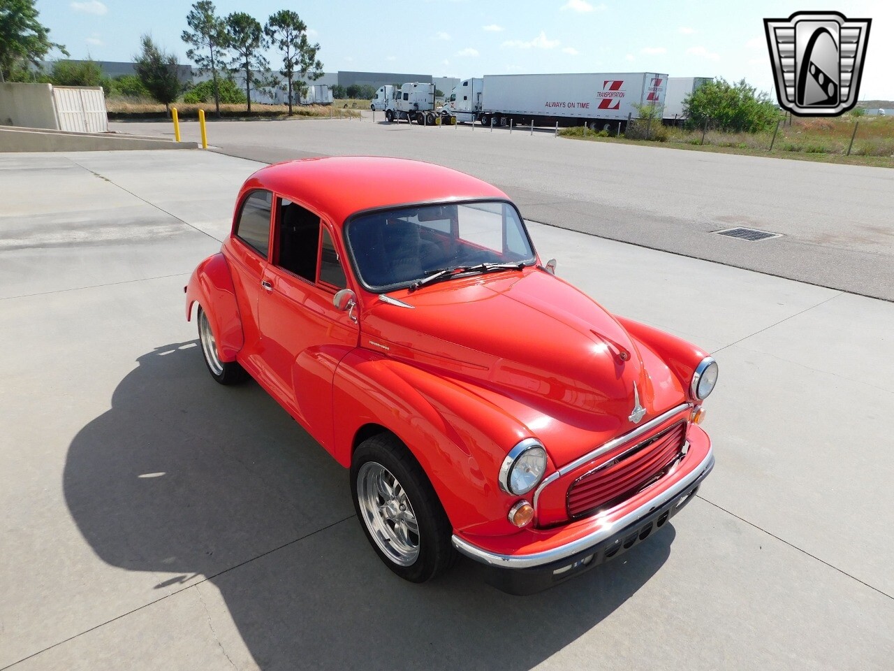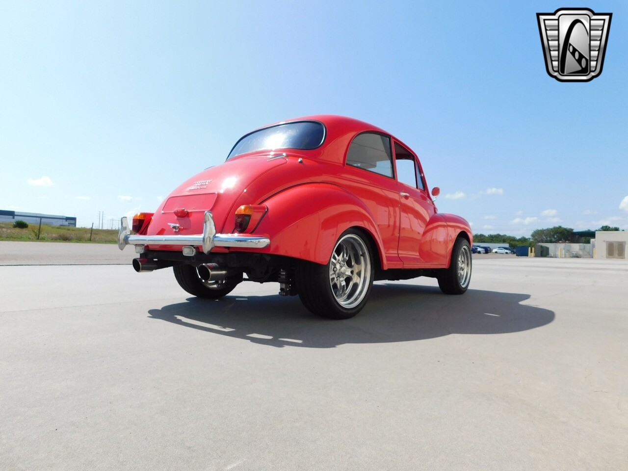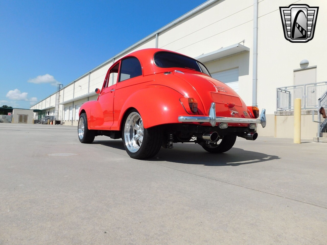 Gateway Classic Cars of Tampa is proud to present this Fast and Furious 1959 Morris Minor 1000! Anyone familiar with British automotive history knows the Morris was a staple of affordable motoring in the UK and it's former colonies. With over 1.5 million sold, the Minor was a sales success thanks to being compact practical and offering good value. No one would imagine a spend thrift's car as a hot rod, but that's what this Morris Minors' owner did. He saw the light compact body and rwd chassis and thought "I bet that'll make a for a fast ride". So he set off to make the Frankenstein monster of Frankenstein monsters! first the itty bitty 948cc 4 banger was tossed in the trash and a tuned, modern Mitsubishi 4G63, turbo engine from a 2008 EVO 8 was stuffed between the fenders. The 400hp hp is harnessed by 5 speed manual from a 3rd Gen RX7, that sends power to a 9" Ford axle with 3.73 gears! Under the body a 85 Datsun 750 mini-truck chassis serves provides the chassis while the suspension was fortified with a Mustang II front end and coil-overs shocks at all four corners. Disk brakes yank this thing to a stop front and rear. Staggered Chip Foose wheels wrapped in sticky rubber keep this Turbo powered go-kart sunny side up, and cold AC, racing seats, and power windows ensure you're safe and comfy during the ride. This 1959 Morris is a riot! You definitely won't see yourself coming or going with this ride. Make this red rocket yours today!.
