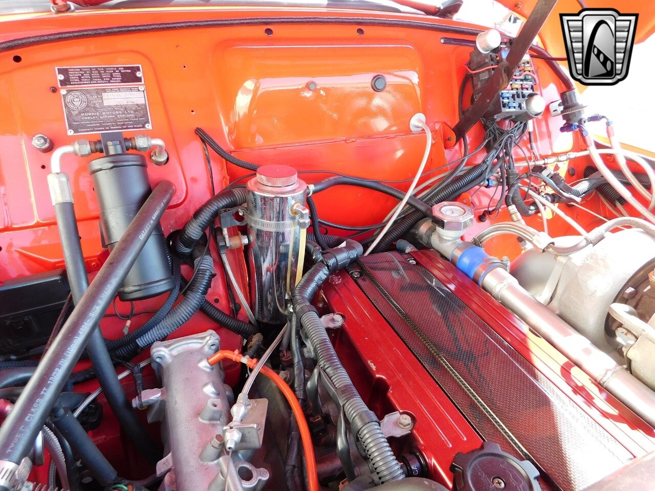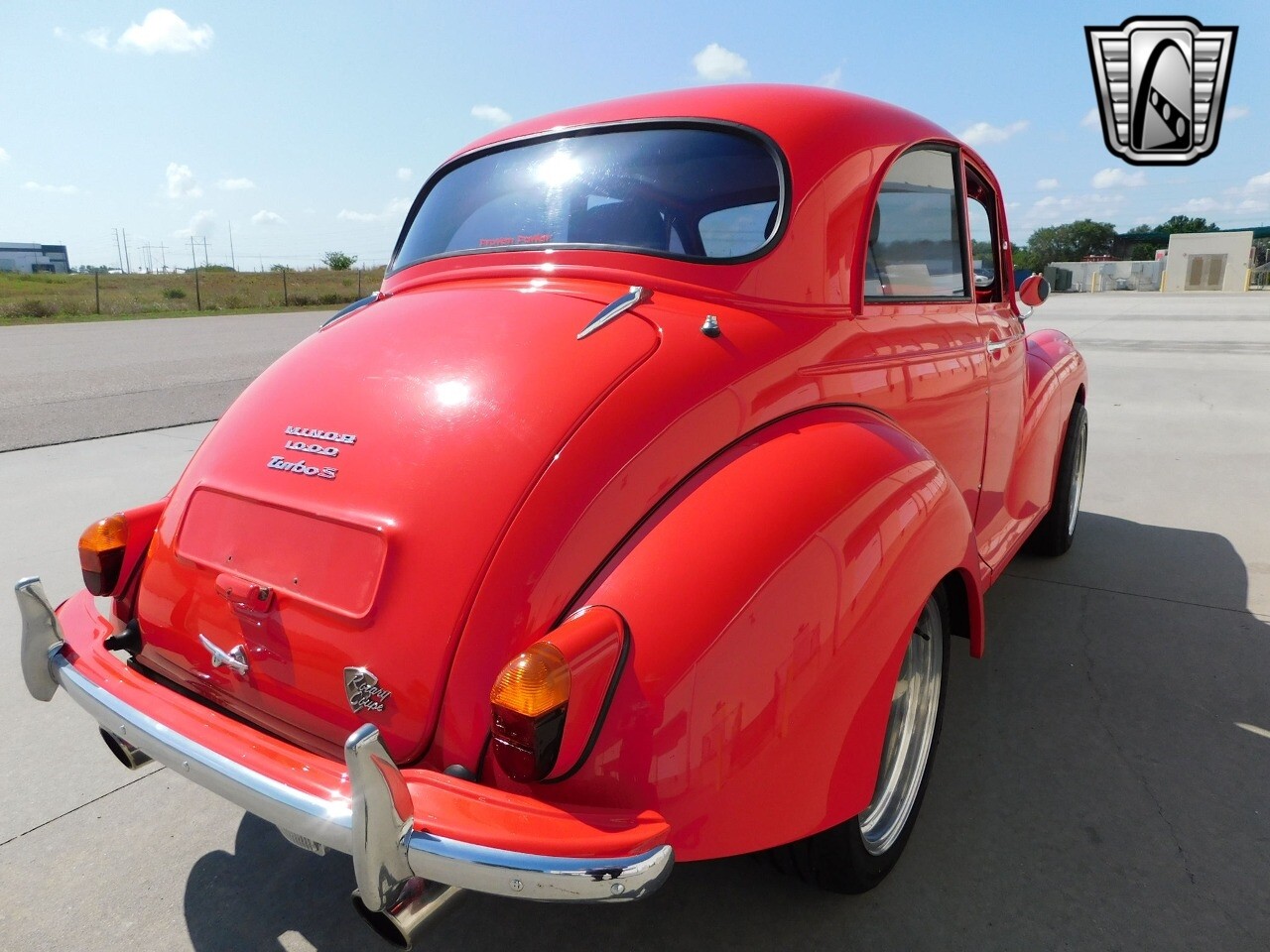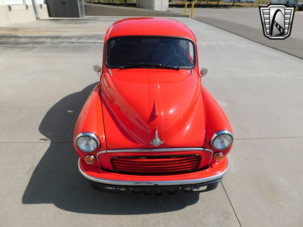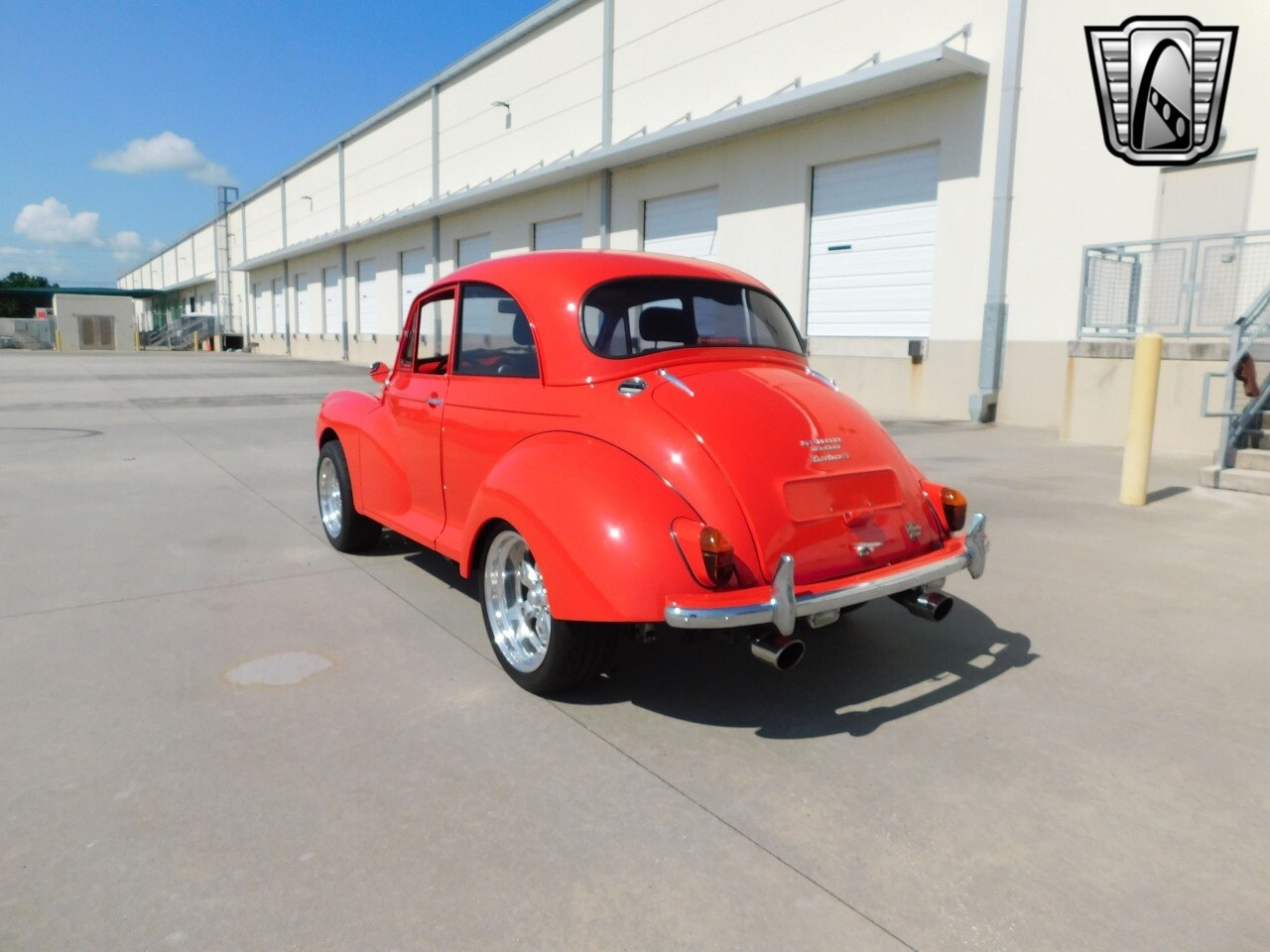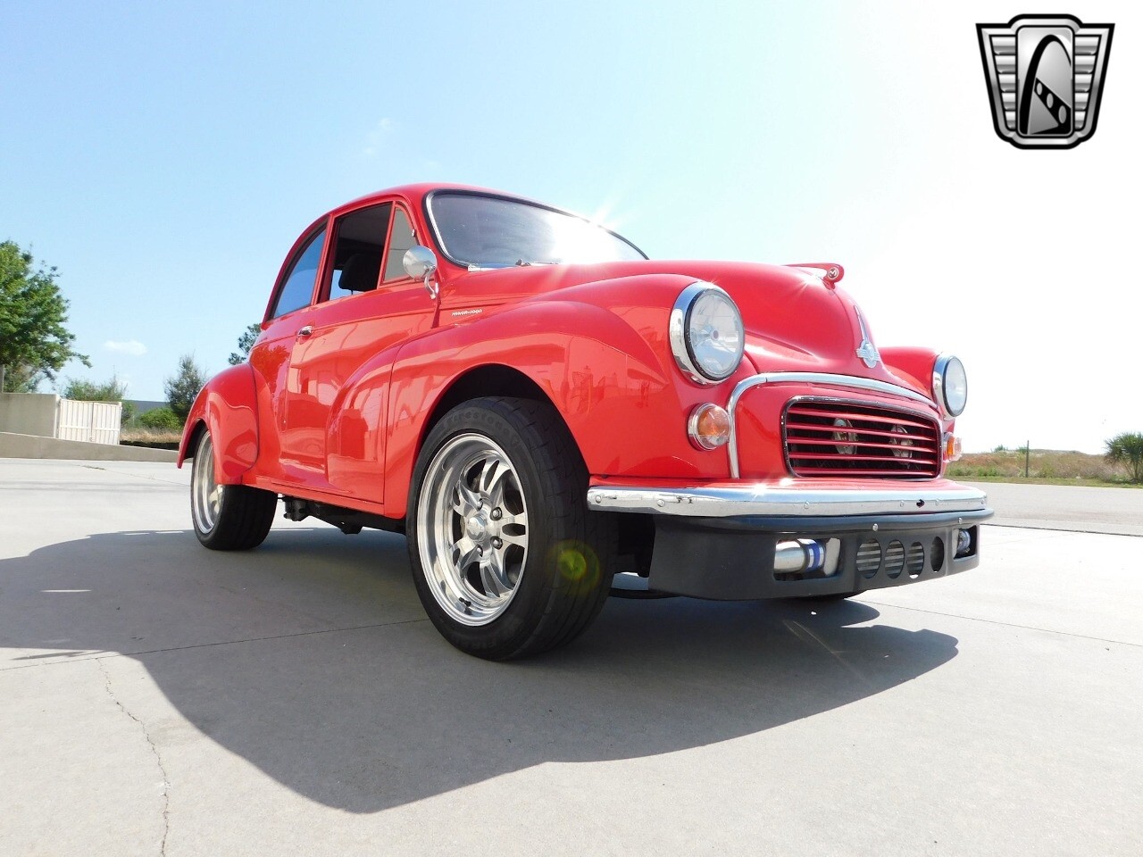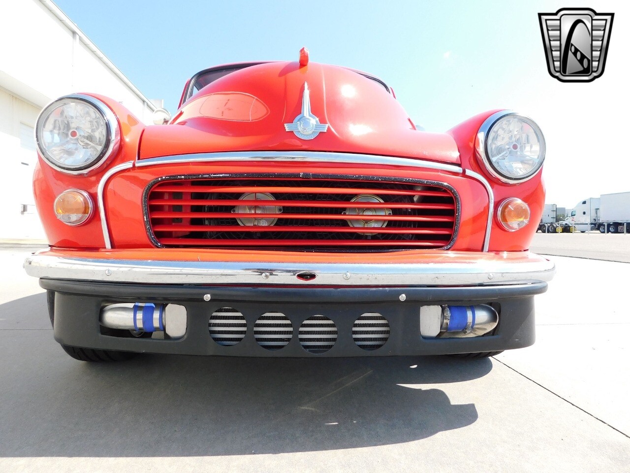 Gateway Classic Cars of Tampa is proud to present this Fast and Furious 1959 Morris Minor 1000! Anyone familiar with British automotive history knows the Morris was a staple of affordable motoring in the UK and it's former colonies. With over 1.5 million sold, the Minor was a sales success thanks to being compact practical and offering good value. No one would imagine a spend thrift's car as a hot rod, but that's what this Morris Minors' owner did. He saw the light compact body and rwd chassis and thought "I bet that'll make a for a fast ride". So he set off to make the Frankenstein monster of Frankenstein monsters! first the itty bitty 948cc 4 banger was tossed in the trash and a tuned, modern Mitsubishi 4G63, turbo engine from a 2008 EVO 8 was stuffed between the fenders. The 400hp hp is harnessed by 5 speed manual from a 3rd Gen RX7, that sends power to a 9" Ford axle with 3.73 gears! Under the body a 85 Datsun 750 mini-truck chassis serves provides the chassis while the suspension was fortified with a Mustang II front end and coil-overs shocks at all four corners. Disk brakes yank this thing to a stop front and rear. Staggered Chip Foose wheels wrapped in sticky rubber keep this Turbo powered go-kart sunny side up, and cold AC, racing seats, and power windows ensure you're safe and comfy during the ride. This 1959 Morris is a riot! You definitely won't see yourself coming or going with this ride. Make this red rocket yours today!.