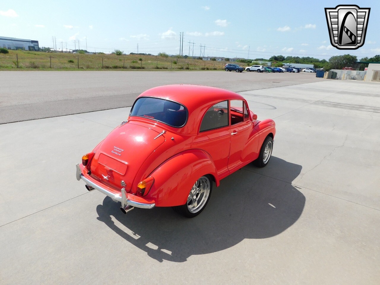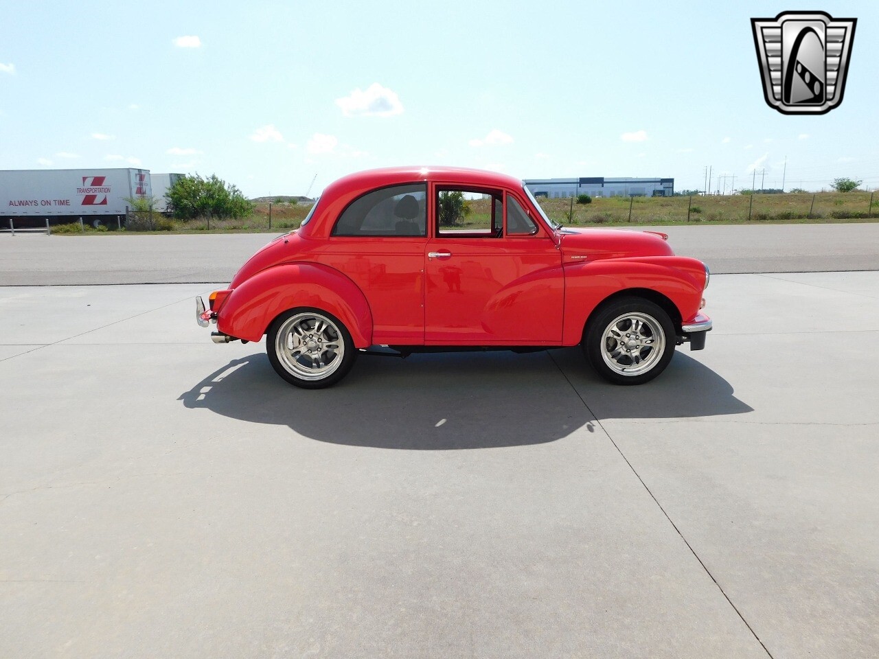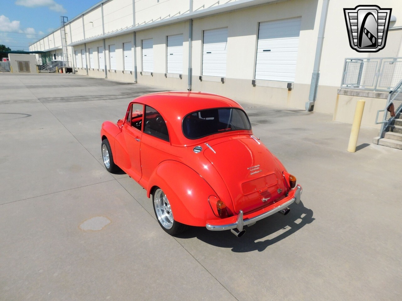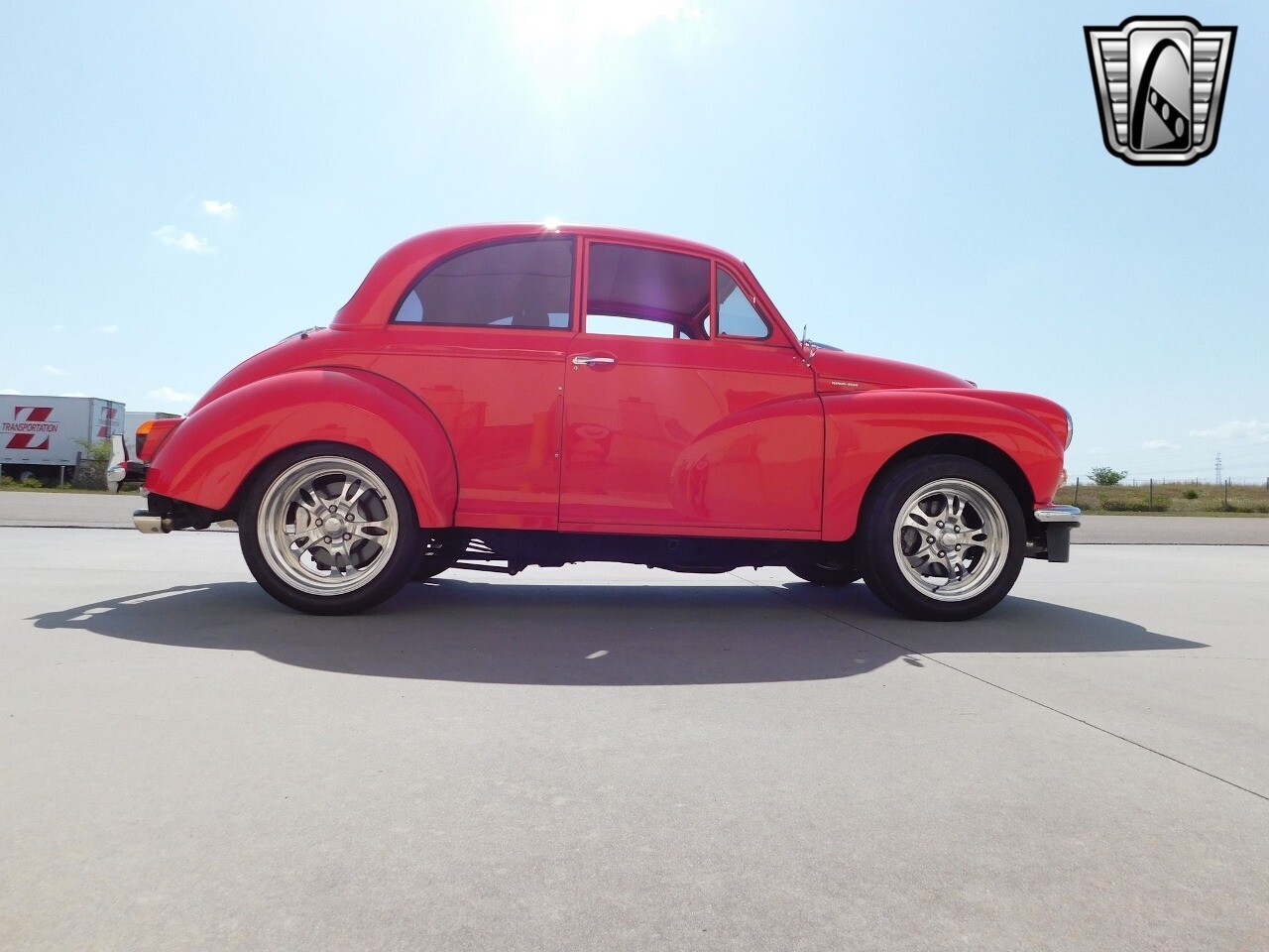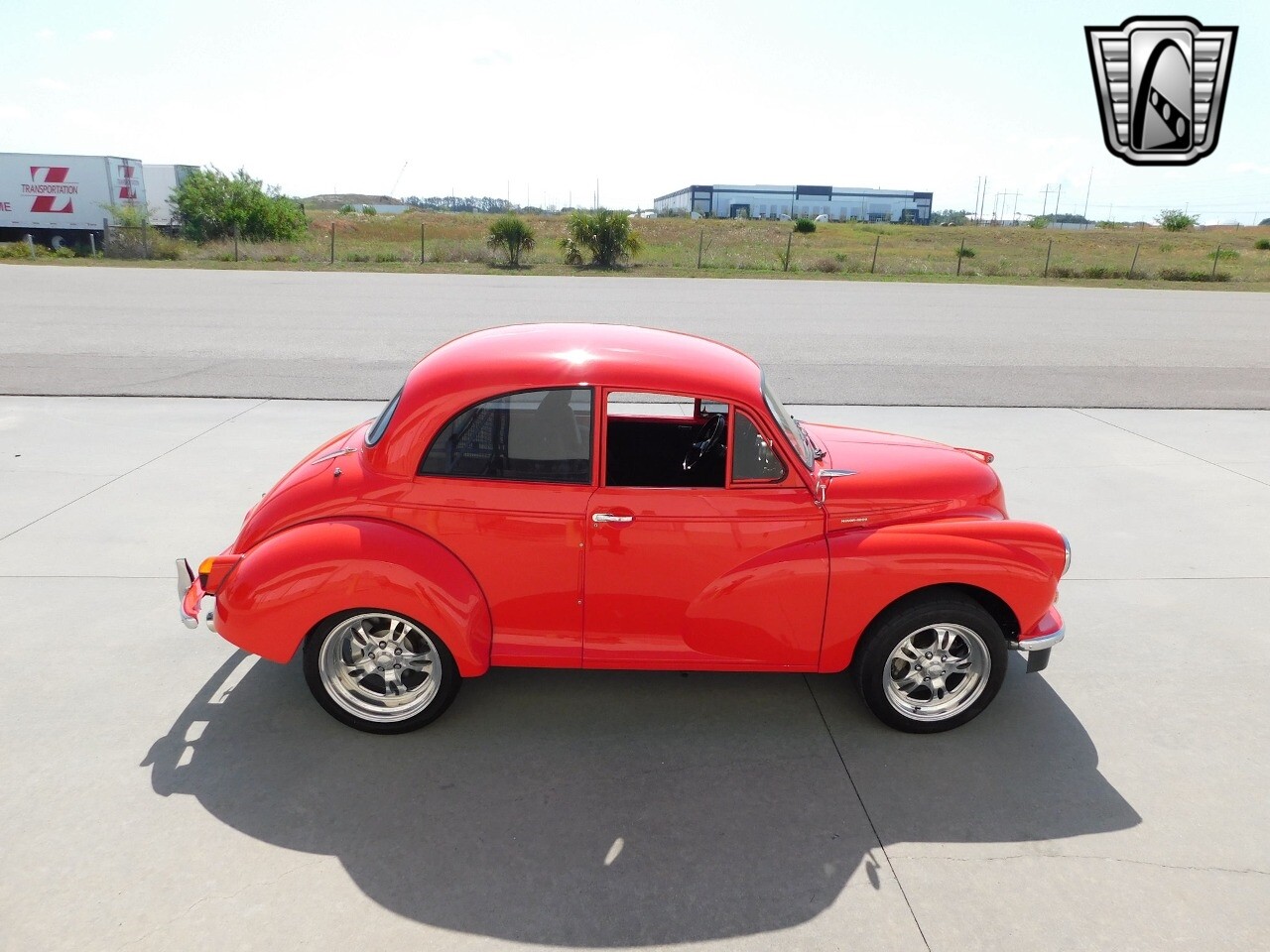 Gateway Classic Cars of Tampa is proud to present this Fast and Furious 1959 Morris Minor 1000! Anyone familiar with British automotive history knows the Morris was a staple of affordable motoring in the UK and it's former colonies. With over 1.5 million sold, the Minor was a sales success thanks to being compact practical and offering good value. No one would imagine a spend thrift's car as a hot rod, but that's what this Morris Minors' owner did. He saw the light compact body and rwd chassis and thought "I bet that'll make a for a fast ride". So he set off to make the Frankenstein monster of Frankenstein monsters! first the itty bitty 948cc 4 banger was tossed in the trash and a tuned, modern Mitsubishi 4G63, turbo engine from a 2008 EVO 8 was stuffed between the fenders. The 400hp hp is harnessed by 5 speed manual from a 3rd Gen RX7, that sends power to a 9" Ford axle with 3.73 gears! Under the body a 85 Datsun 750 mini-truck chassis serves provides the chassis while the suspension was fortified with a Mustang II front end and coil-overs shocks at all four corners. Disk brakes yank this thing to a stop front and rear. Staggered Chip Foose wheels wrapped in sticky rubber keep this Turbo powered go-kart sunny side up, and cold AC, racing seats, and power windows ensure you're safe and comfy during the ride. This 1959 Morris is a riot! You definitely won't see yourself coming or going with this ride. Make this red rocket yours today!.