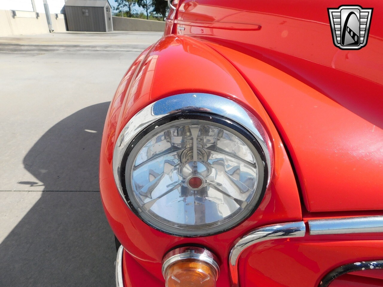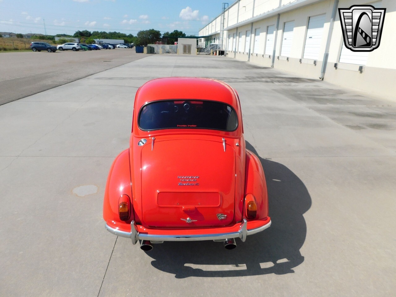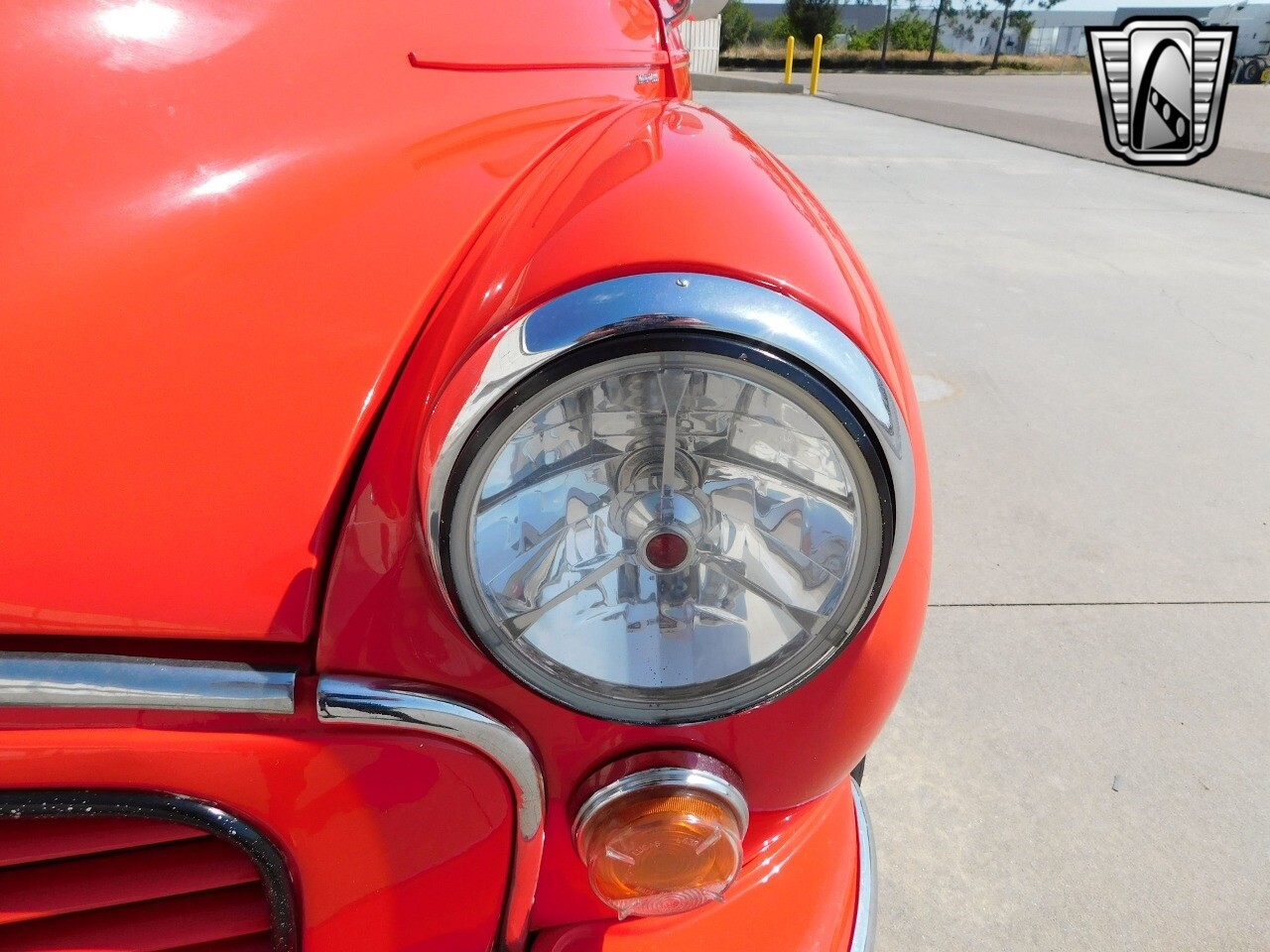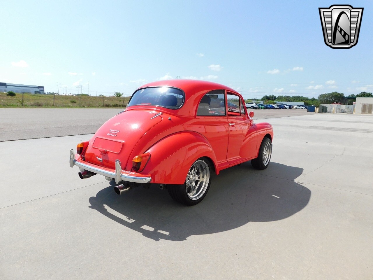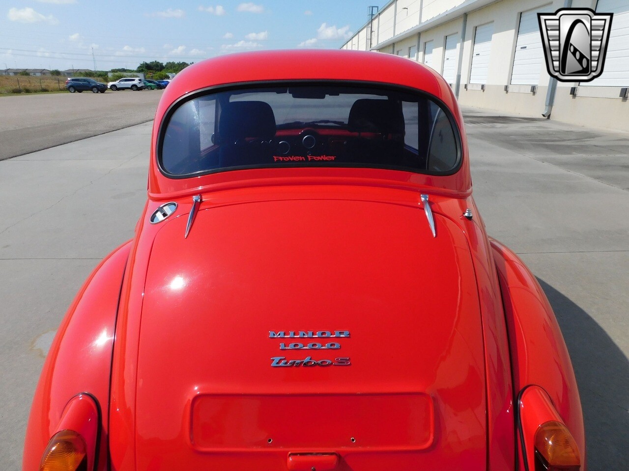 Gateway Classic Cars of Tampa is proud to present this Fast and Furious 1959 Morris Minor 1000! Anyone familiar with British automotive history knows the Morris was a staple of affordable motoring in the UK and it's former colonies. With over 1.5 million sold, the Minor was a sales success thanks to being compact practical and offering good value. No one would imagine a spend thrift's car as a hot rod, but that's what this Morris Minors' owner did. He saw the light compact body and rwd chassis and thought "I bet that'll make a for a fast ride". So he set off to make the Frankenstein monster of Frankenstein monsters! first the itty bitty 948cc 4 banger was tossed in the trash and a tuned, modern Mitsubishi 4G63, turbo engine from a 2008 EVO 8 was stuffed between the fenders. The 400hp hp is harnessed by 5 speed manual from a 3rd Gen RX7, that sends power to a 9" Ford axle with 3.73 gears! Under the body a 85 Datsun 750 mini-truck chassis serves provides the chassis while the suspension was fortified with a Mustang II front end and coil-overs shocks at all four corners. Disk brakes yank this thing to a stop front and rear. Staggered Chip Foose wheels wrapped in sticky rubber keep this Turbo powered go-kart sunny side up, and cold AC, racing seats, and power windows ensure you're safe and comfy during the ride. This 1959 Morris is a riot! You definitely won't see yourself coming or going with this ride. Make this red rocket yours today!.