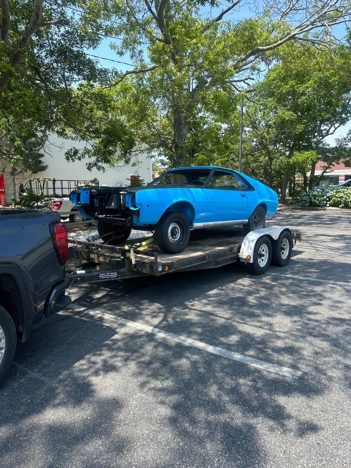 Up for sale is a unique and classic AMC AMX Big Blue project car, perfect for restoration enthusiasts. This vehicle is a fantastic base for a custom build or restoration project. Below are the details and included items: