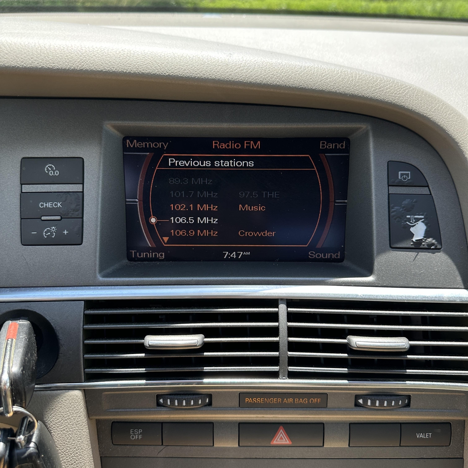 • Multi-Media Interface (MMI)-inc: TFT color, 7" high-resolution display screen, control knob & buttons in center console, operates climate control, central locking, instrumentation, vehicle diagnostics, cell phone, CD & radio functions, clock