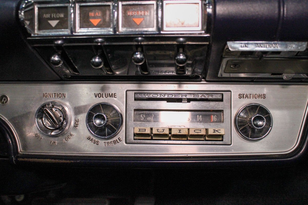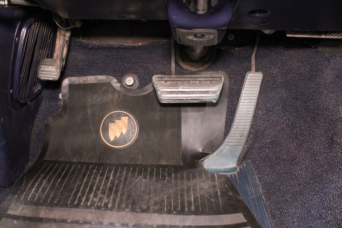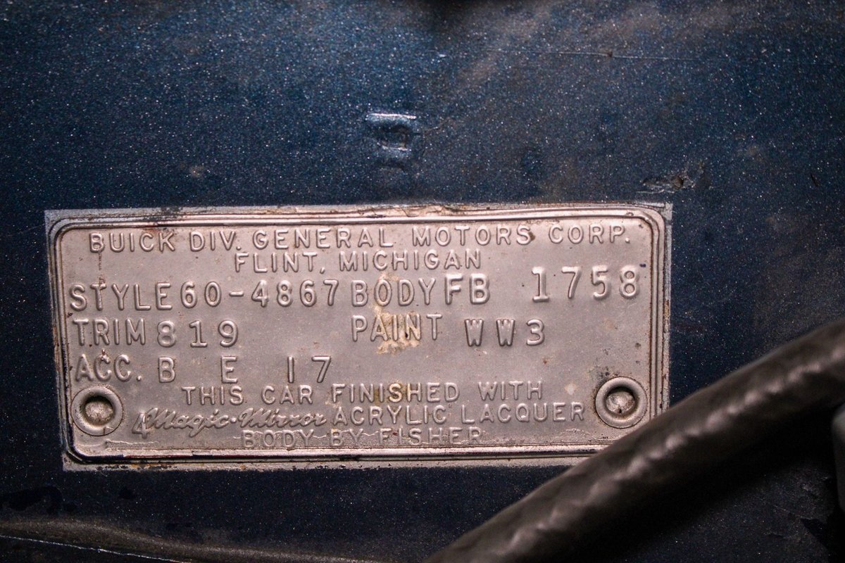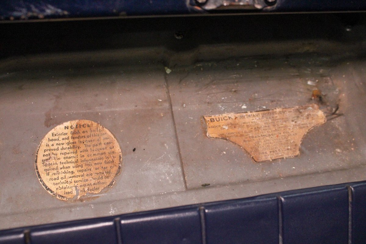 The factory trim tag has been decoded by the previous owner as follows: B=Heater/Defroster, E= Rear Seat Spkr, I7= Easy-Eye Windshield, BASIC GROUP 1, B=Heater/Defroster, I-6= Easy Eye Glass, S= Chrome Door Guards, TI= W/W Tires, A= Twin Turbine Trans, C= PWR Steering, F= Safety Group; Backup Lights; Glare proof mirror; Parking Brake Signal; Safety Buzzer; Maplight, G=Dual Speed Wipers W/Washer, H=Deluxe Steering Wheel, K6= Cushions, L=Power Brakes, M2= Super deluxe wheel covers, O=Ace Group; Electric clock; license plate frame; trunk light. This Buick is accompanied by various service receipts, fuel receipts, and other desirable literature that has all been saved under current ownership and is available for inspection.