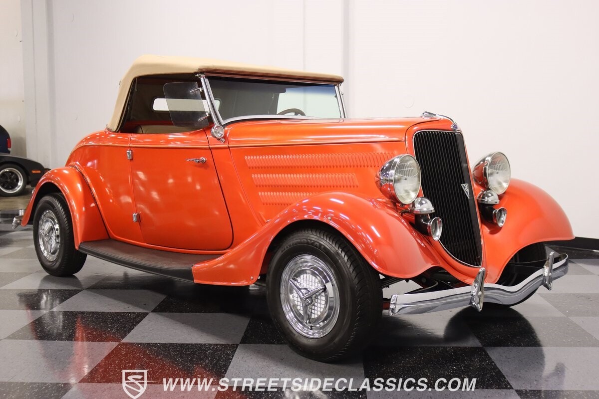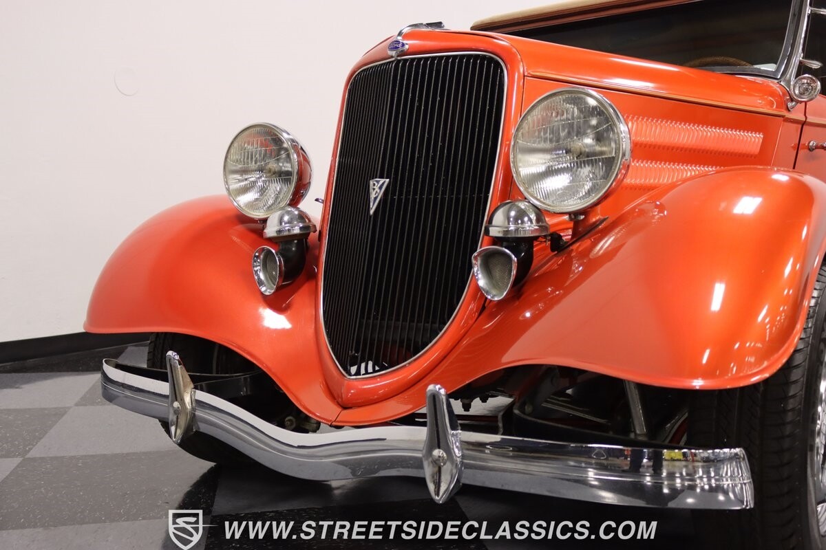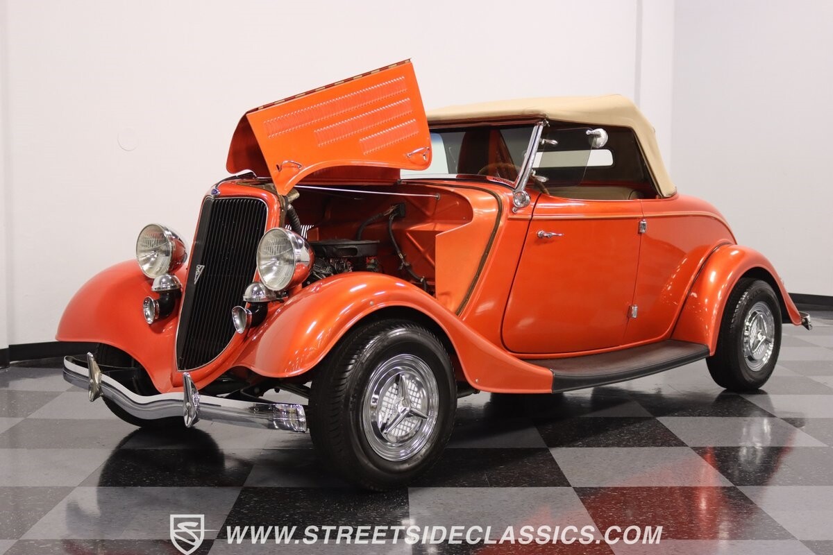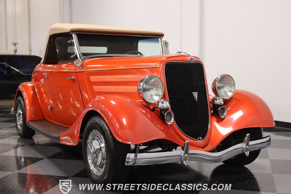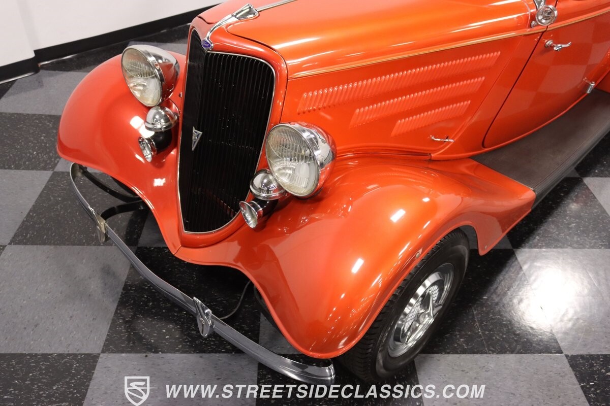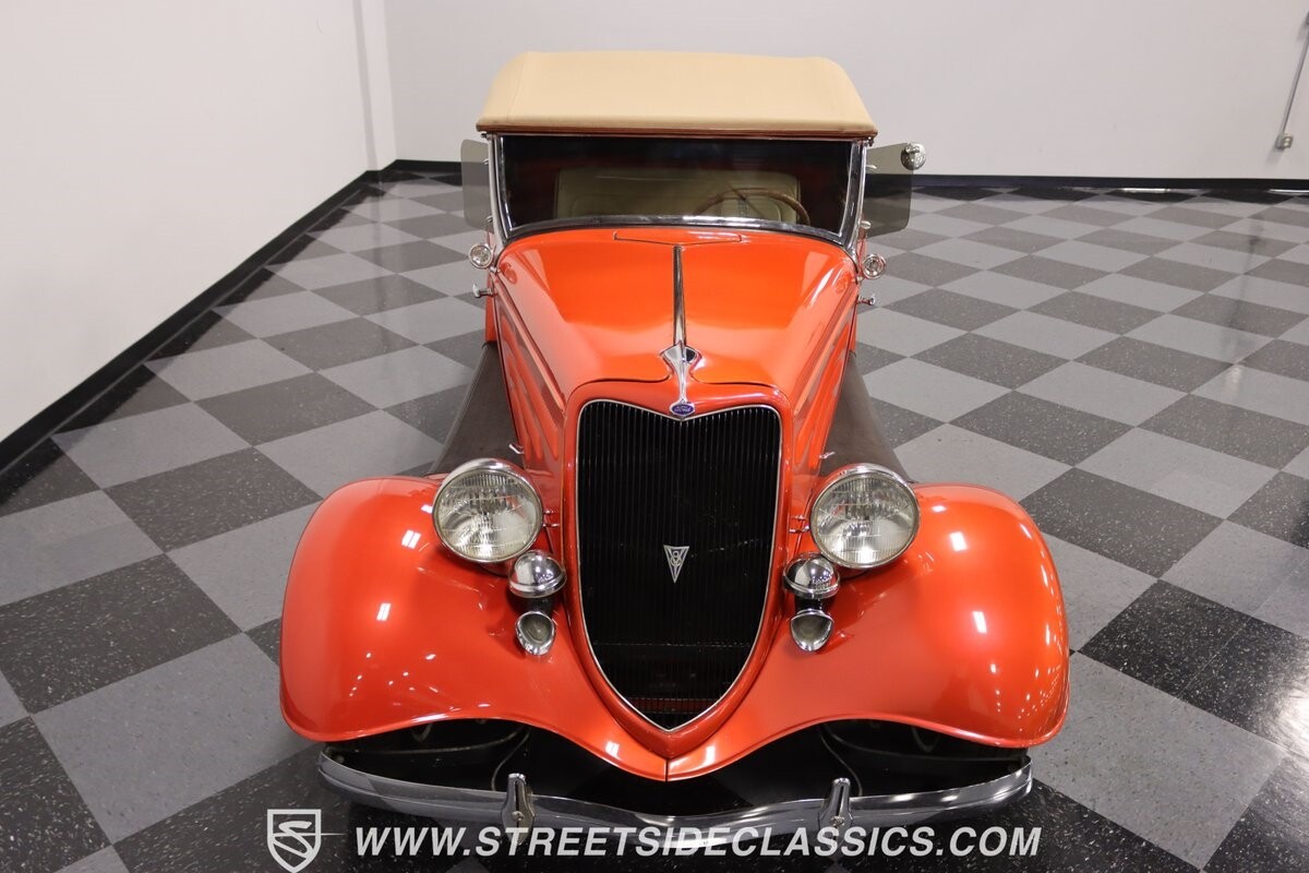 The 1934 Ford Cabriolet Rumble Seat, a vision in Sunburst Orange, promises an experience that's as visually stunning as it is delightful to drive. From its engine, echoing the reliability of a bygone era, to its meticulously designed interior and the unique harmony of its exterior colors and features, this car is a celebration of automotive history. Call today!