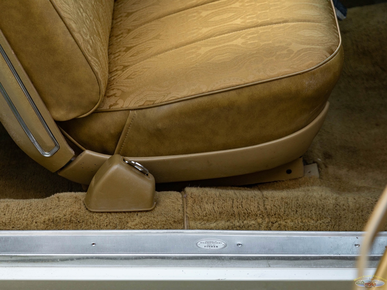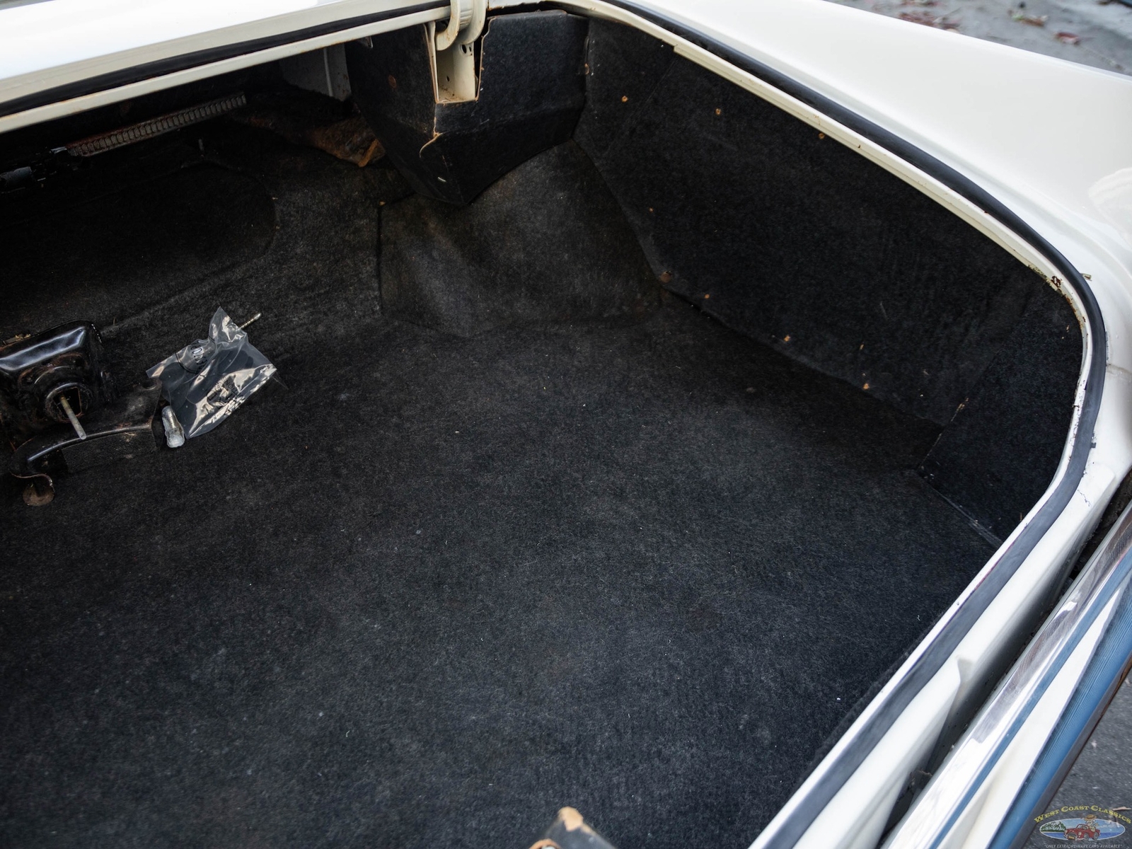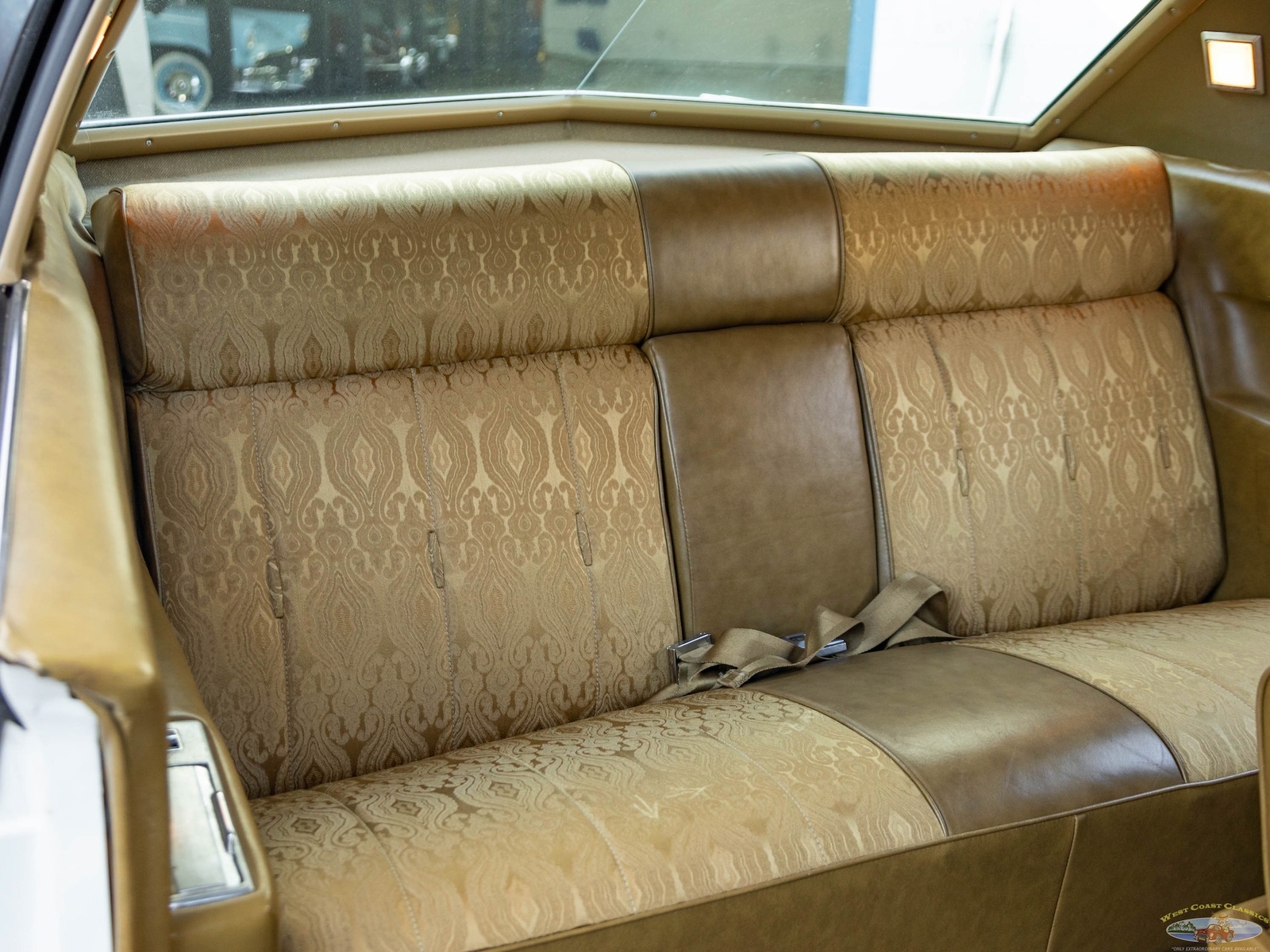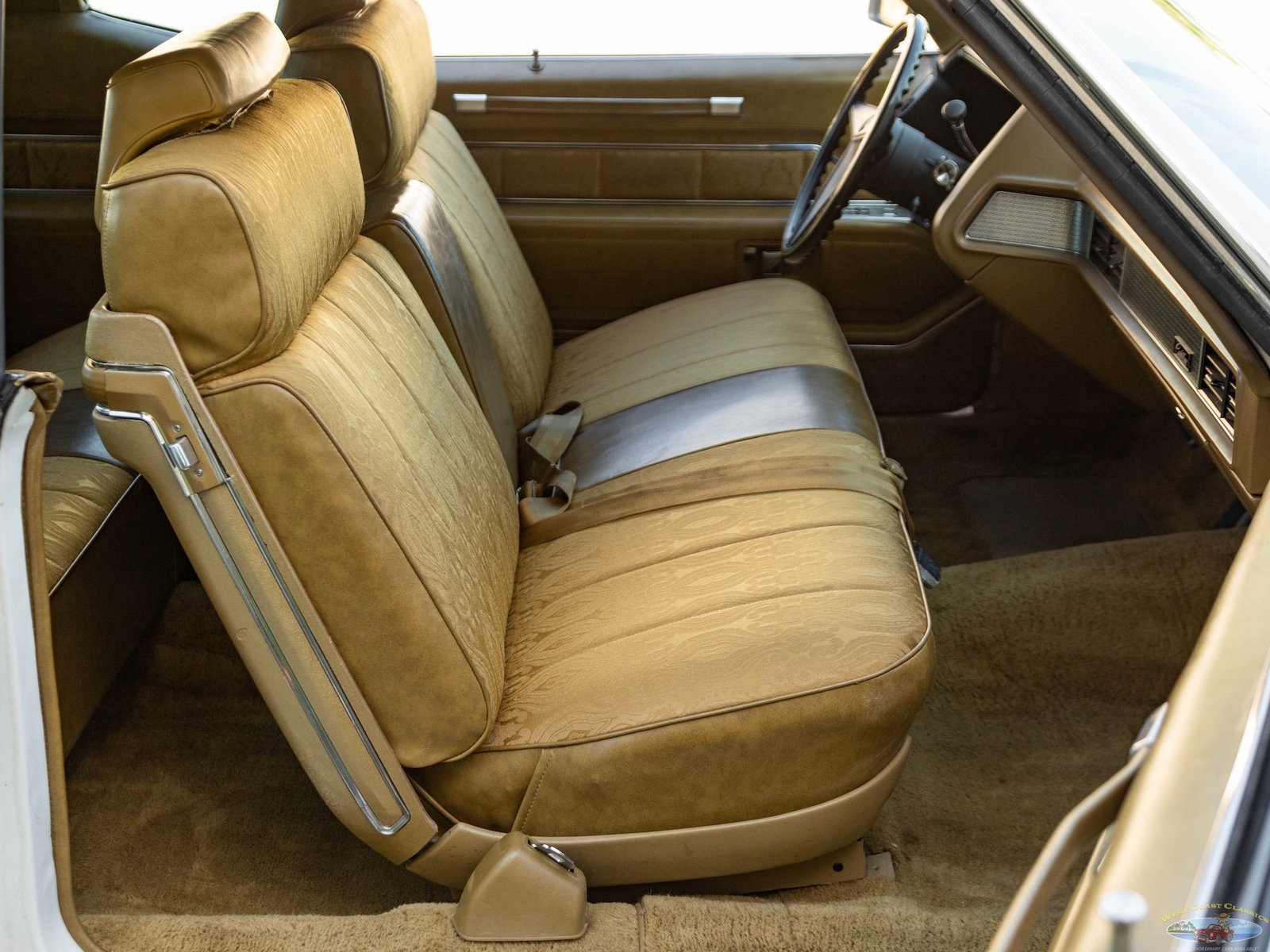 The car has a correct two stage repaint in tis original 'Cotillion White' color and the original vinyl roof was replaced with a White correct grain vinyl roof in place of the original Gold vinyl roof. The original fabric was reupholstered in the correct SMS reproduction fabric, both front and rear seats, along with the seat foam with correct dense foam. The door panels, rear quarter panels, back of the front seats and headliner are all original. The dash is also original and in virtually perfect condition.