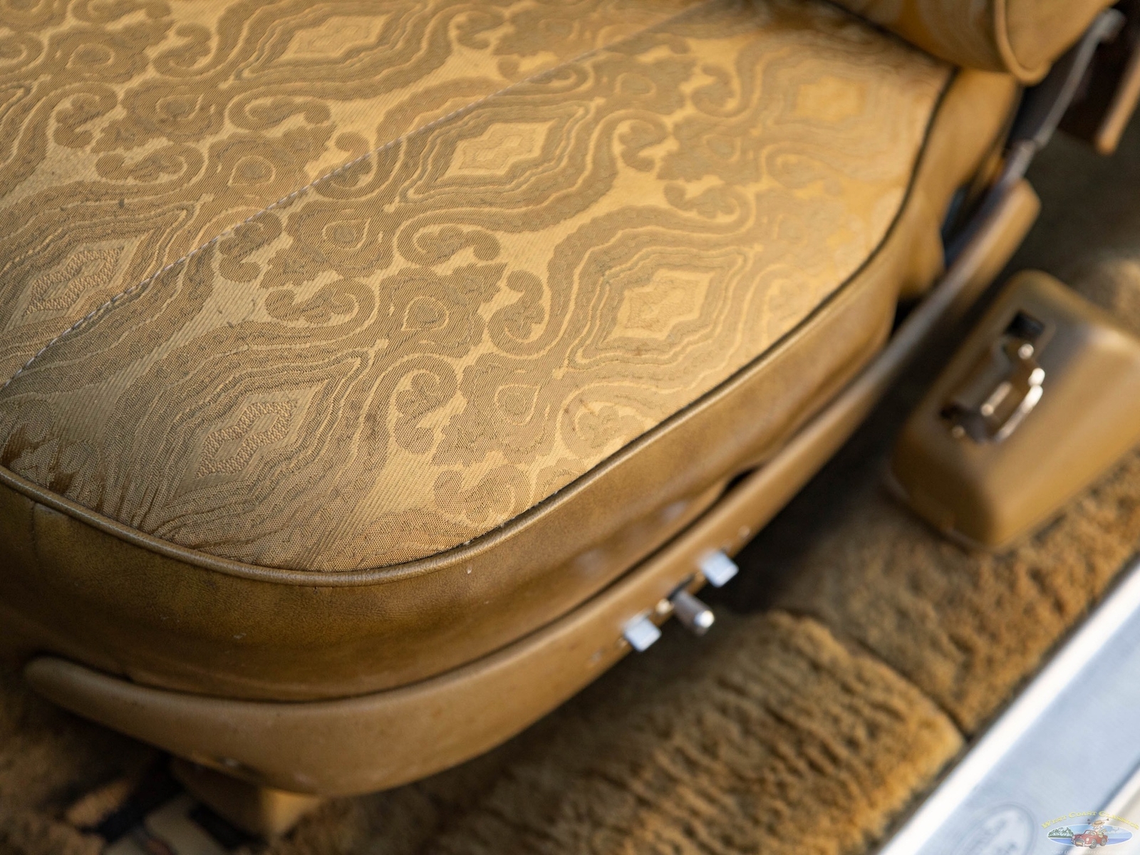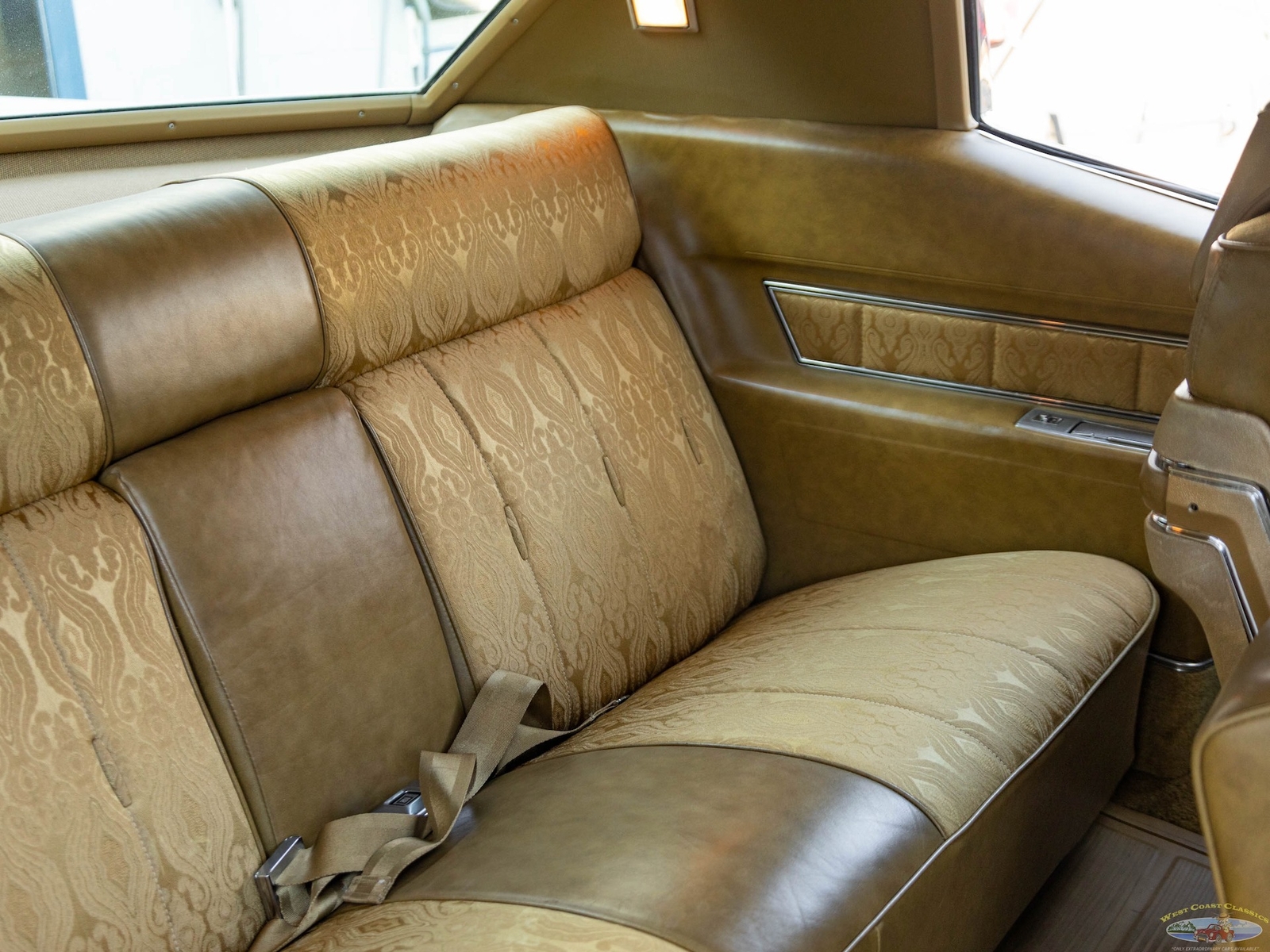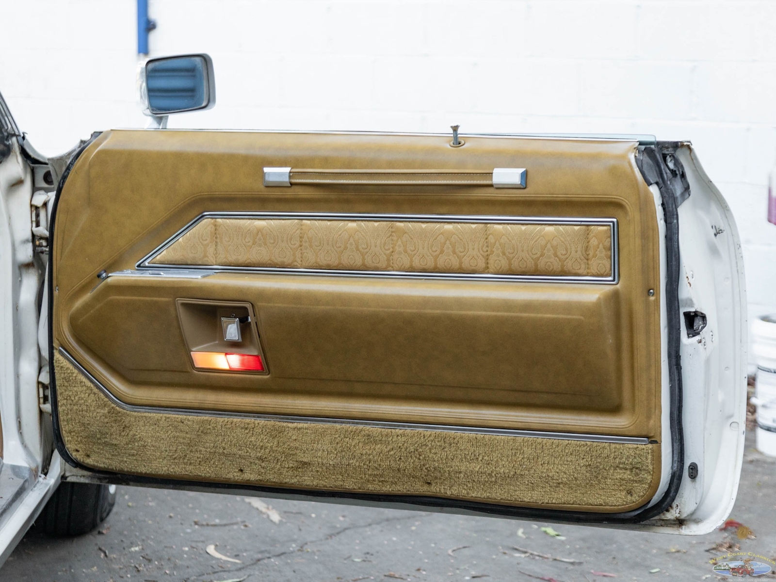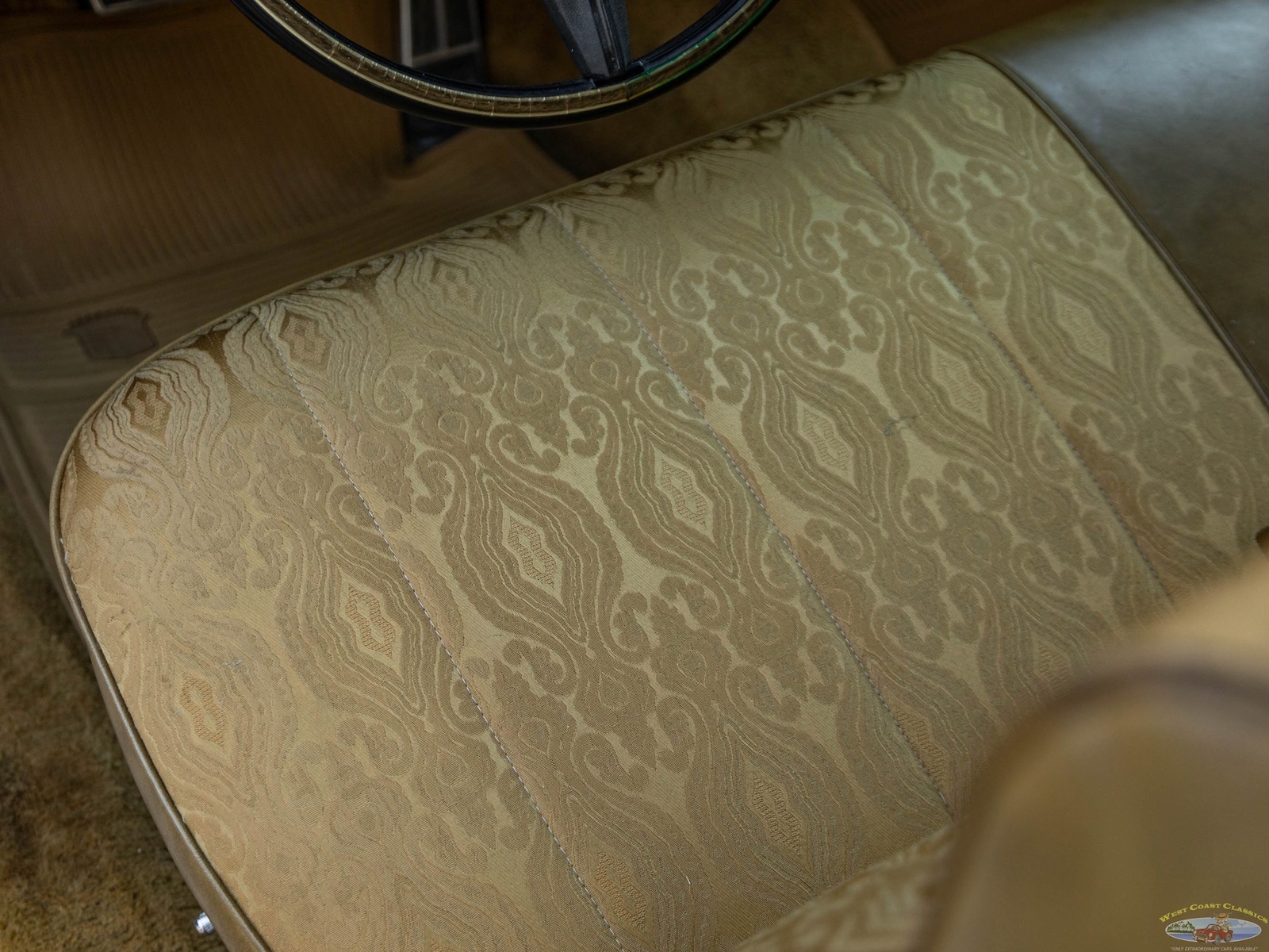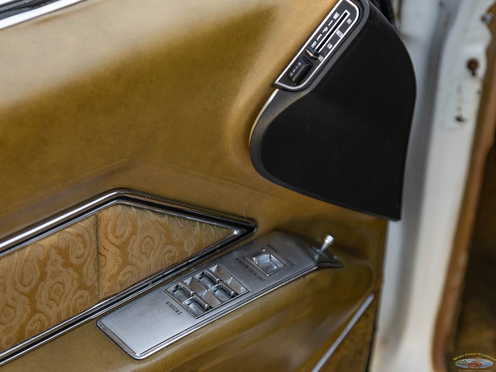 The car has a correct two stage repaint in tis original 'Cotillion White' color and the original vinyl roof was replaced with a White correct grain vinyl roof in place of the original Gold vinyl roof. The original fabric was reupholstered in the correct SMS reproduction fabric, both front and rear seats, along with the seat foam with correct dense foam. The door panels, rear quarter panels, back of the front seats and headliner are all original. The dash is also original and in virtually perfect condition.