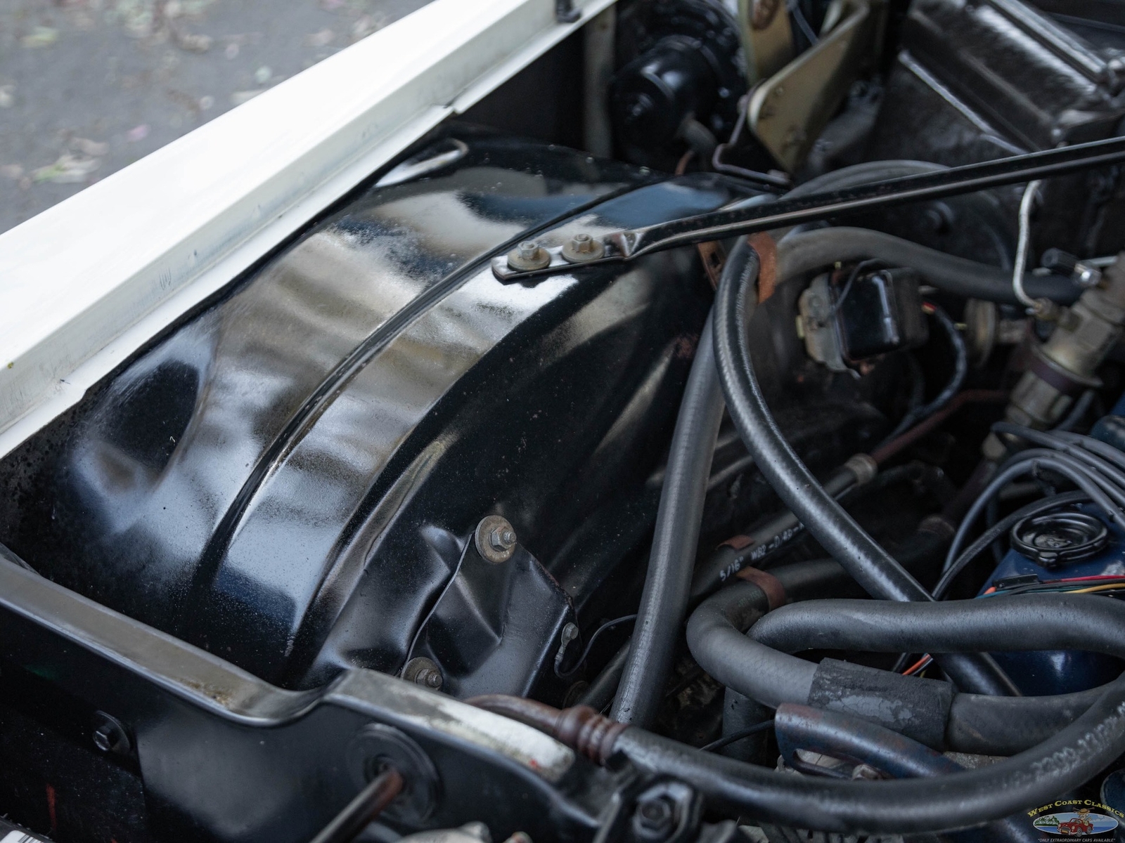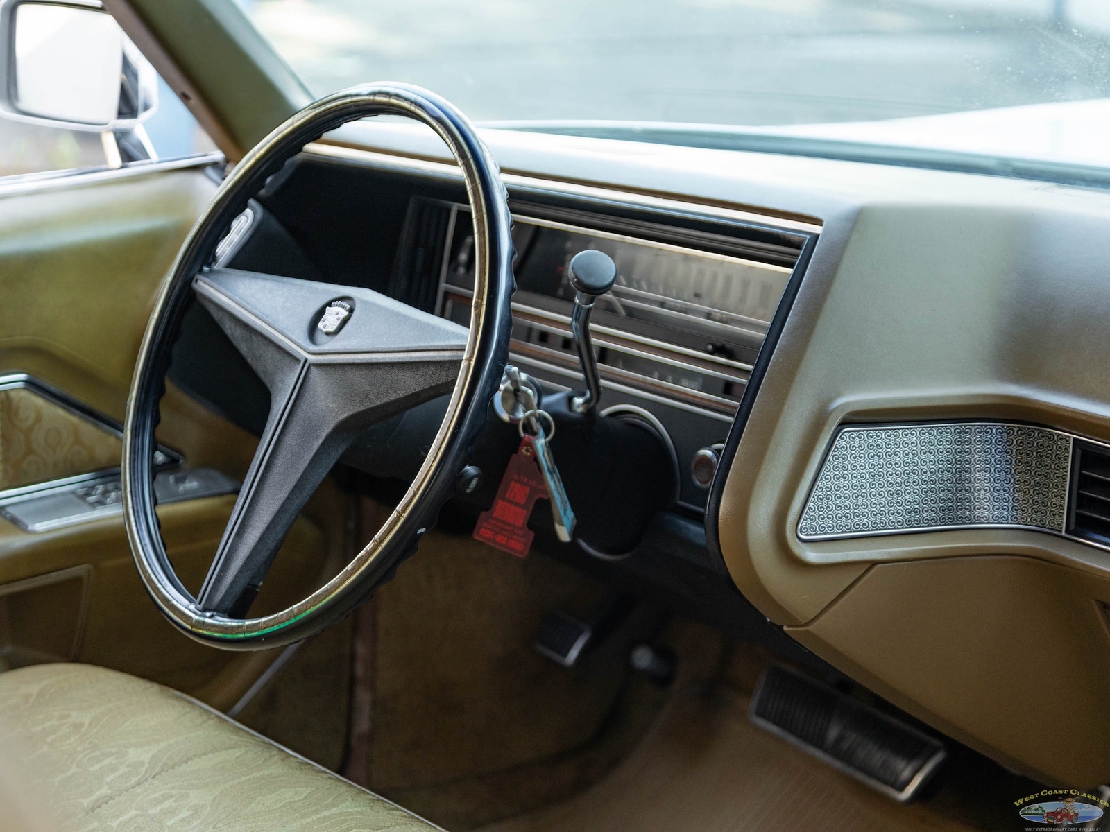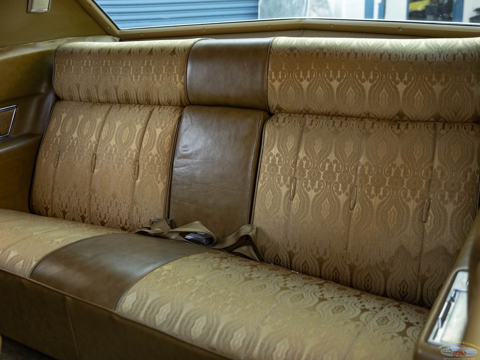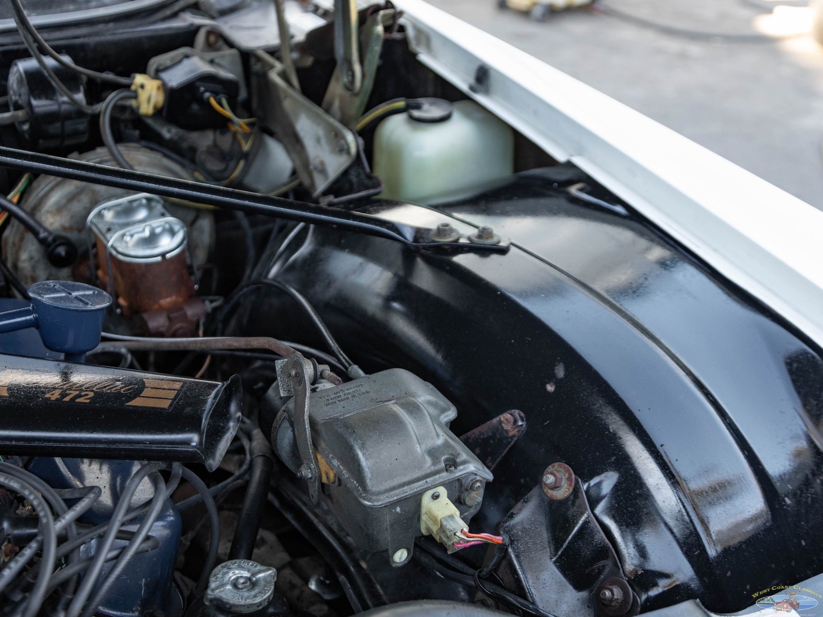The car has a correct two stage repaint in tis original 'Cotillion White' color and the original vinyl roof was replaced with a White correct grain vinyl roof in place of the original Gold vinyl roof. The original fabric was reupholstered in the correct SMS reproduction fabric, both front and rear seats, along with the seat foam with correct dense foam. The door panels, rear quarter panels, back of the front seats and headliner are all original. The dash is also original and in virtually perfect condition.