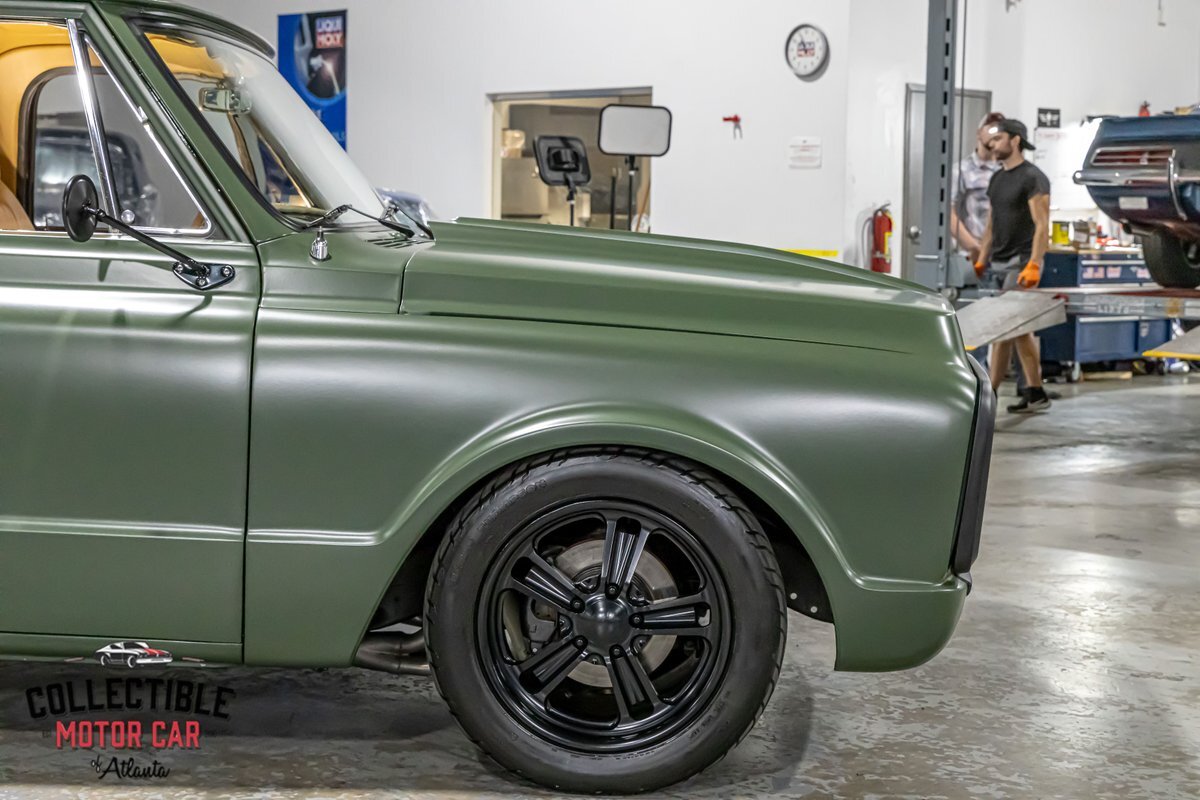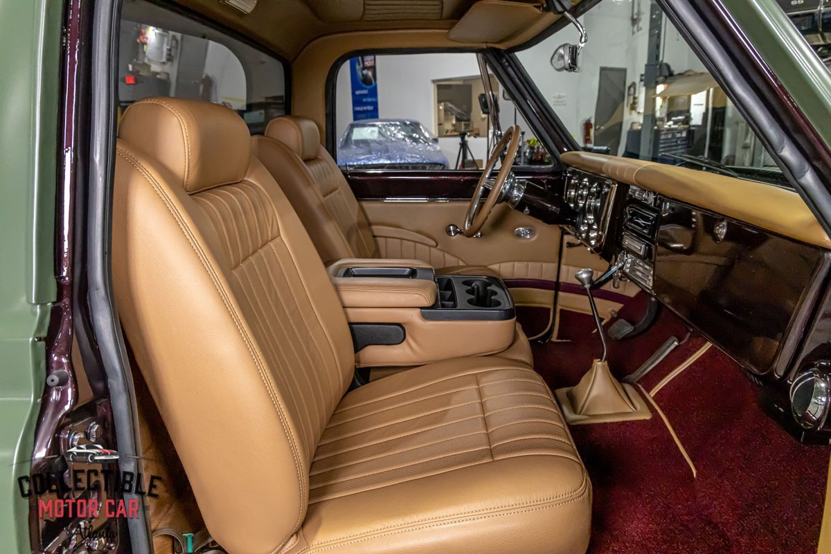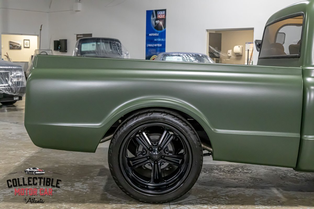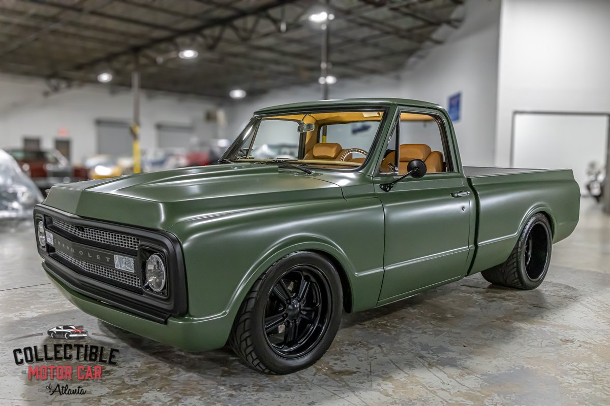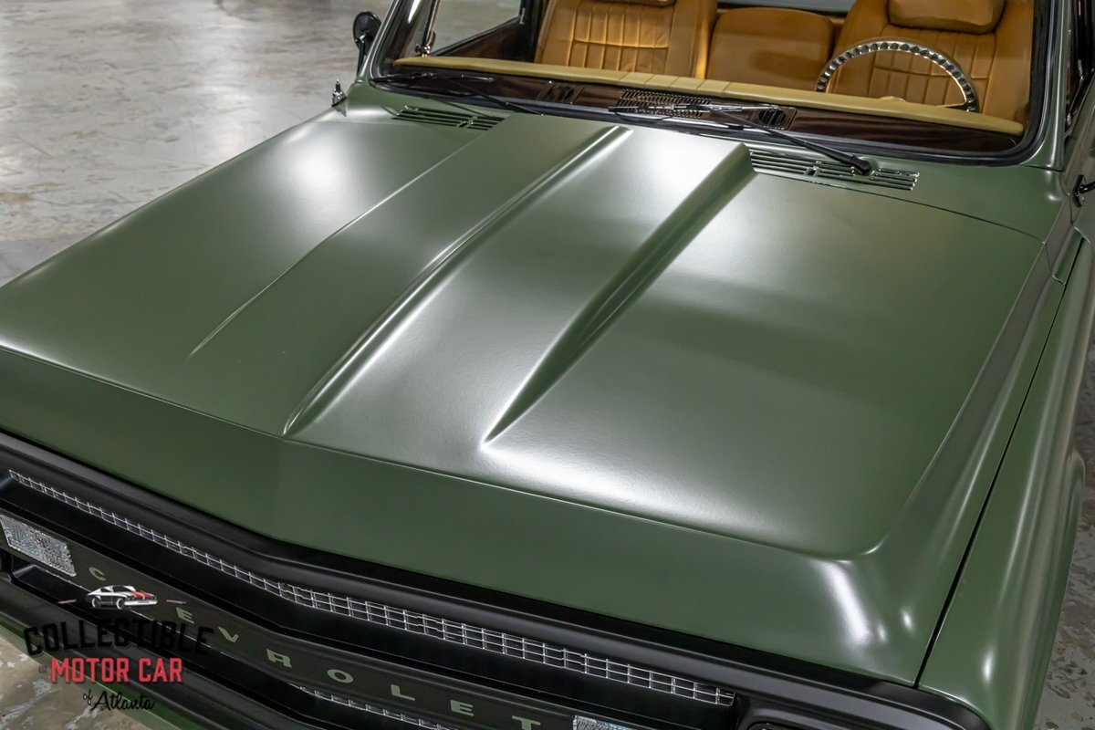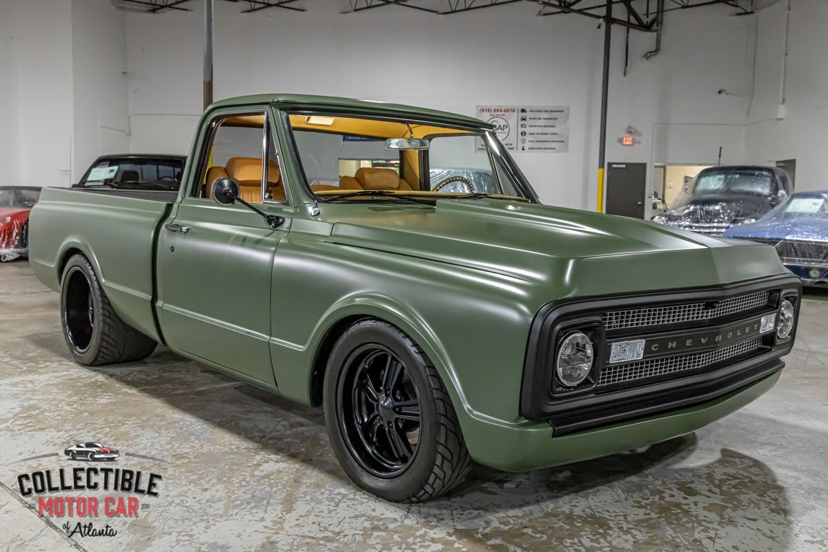 This 1970 Chevrolet C10 restomod is a serious build that not only looks stunning but also rides and drives superbly. If the striking flat green wrap isn't to your liking, rest assured that the House of Colors "black cherry" paint underneath is in excellent condition. This truck is the perfect blend of vintage charm and modern performance, ready to turn heads wherever it goes.