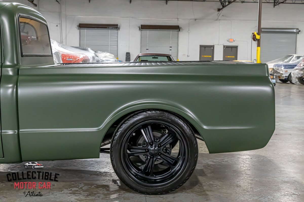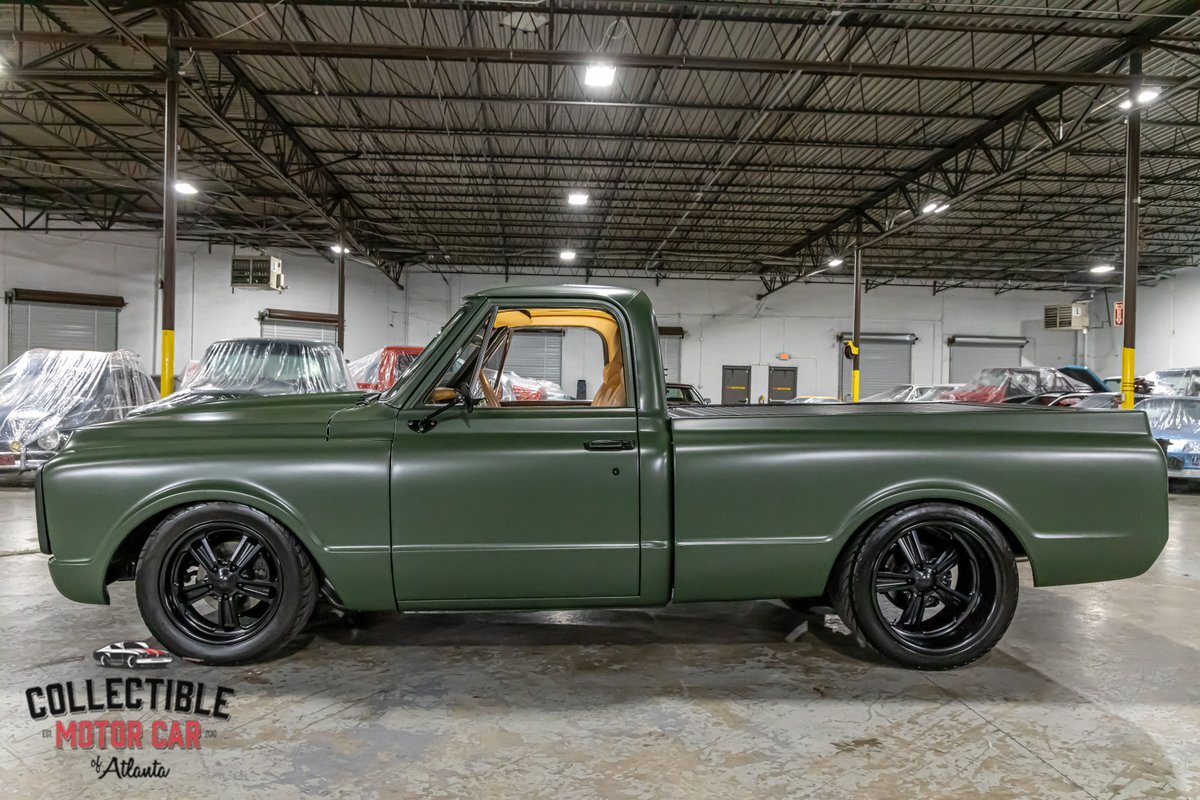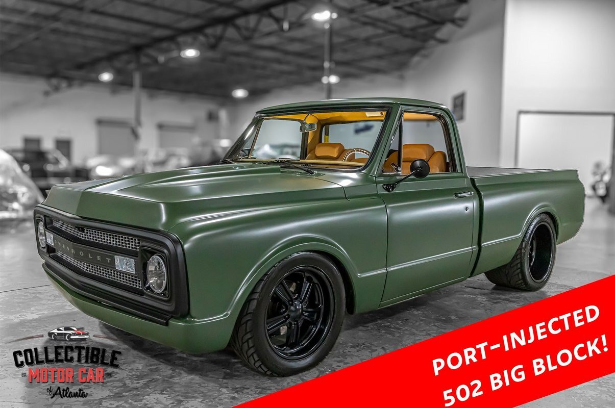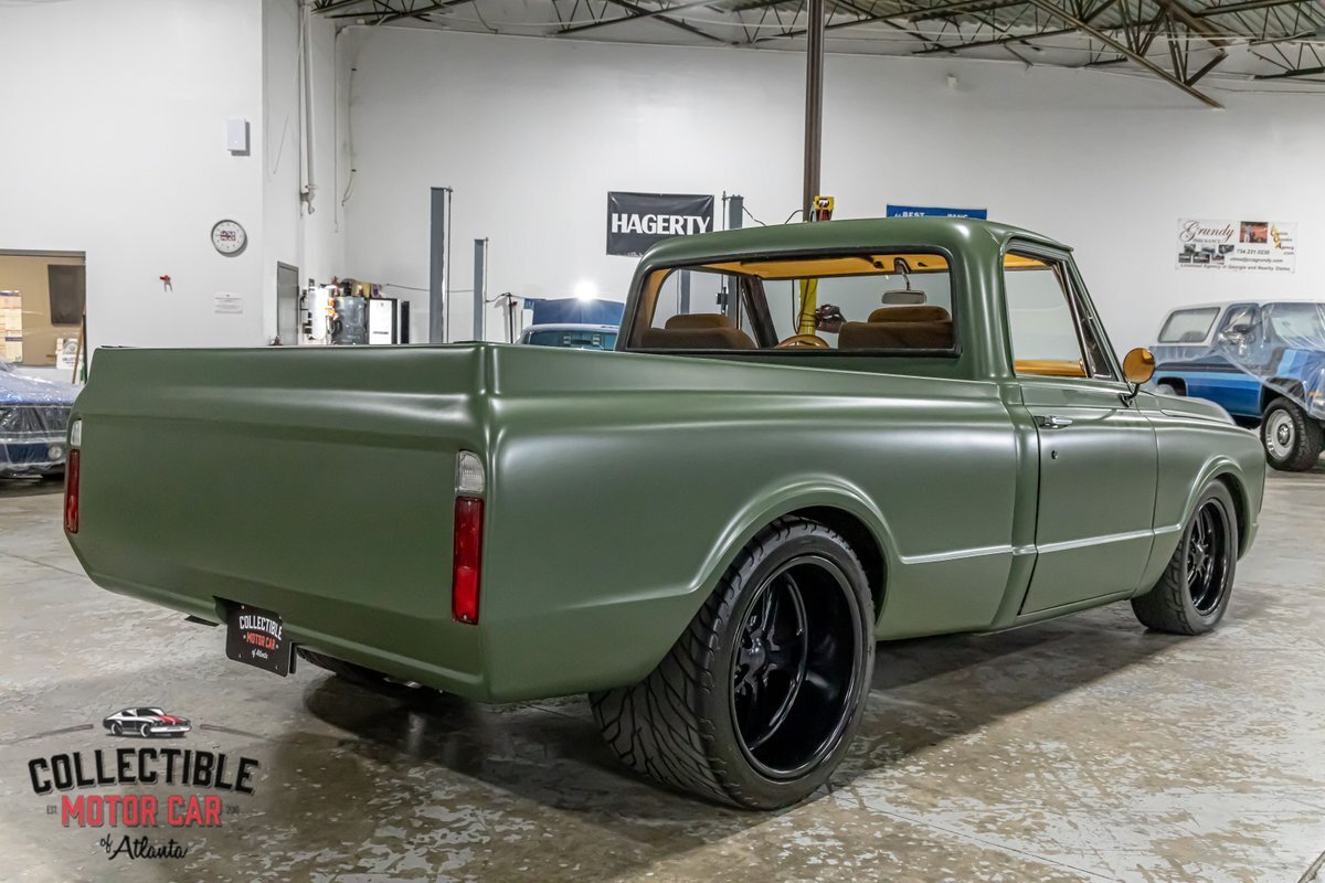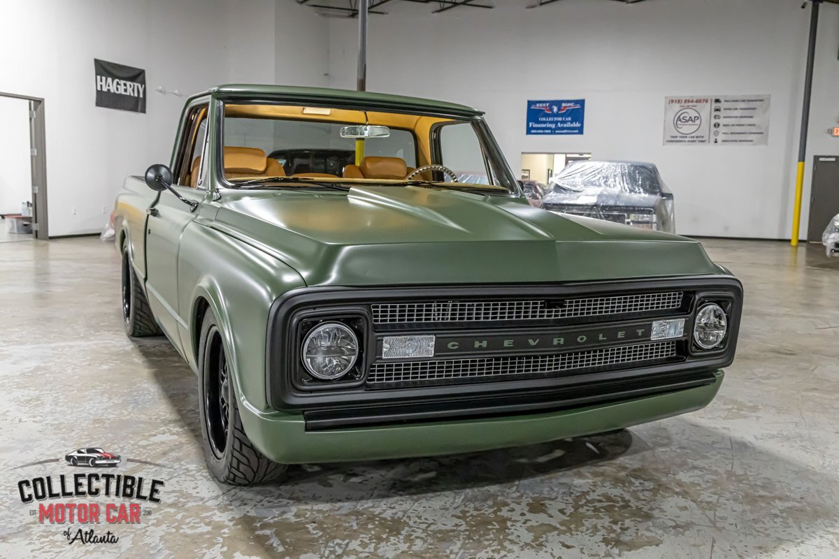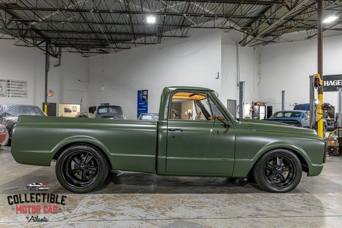 This 1970 Chevrolet C10 restomod is a serious build that not only looks stunning but also rides and drives superbly. If the striking flat green wrap isn't to your liking, rest assured that the House of Colors "black cherry" paint underneath is in excellent condition. This truck is the perfect blend of vintage charm and modern performance, ready to turn heads wherever it goes.